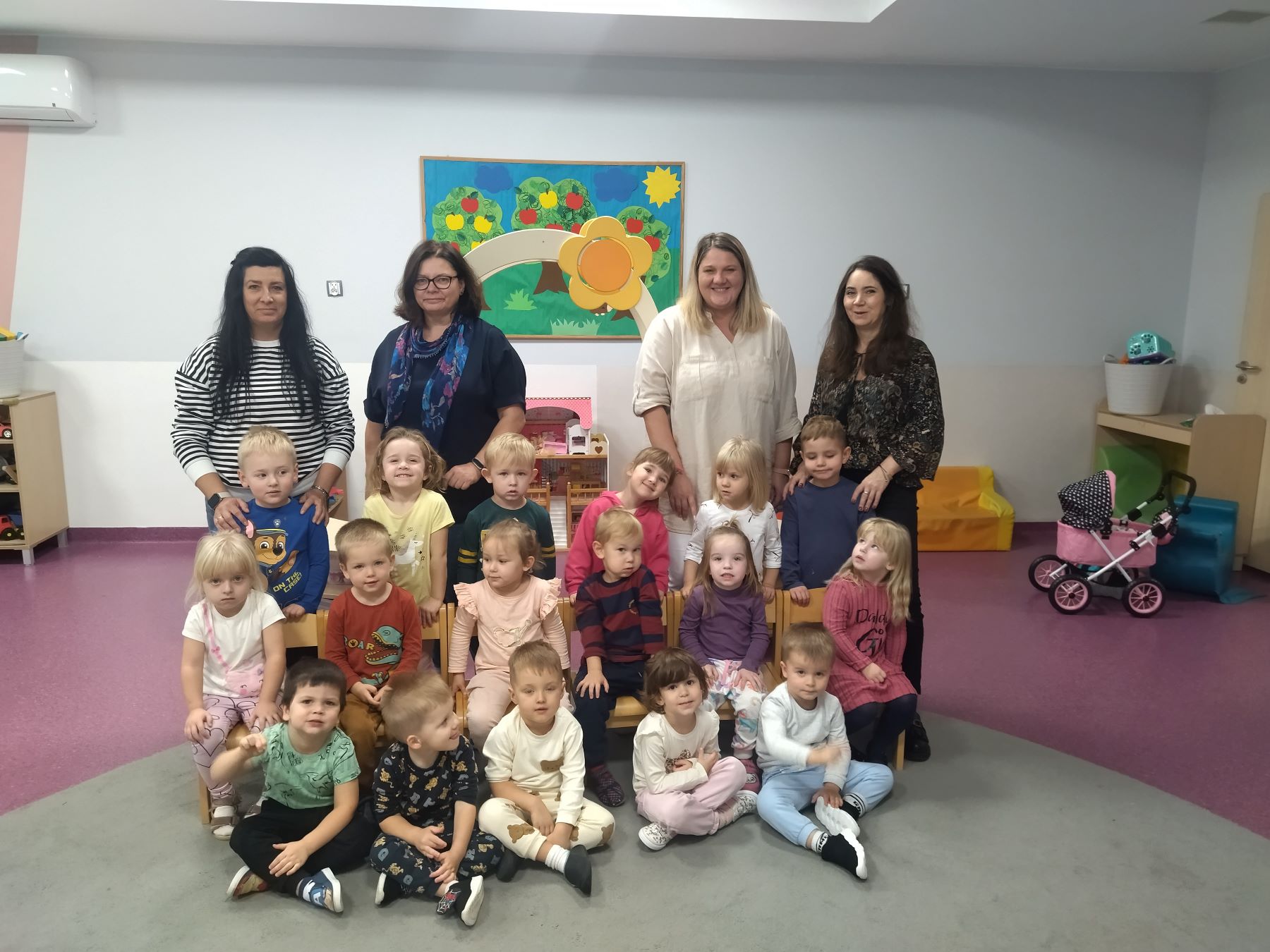 Myszki spędziły swój pierwszy Dzień Drzewa na zabawach w sali - były wiewiórkami szukającymi dziupli, tworzyły liście ze swoich dłoni, układały wzory z szyszek, kasztanów i orzechów, oglądały wystawę pięknych prac plastycznych i dobrze się przy tym bawiły.