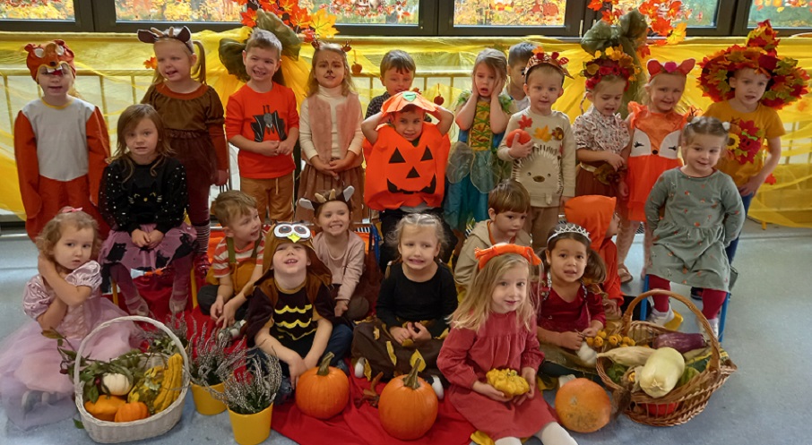 W poniedziałek Sarenki wspólnie z dziećmi z grupy Wilczki bawiły się na balu jesieni. Dzieci w jesiennych strojach wyglądały kolorowo i bajecznie. Wspólna zabawa zintegrowała dzieci, rozwijała ich umiejętności muzyczne, taneczne. Dzieci chętnie współpracowały w zabawie i w sytuacjach zadaniowych.
