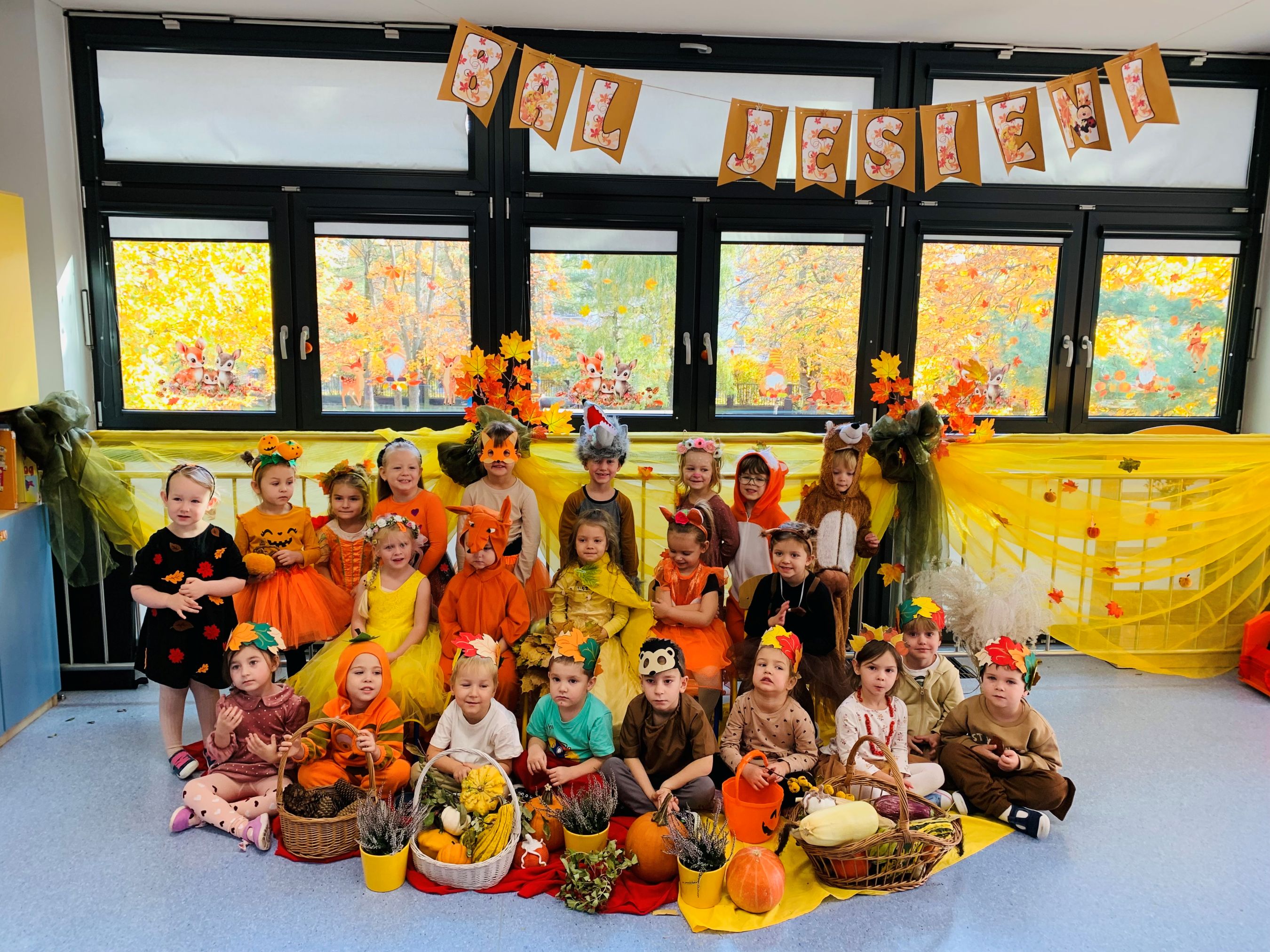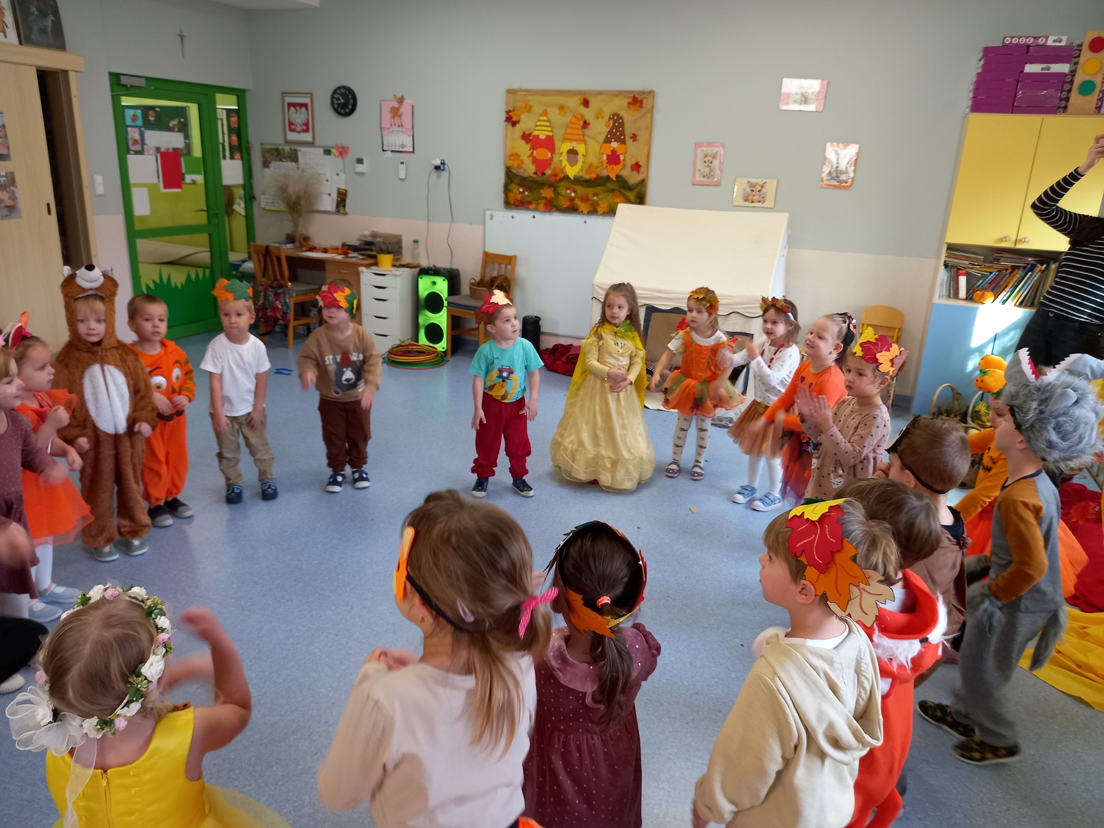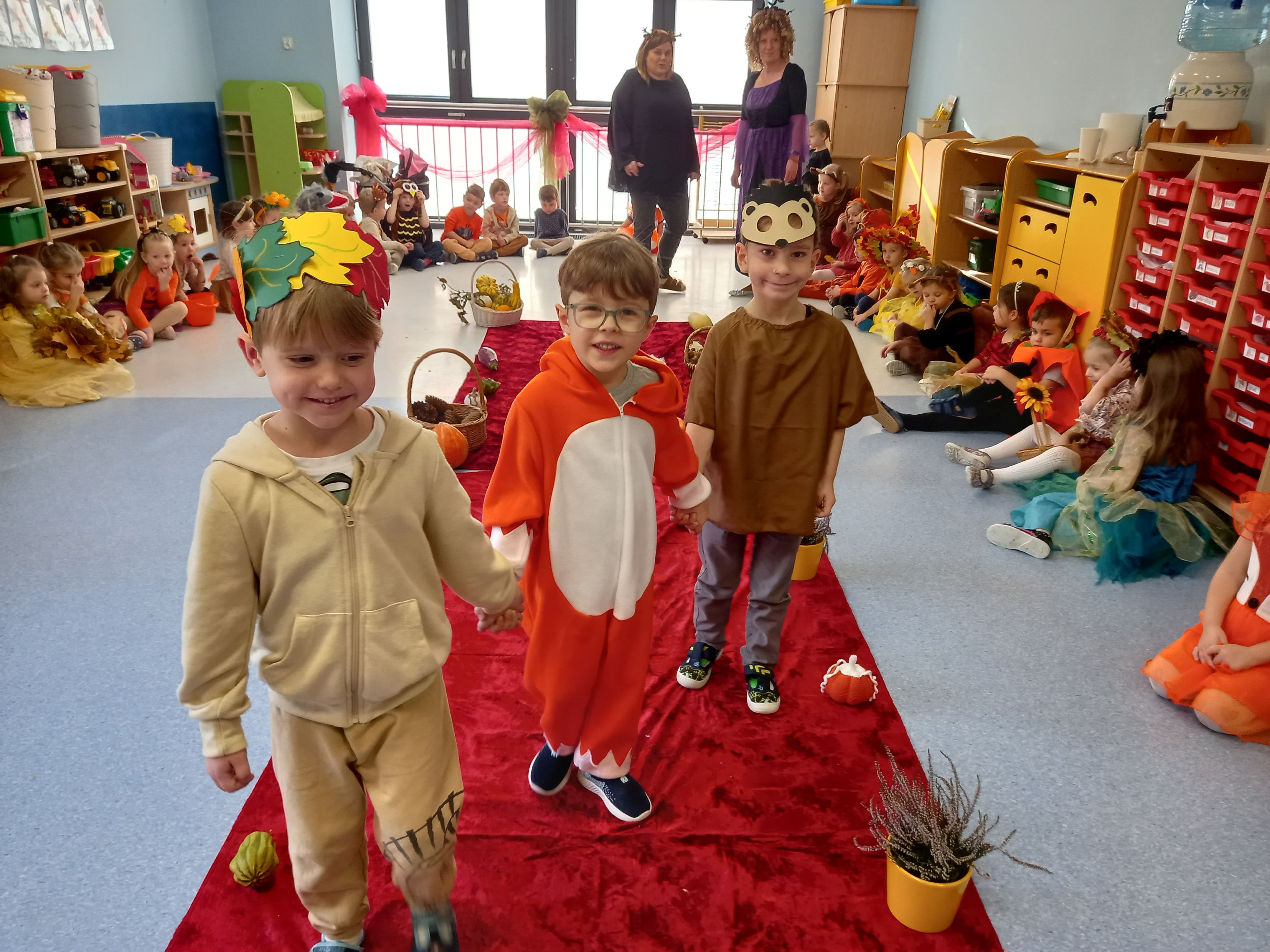 27 października Wilczki wspólnie z Sarenkami bawiły się na balu jesieni. Była to okazja do zintegrowania się grup oraz czerpania radości ze wspólnej zabawy. Przedszkolaki tego dnia ubrane były w niezwykłe stroje w kolorach jesieni. Były to chwile pełne uśmiechu, radości i zabaw. Wszyscy bawili się doskonale.