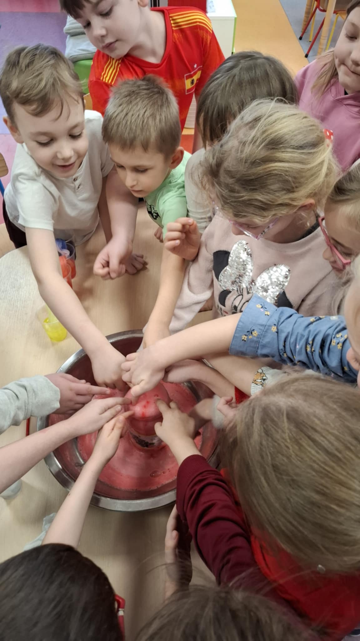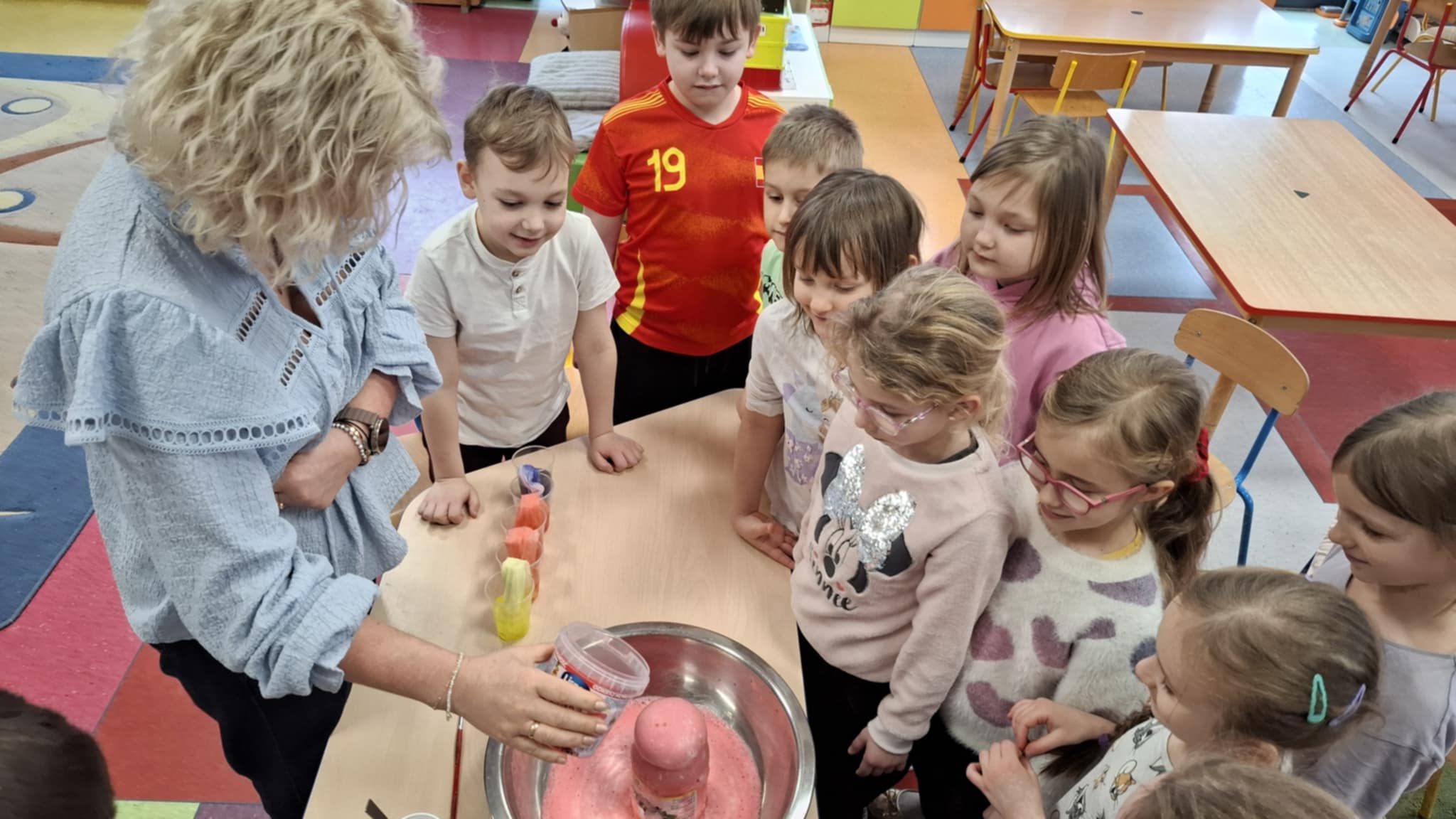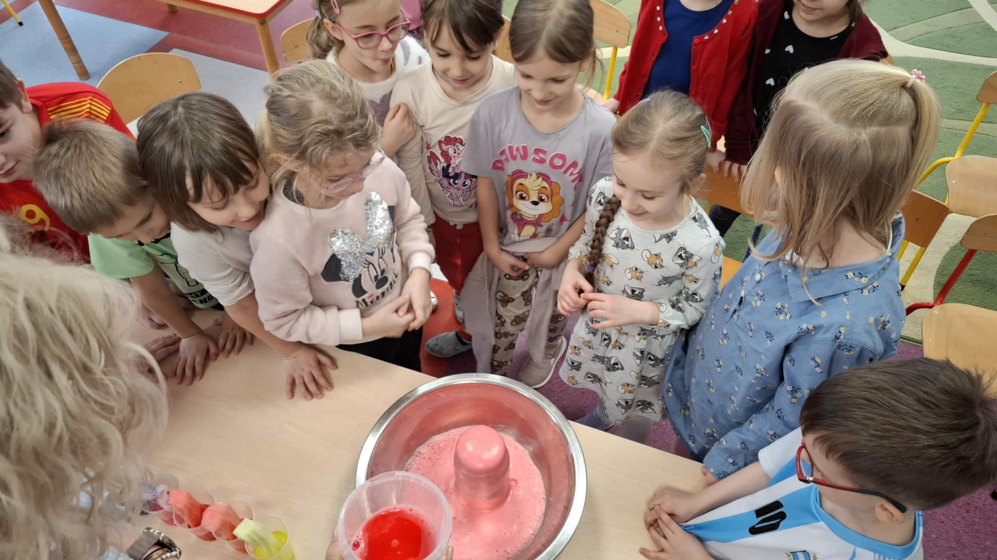 Grupa Biedronki wzięła udział w ciekawych eksperymentach, podczas których dzieci wcieliły się w rolę małych naukowców. Podczas spotkania przedszkolaki wykonywały proste i bezpieczne eksperymenty, obserwowały zachodzące zjawiska oraz wyciągały własne wnioski. Zajęcia były doskonałą okazją do rozwijania ciekawości, kreatywności i radości z odkrywania nowych rzeczy.