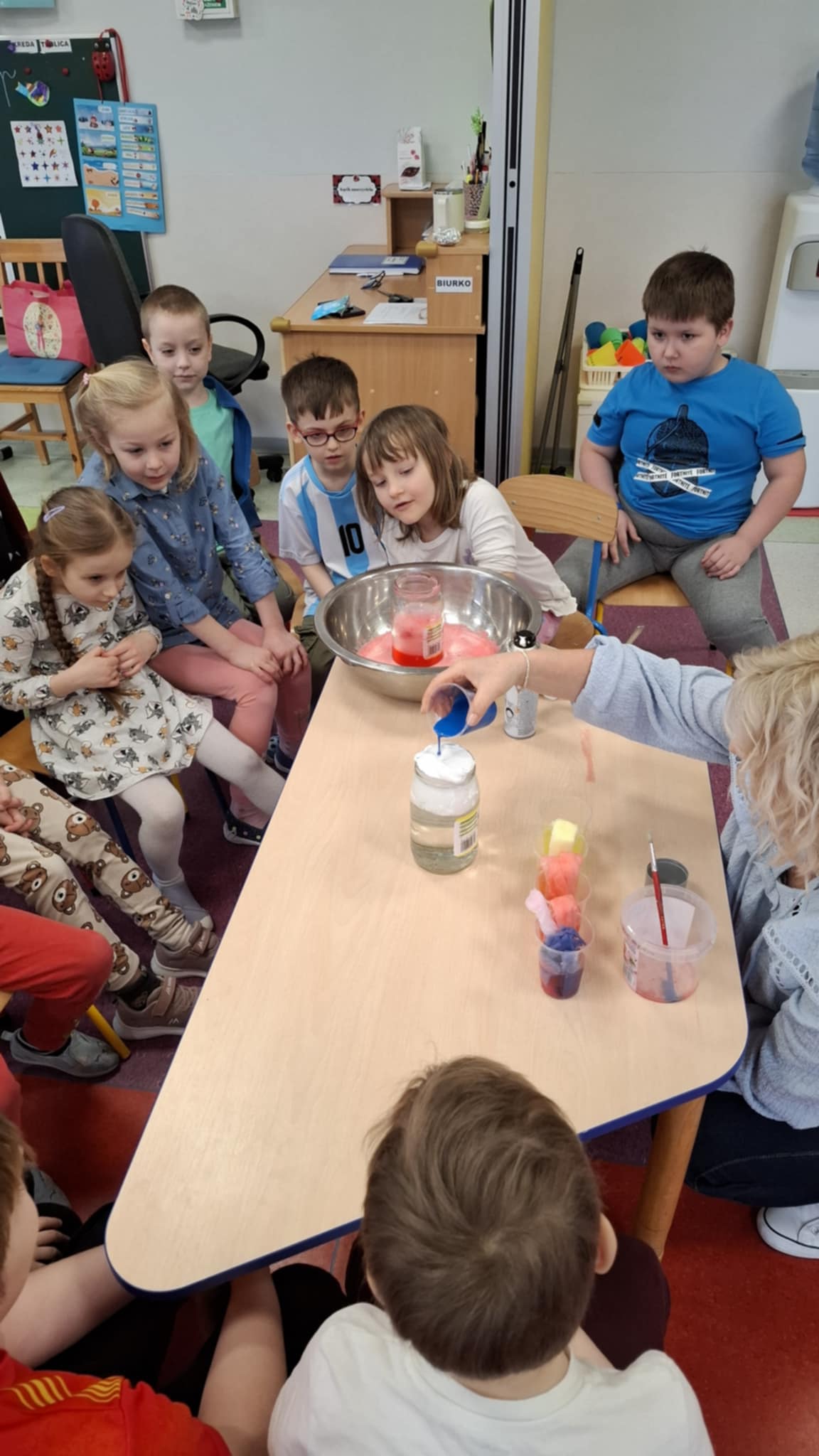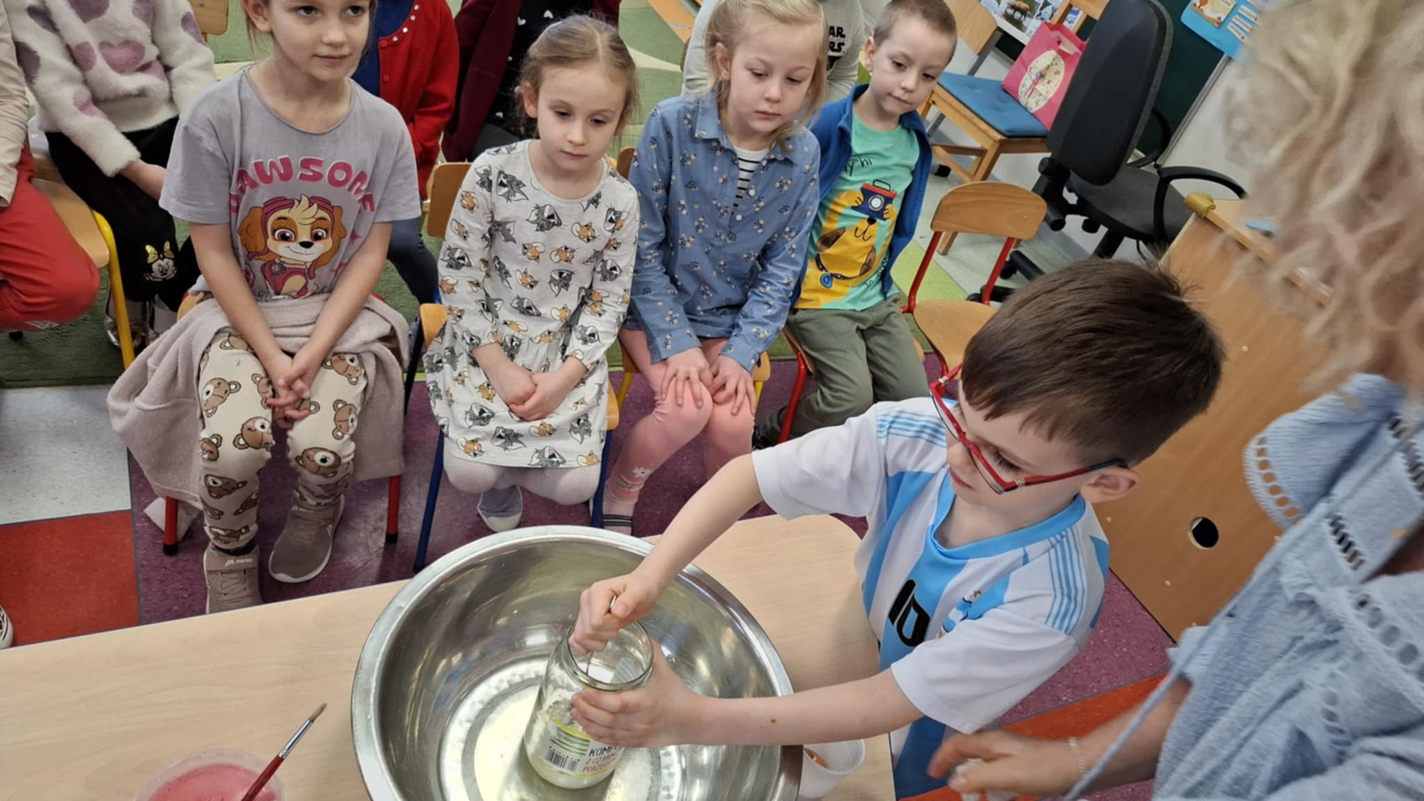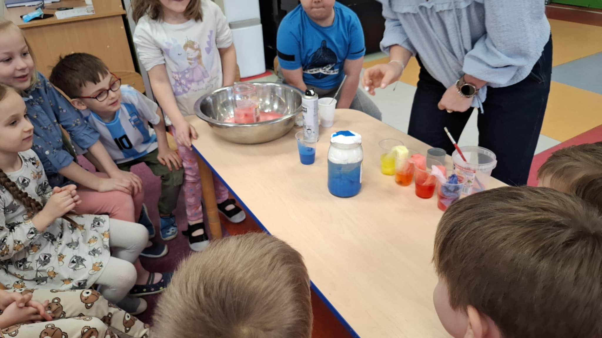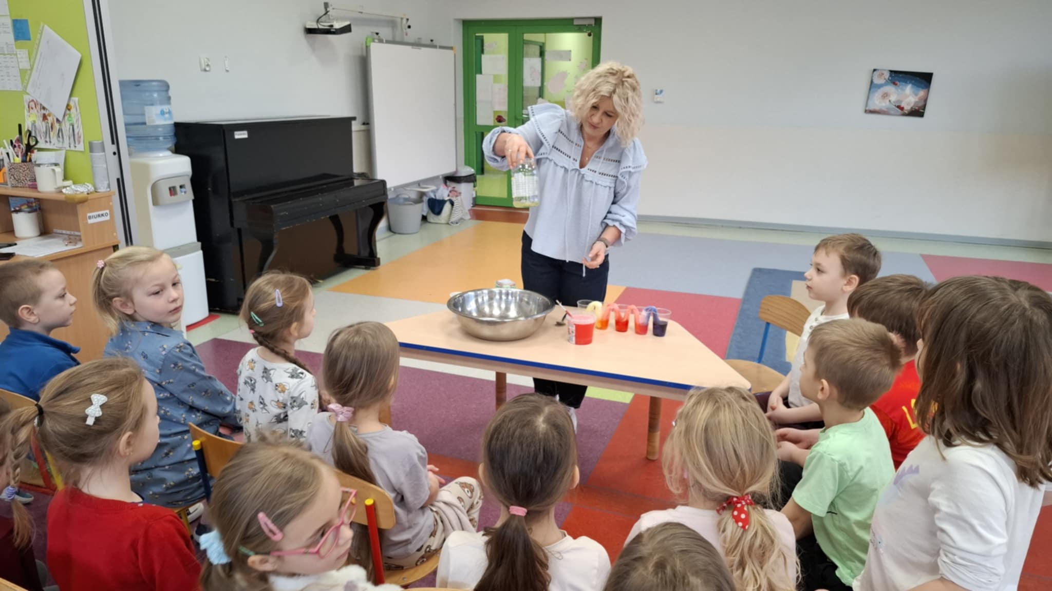 Grupa Biedronki wzięła udział w ciekawych eksperymentach, podczas których dzieci wcieliły się w rolę małych naukowców. Podczas spotkania przedszkolaki wykonywały proste i bezpieczne eksperymenty, obserwowały zachodzące zjawiska oraz wyciągały własne wnioski. Zajęcia były doskonałą okazją do rozwijania ciekawości, kreatywności i radości z odkrywania nowych rzeczy.