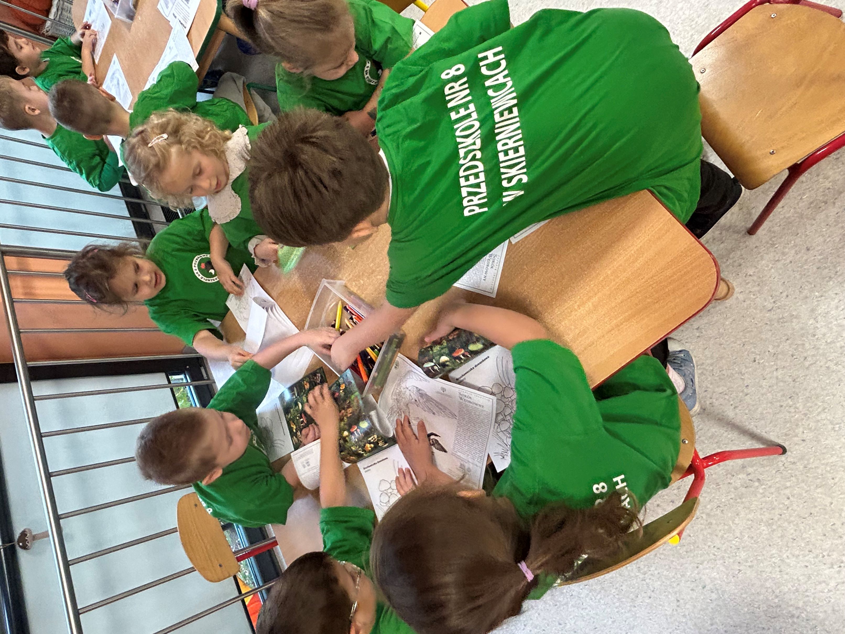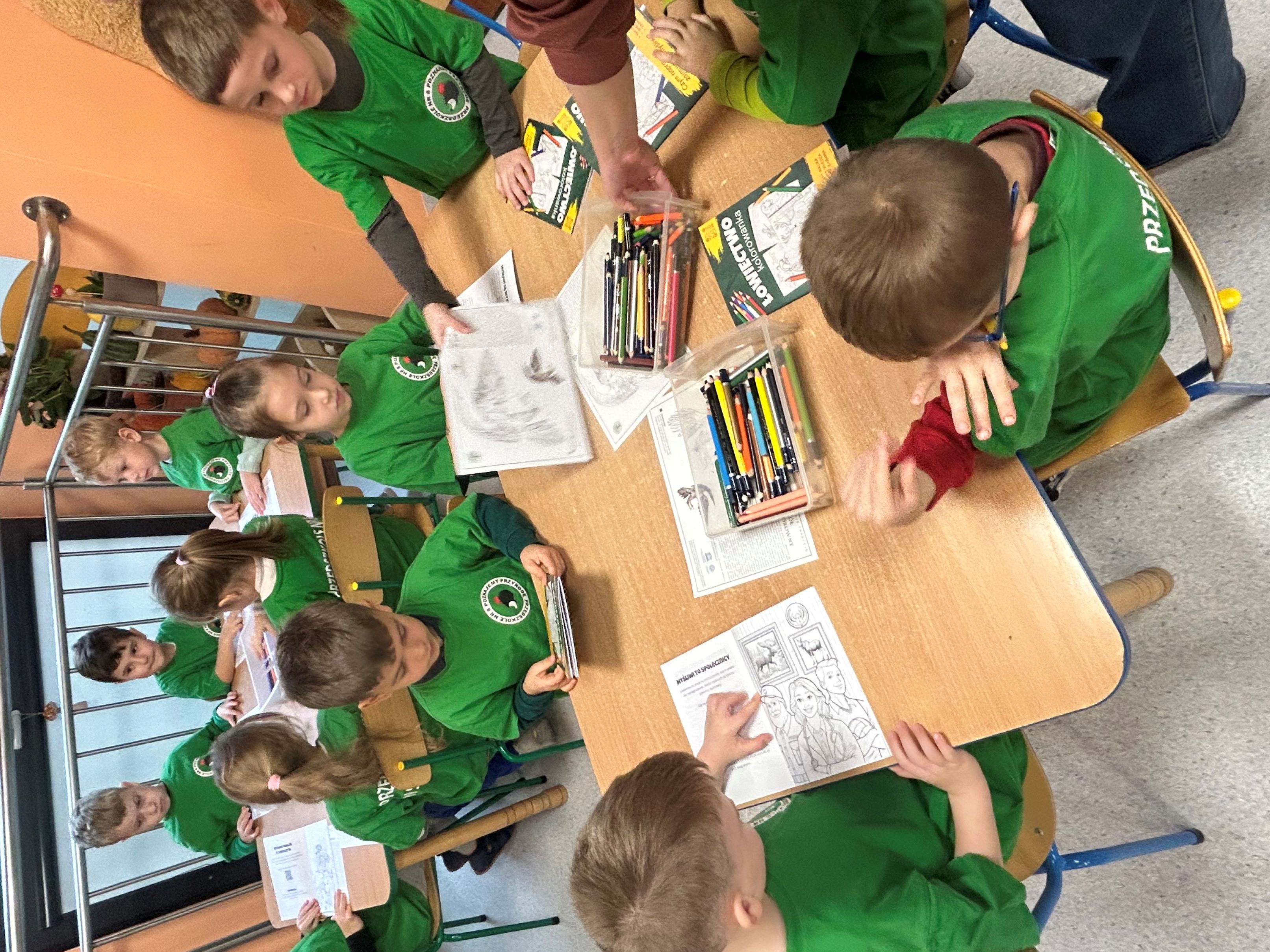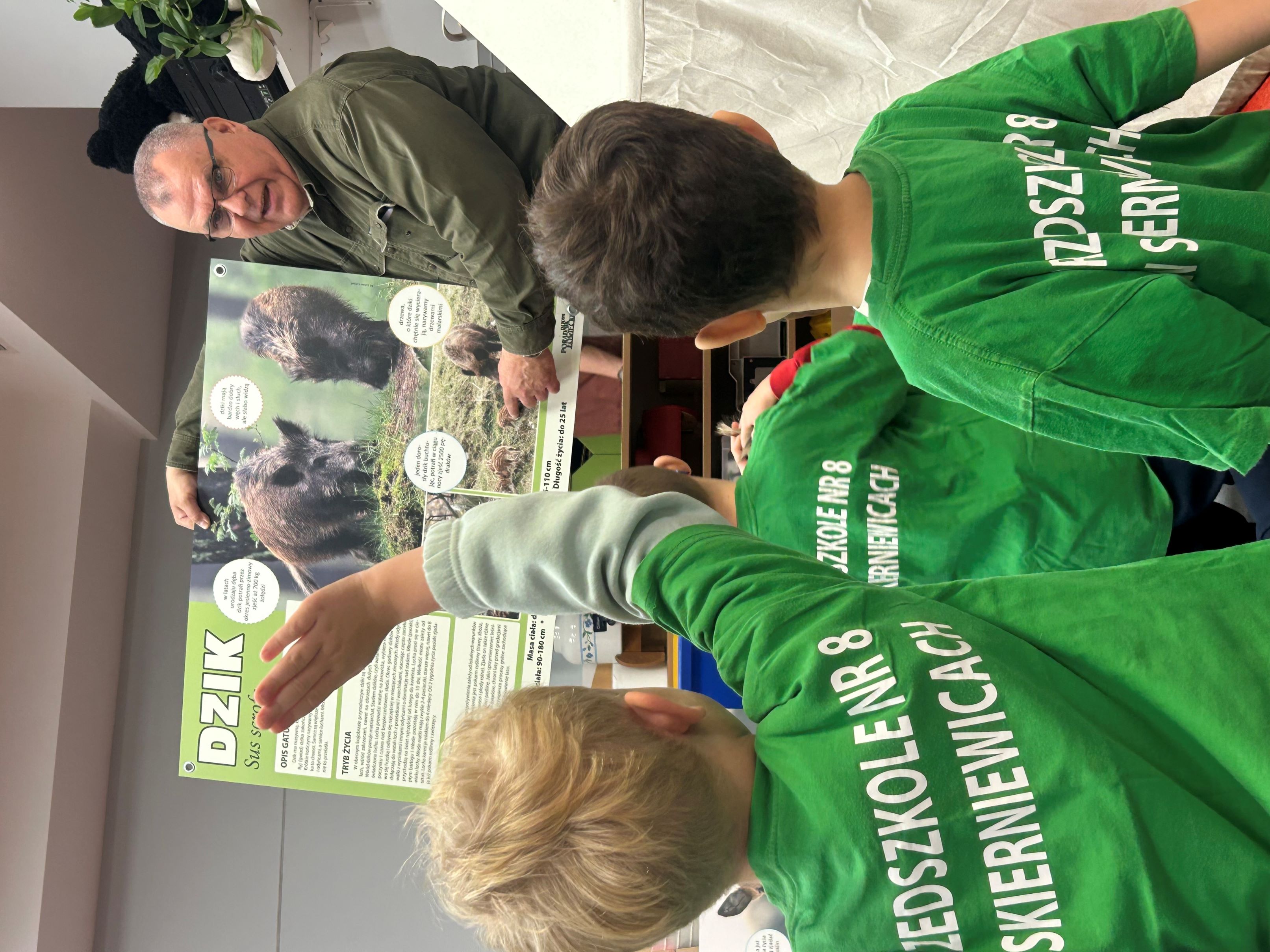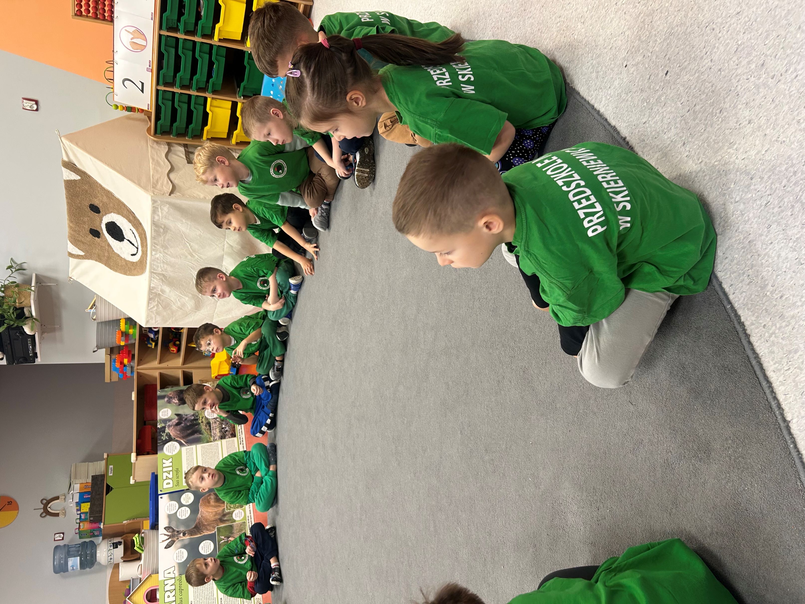 W związku z obchodami Dnia Drzewa, 10 października gościliśmy w naszej grupie Pana myśliwego, który przeprowadził dla nas zajęcia związane z tematyką drzew i mieszkańców lasów. Poznaliśmy rodzaje drzew, ich znaczenie dla człowieka, zwierząt i przyrody. Wykonaliśmy pracę plastyczno - techniczną - Jesienne drzewa, a prezenty, które dostaliśmy - kolorowanki i książeczki o tematyce ekologicznej, stały się dla nas okazją do integracji oraz poszerzenia wiedzy przyrodniczej.