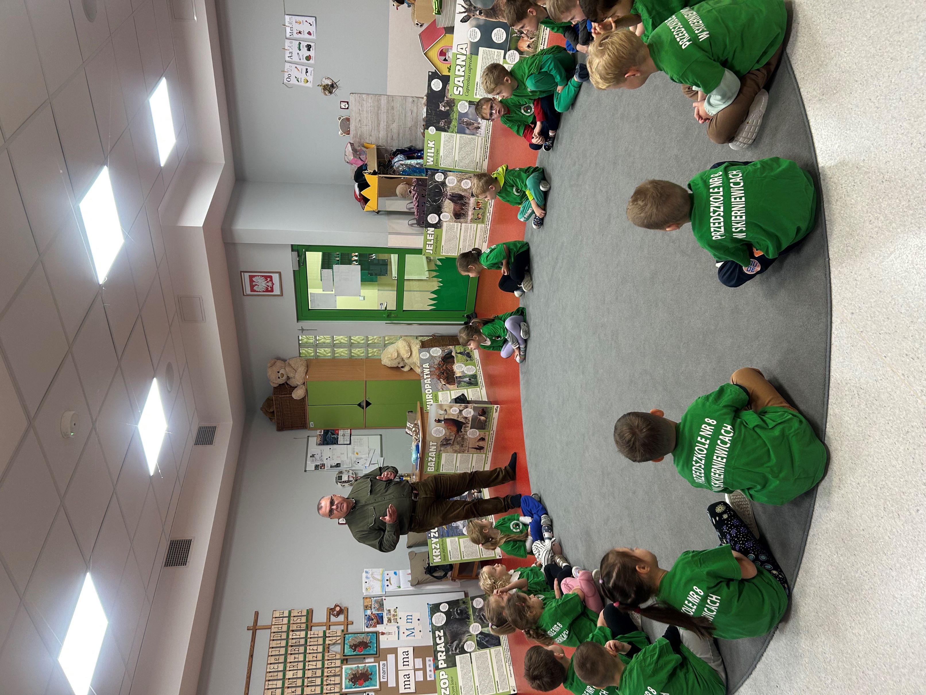 W tym roku, w związku z obchodami Dnia Drzewa, nasze przedszkole odwiedził Pana myśliwy, który przeprowadził dla dzieciaków zajęcia o drzewach i mieszkańcach lasów. Przedszkolaki usłyszały min. jakie znaczenie mają one dla człowieka i przyrody. W związku z obchodami tego dnia w naszym przedszkolu odbył się również konkurs plastyczny pt. „Przygoda z drzewem”, w którym udział wzięły dzieci wraz ze swoimi rodzicami. Zadaniem uczestników było stworzenie pracy plastycznej inspirowanej przygodami z drzewem. Dzieci z grupy „Biedronki” oraz „Rybki” wybrały się na pełną wrażeń wycieczkę do Rogowa. Jednym i najważniejszym z punktów programu był spacer z przewodnikiem po arboretum w Rogowie – jednym z najpiękniejszych ogrodów dendrologicznych w Polsce. Dzieci mogły tam zobaczyć różne gatunki drzew i krzewów z całego świata, dowiedzieć się, jak rozpoznawać drzewa po liściach i korze, a także poznały wiele ciekawostek o roślinach i ich znaczeniu dla przyrody. To był dzień pełen przygód, nowych doświadczeń i radosnych chwil spędzonych w otoczeniu natury!