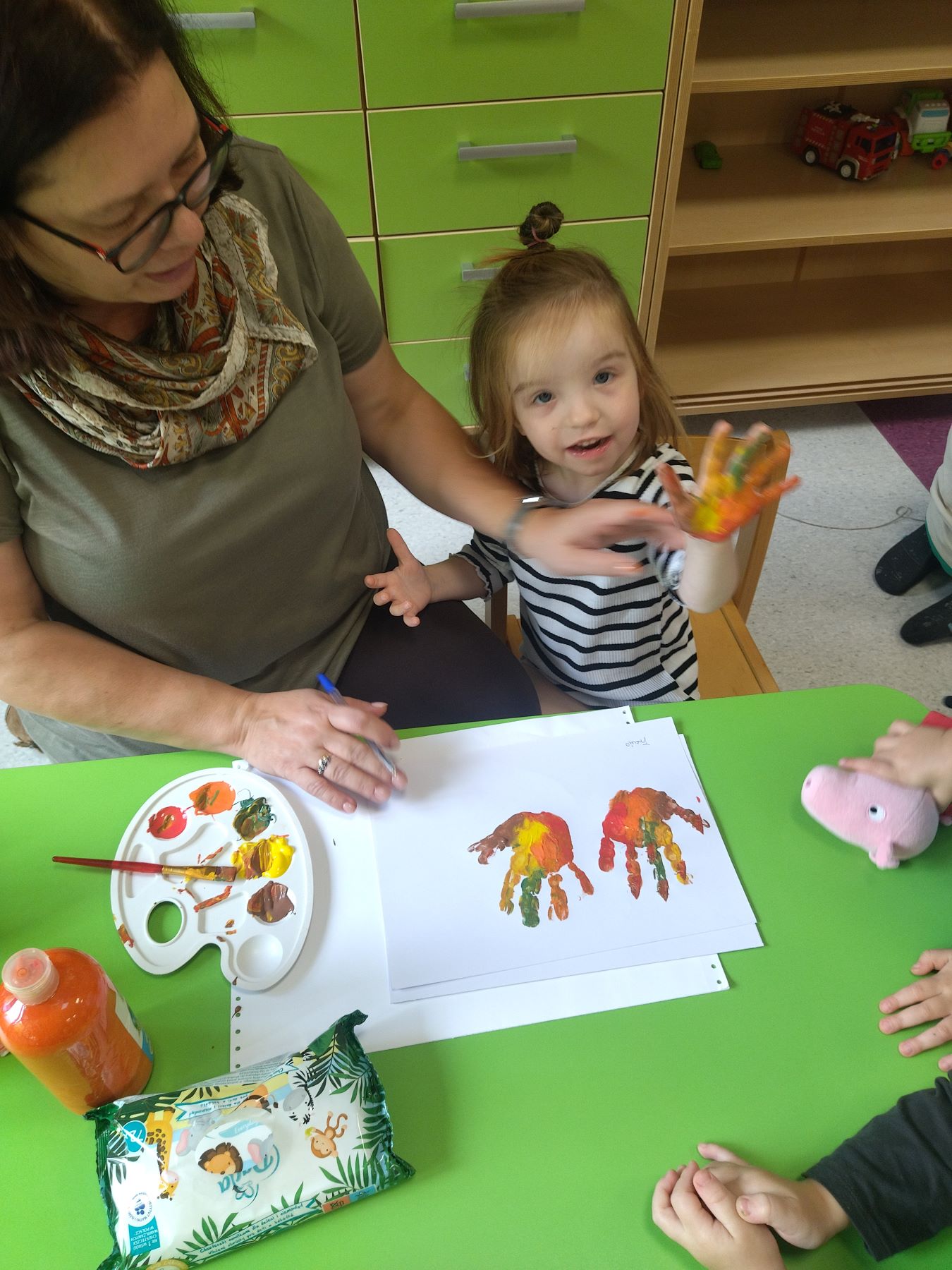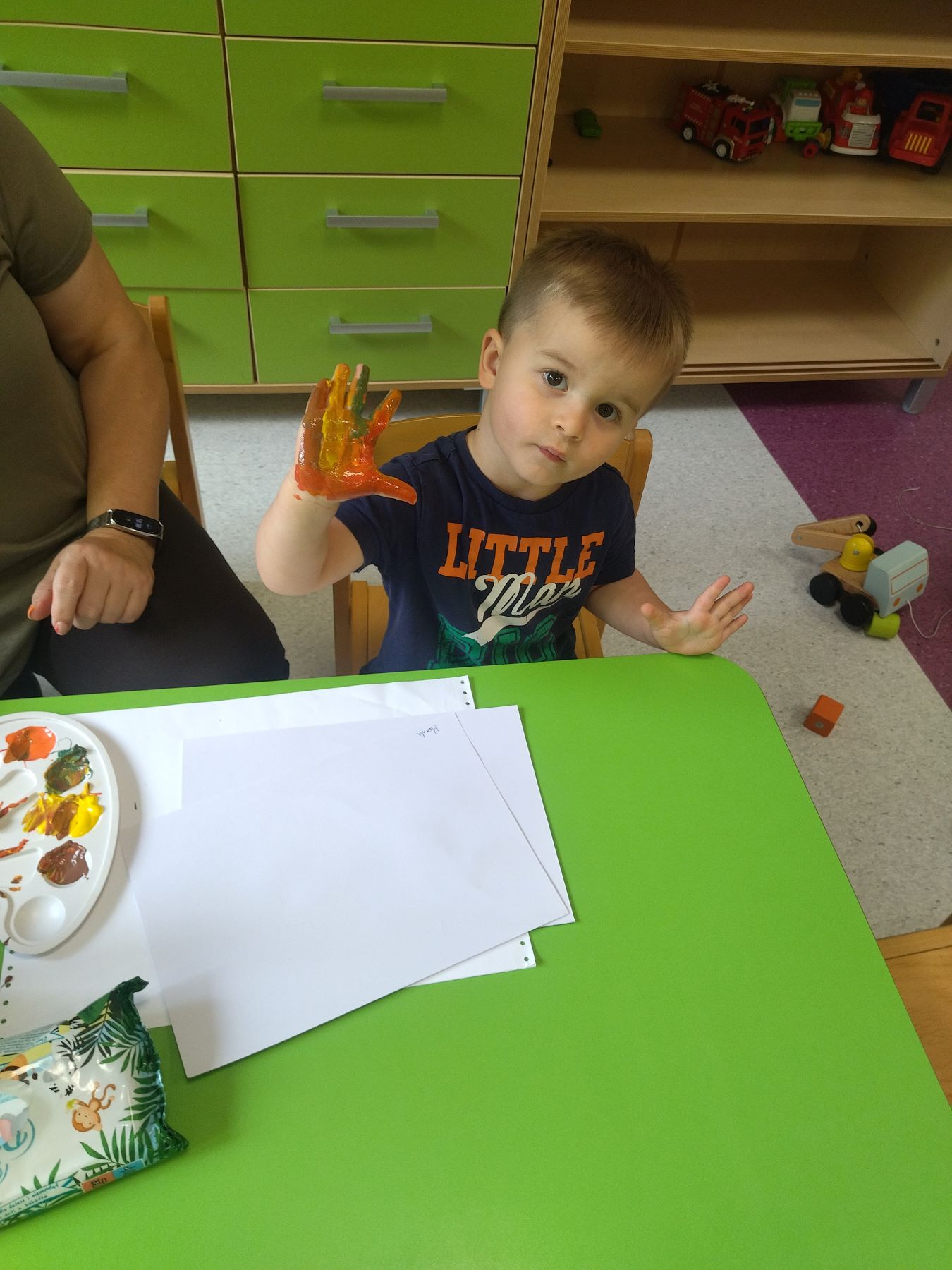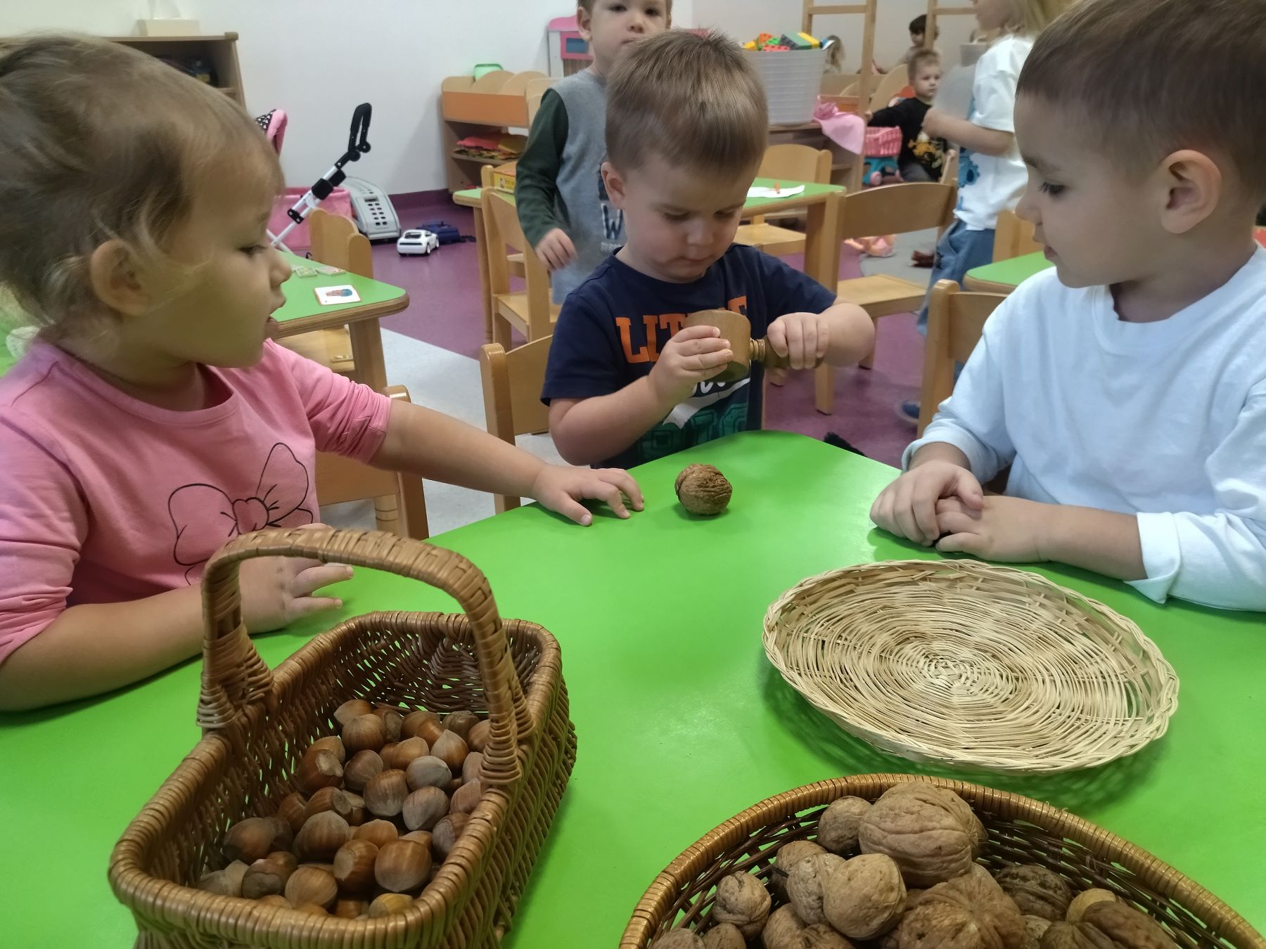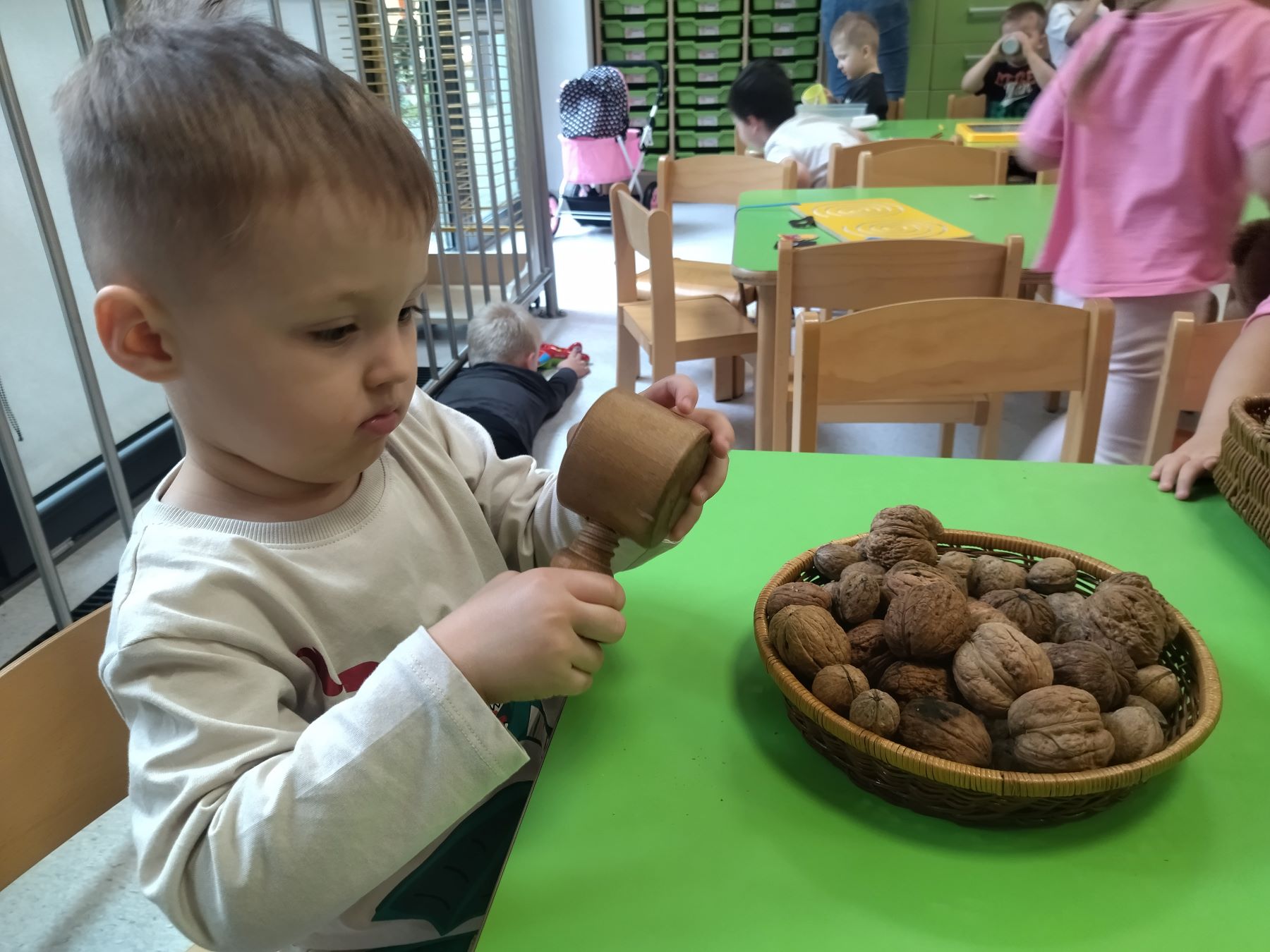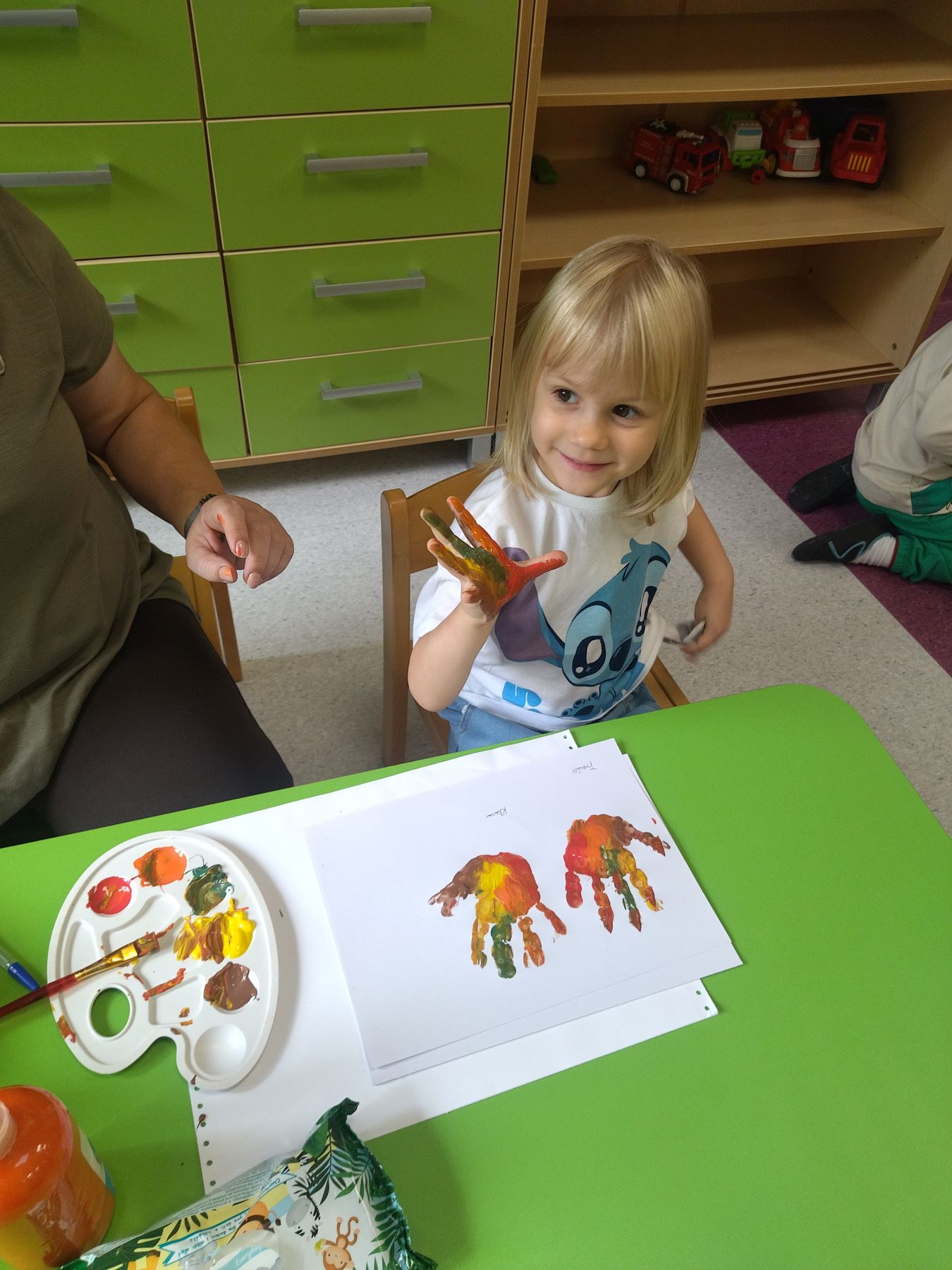 Myszki spędziły swój pierwszy Dzień Drzewa na zabawach w sali - były wiewiórkami szukającymi dziupli, tworzyły liście ze swoich dłoni, układały wzory z szyszek, kasztanów i orzechów, oglądały wystawę pięknych prac plastycznych i dobrze się przy tym bawiły.