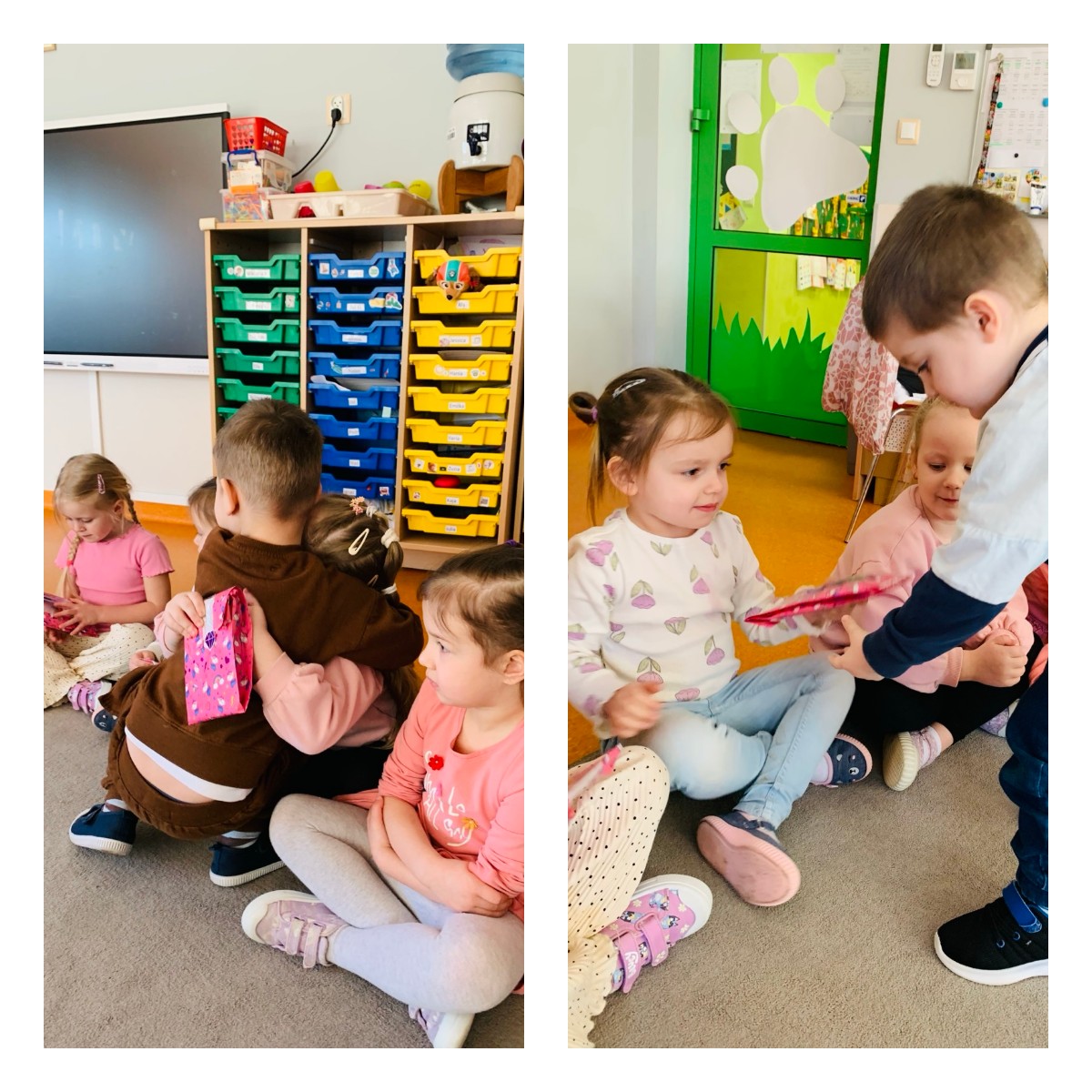 W naszej grupie zrobiło się wyjątkowo radośnie i kolorowo, ponieważ świętowaliśmy Dzień Kobiet. Tego dnia chłopcy stanęli na wysokości zadania i z wielką radością wręczyli dziewczynkom miłą niespodziankę. Każda mała Dama otrzymała niewielki, ale bardzo serdeczny upominek.