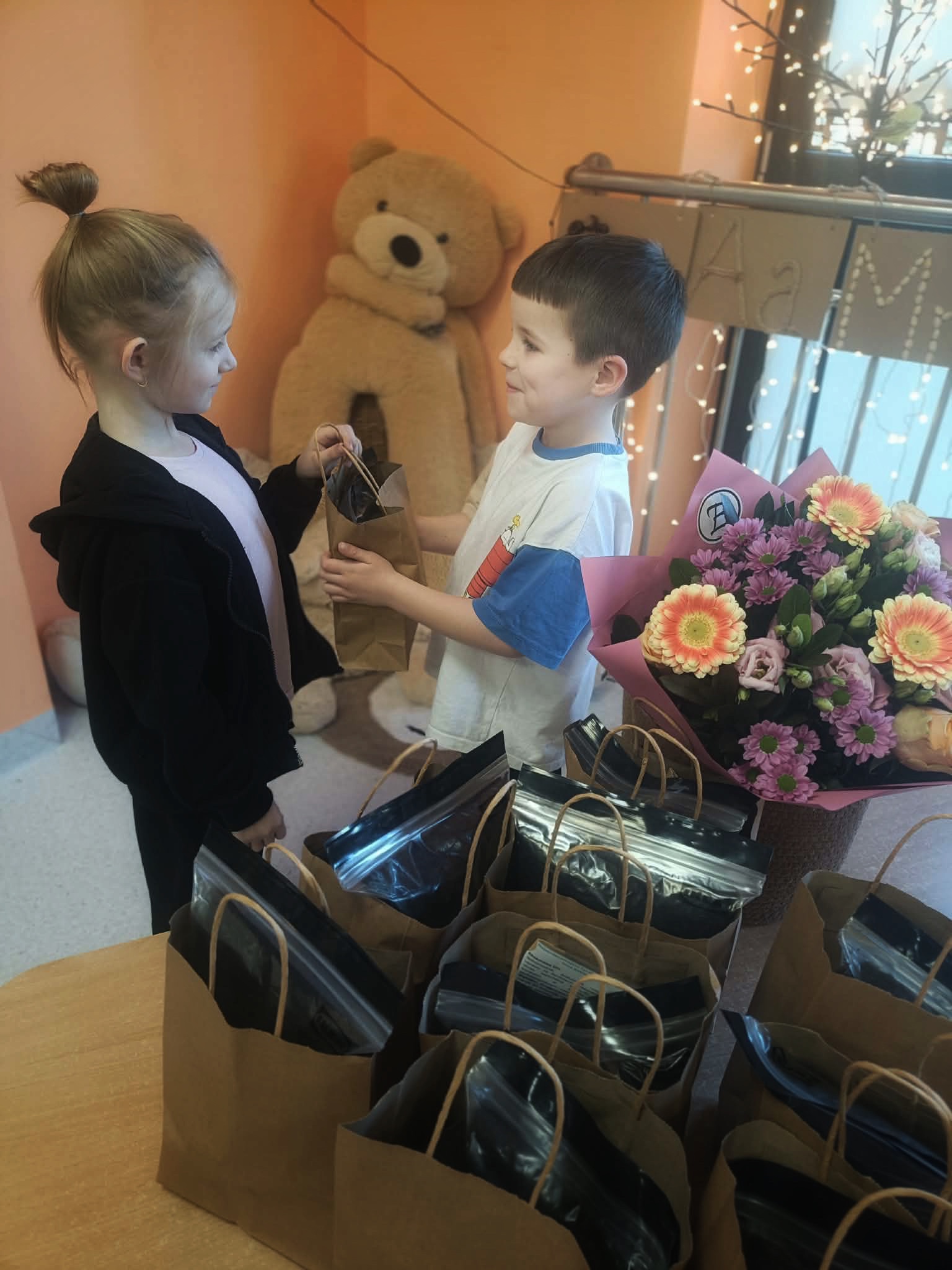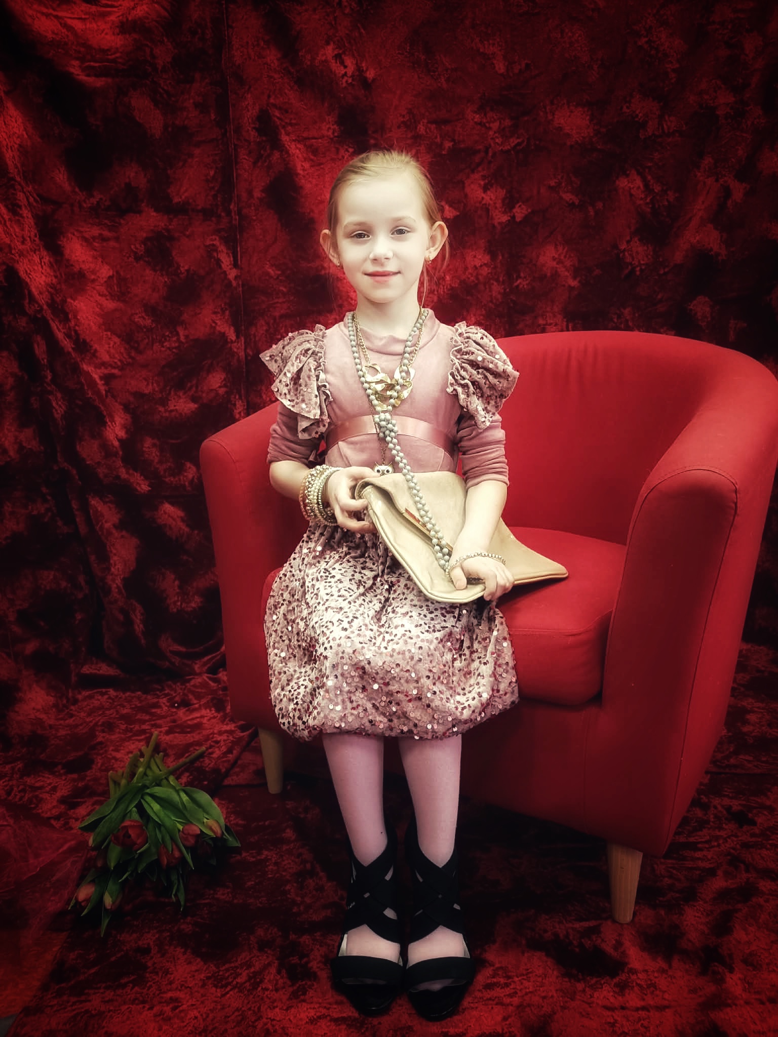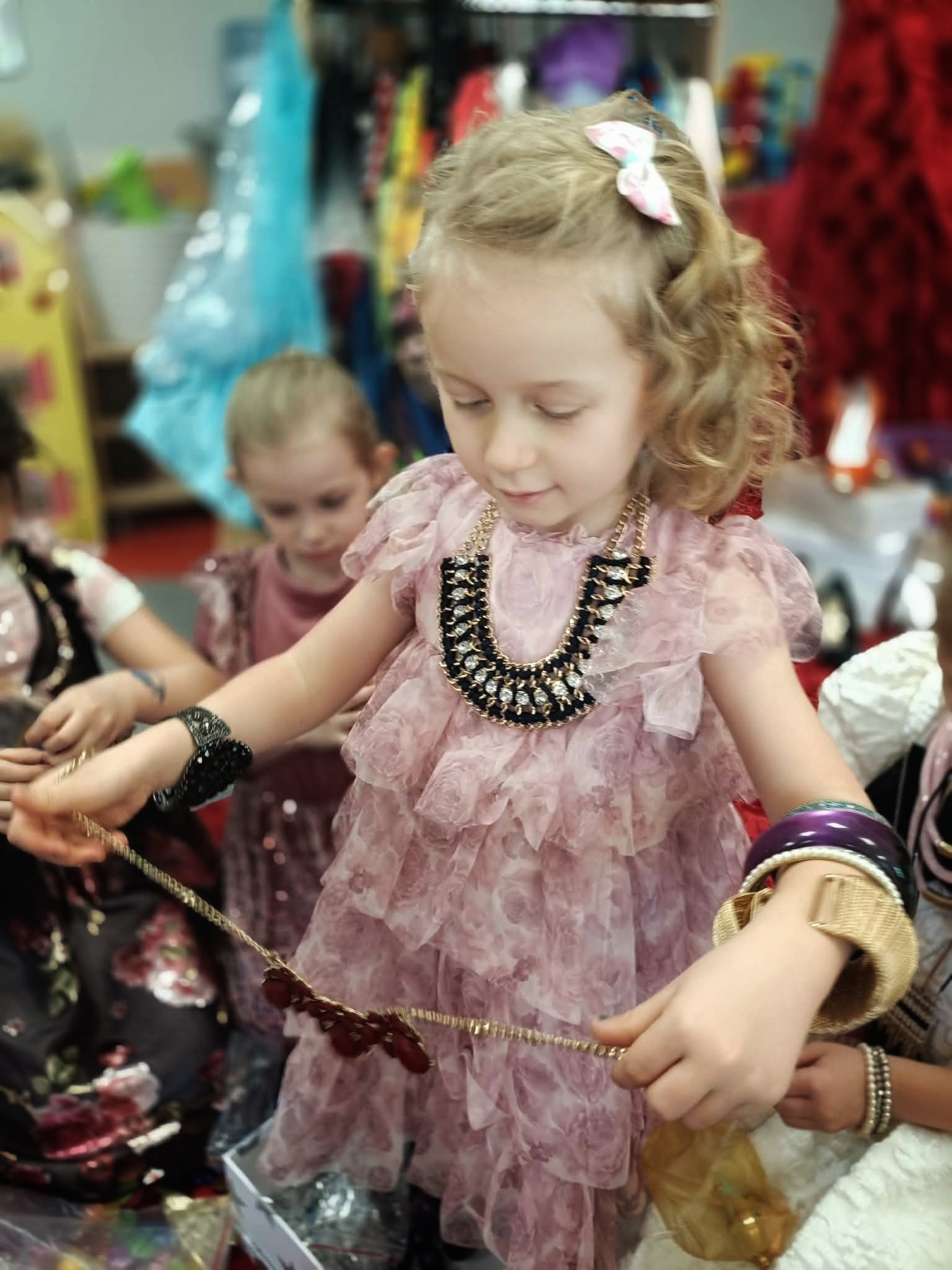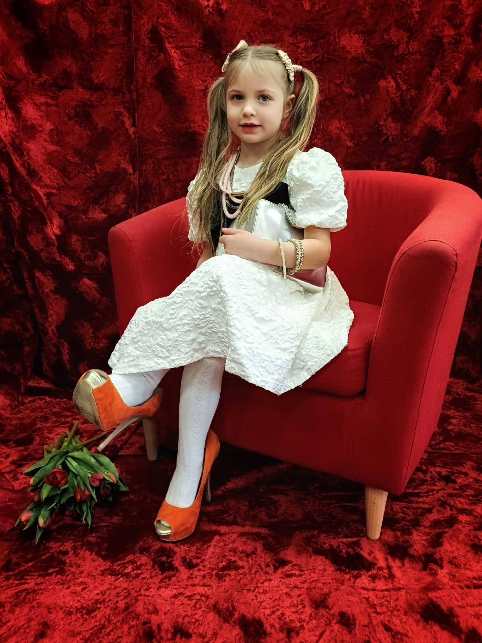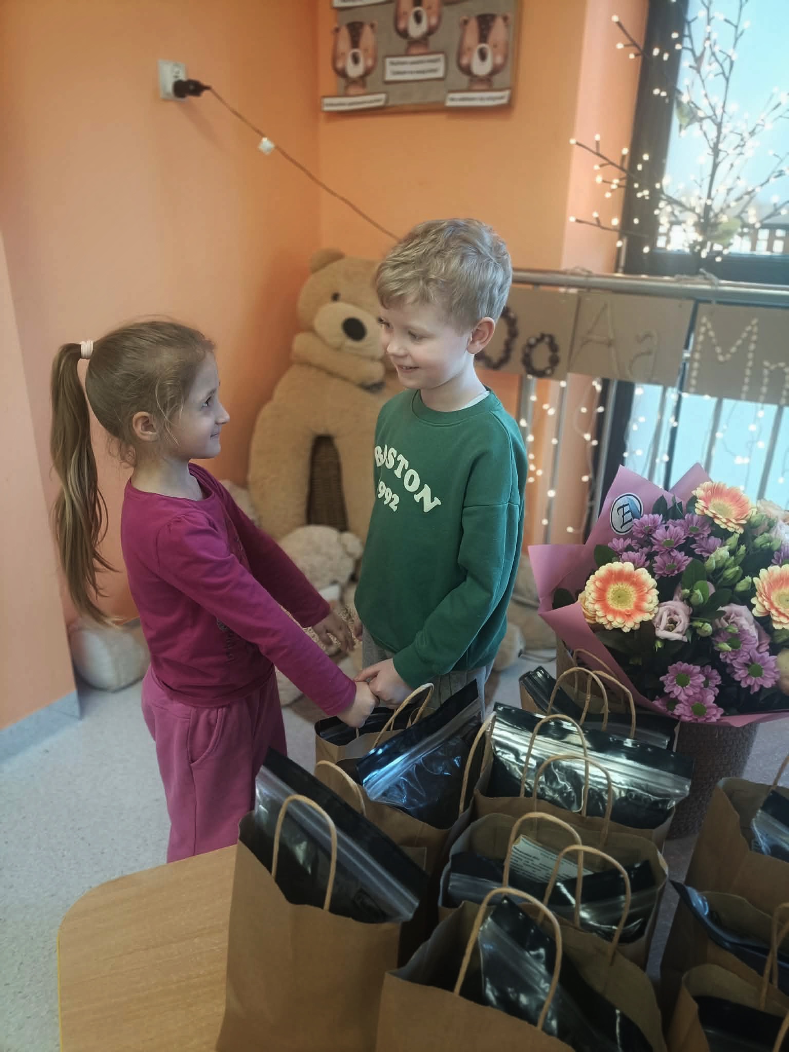 Z okazji Dnia Kobiet w poniedziałkowy poranek, dziewczynki przyszły do przedszkola ubrane w eleganckie sukienki. Na miejscu mogły dobrać do swoich stylizacji różne dodatki - torebki, bransoletki, naszyjniki oraz buty na obcasie. Następnie odbyła się pamiątkowa sesja zdjęciowa. Dziewczynki pozowały na czerwonym fotelu jak prawdziwe gwiazdy, dzięki czemu mogły choć na chwilę poczuć, jak wyjątkowo jest być kobietą. Chłopcy również przygotowali się do tego dnia - założyli koszule swoich tatusiów i eleganckie krawaty. Z dużą powagą i zaangażowaniem wręczyli koleżankom upominki przygotowane przez rodziców. Był to bardzo miły dzień, pełen uśmiechu, życzliwości i wspólnego świętowania.