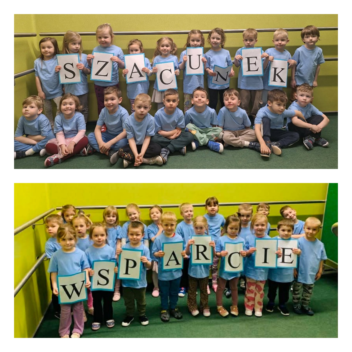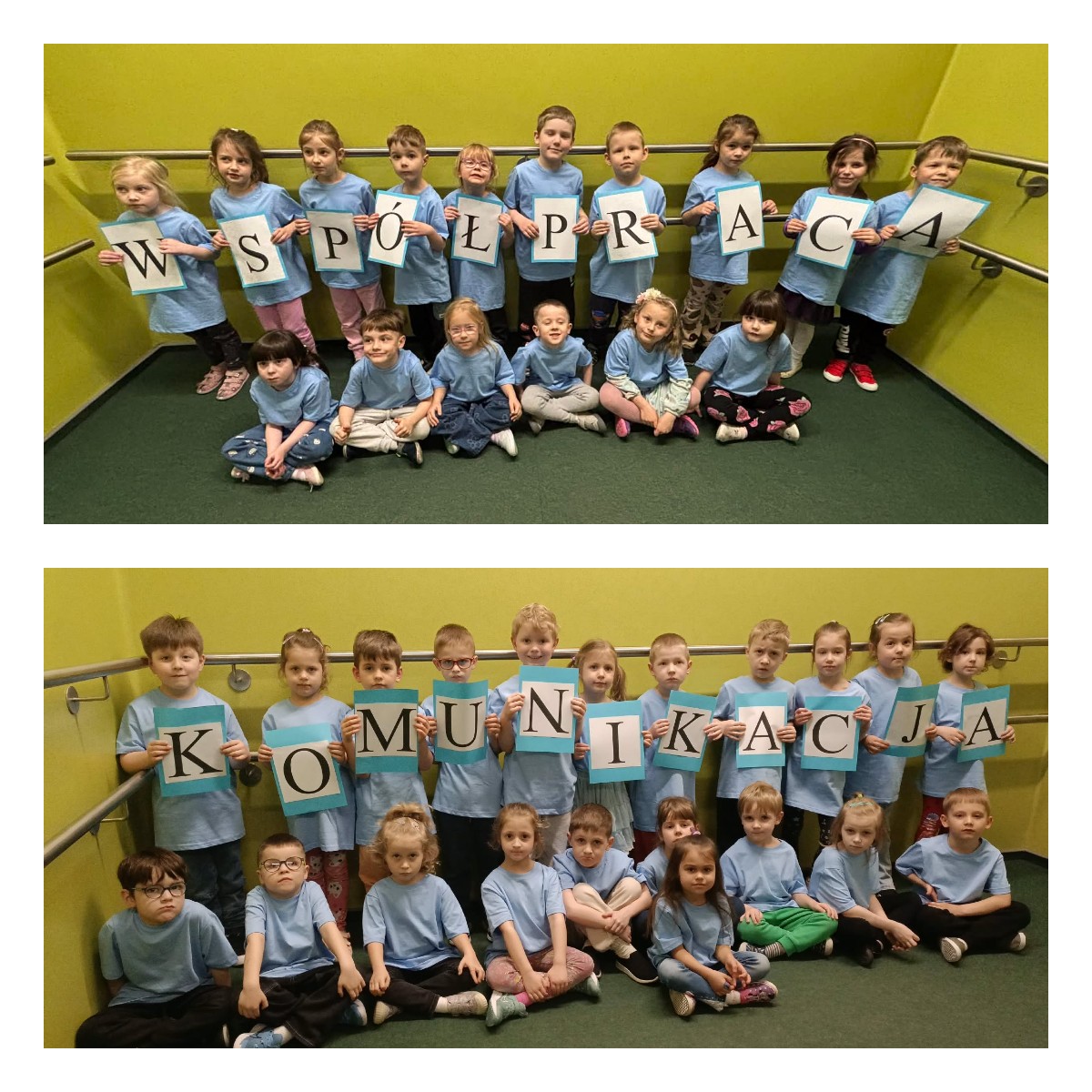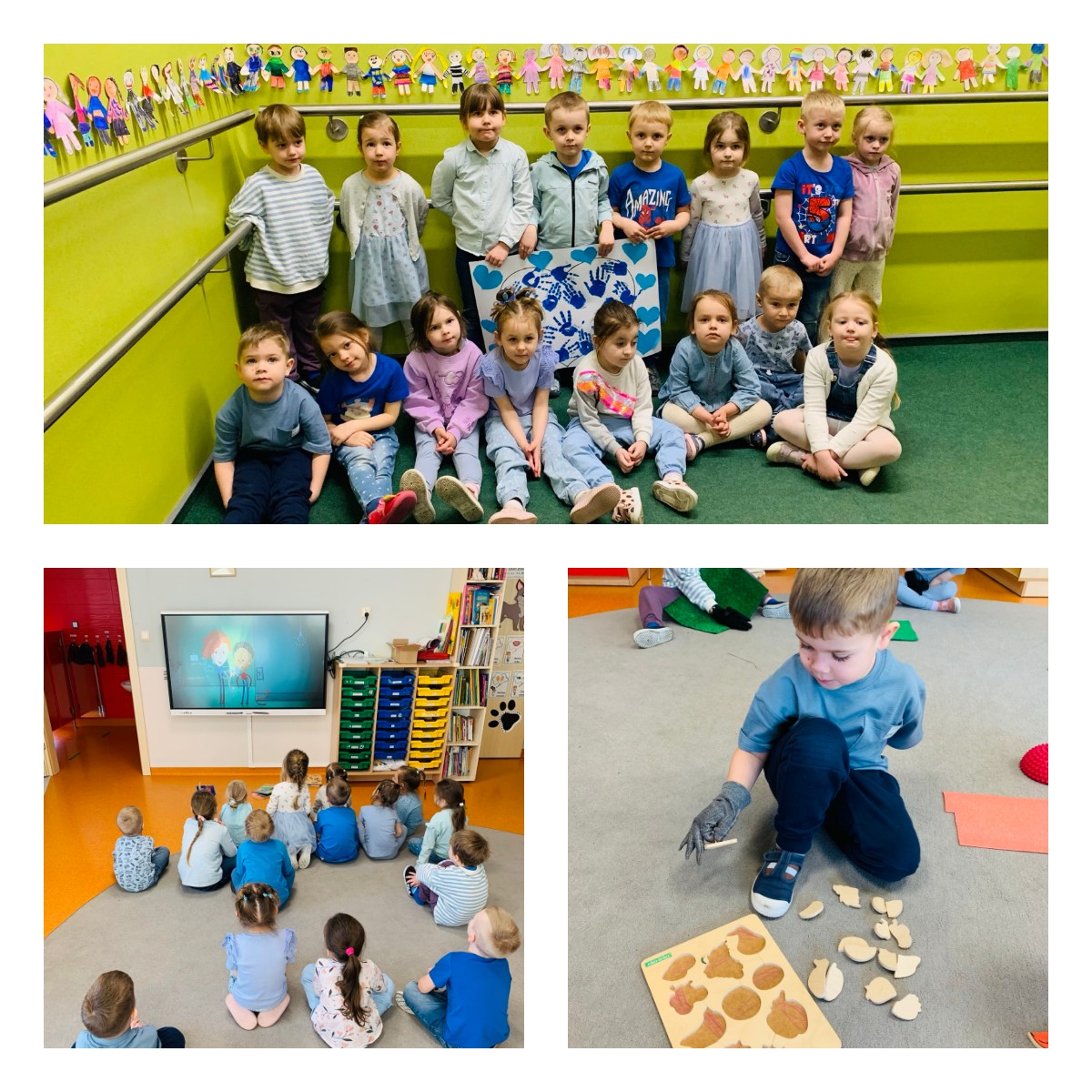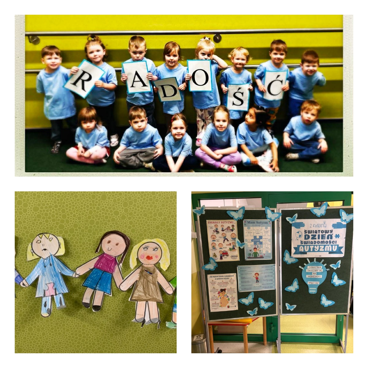 2 kwietnia w przedszkolu obchodziliśmy Dzień Świadomości Autyzmu. Wszyscy byli ubrani na niebiesko, aby okazać wsparcie osobom w spektrum autyzmu. Rozmawialiśmy w grupach o tym, czym jest autyzm oraz jak osoby z autyzmem postrzegają świat i reagują na różne sytuacje. Dzięki temu mogliśmy lepiej zrozumieć ich potrzeby i emocje. Wspólnie wykonaliśmy także łańcuch przyjaźni, który zawisł na schodach i je ozdabiał.