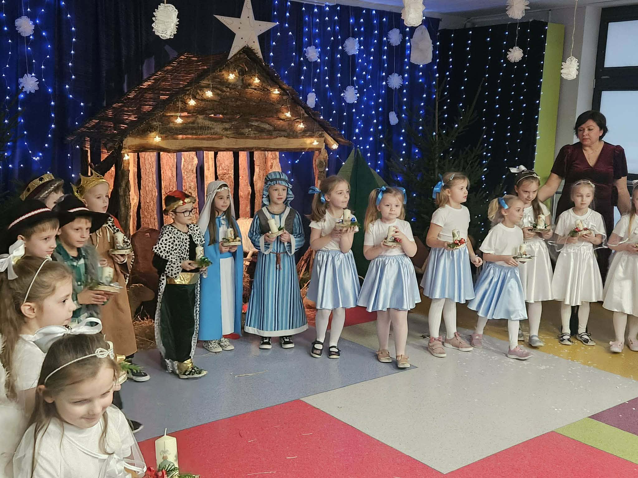18 grudnia nasze straszaki zamieniły się w anioły, pasterzy i królów, by opowiedzieć najpiękniejszą historię o Bożym Narodzeniu. Jesteśmy dumni z naszych sześciolatków - za odwagę na scenie, pięknie recytowane wiersze i wspólne śpiewanie pastorałek. To był czas pełen radości i dziecięcej magii, który wprowadził wszystkich gości w świąteczny nastrój.