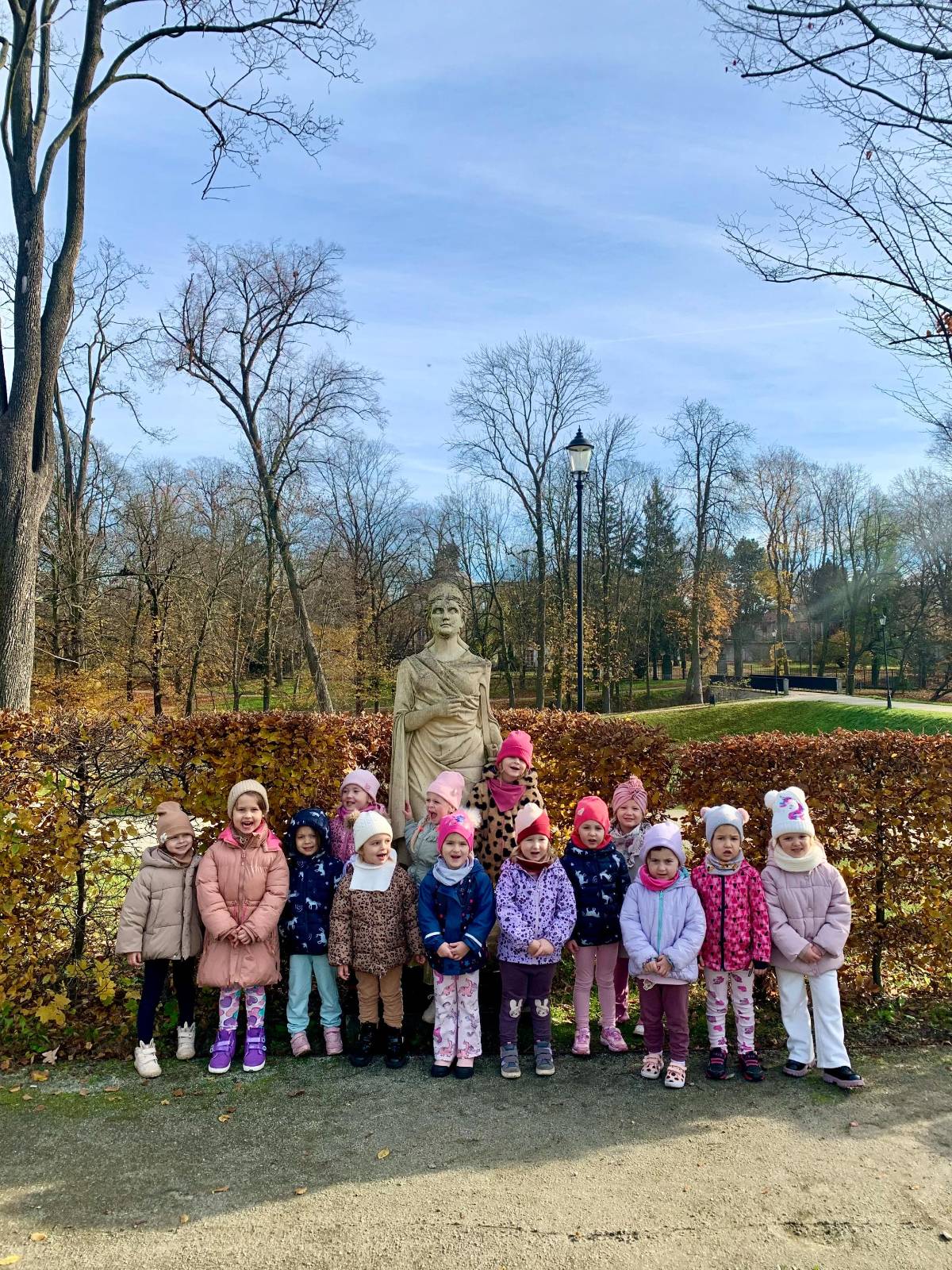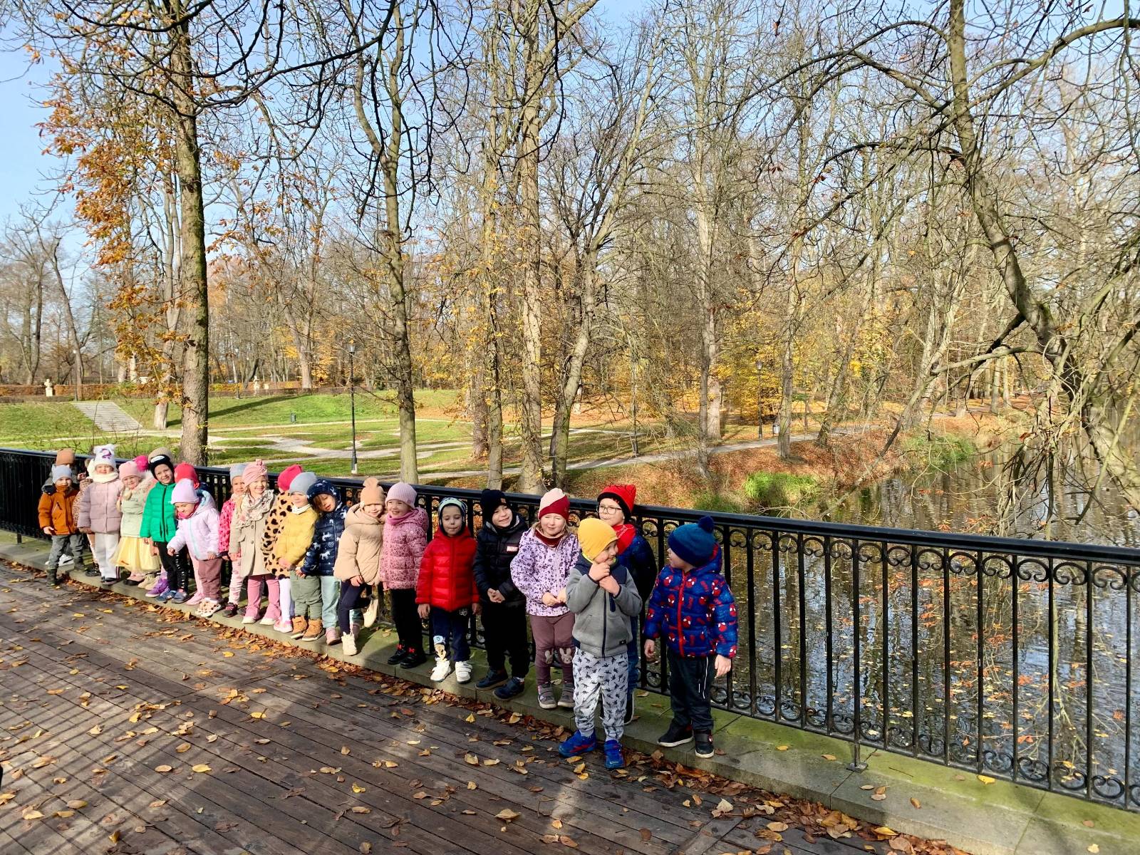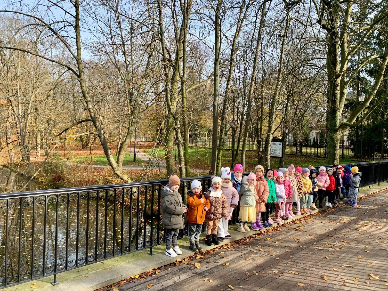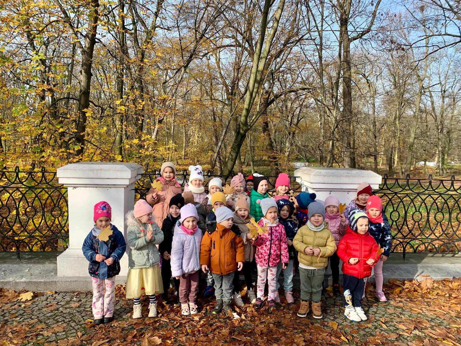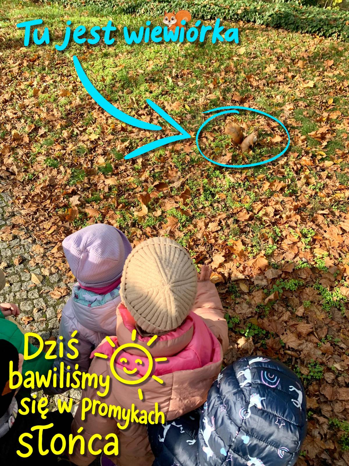 W piękny, słoneczny dzień "Wilczki" wybrały się na spacer do pobliskiego parku. Celem wyjścia było obserwowanie jesiennych zmian w przyrodzie oraz korzystanie z ostatnich promieni słonecznych. Podczas spaceru przedszkolaki z zachwytem podziwiały kolorowe liście na drzewach – żółte, czerwone i pomarańczowe. W parku udało się również zobaczyć kilka wiewiórek, które zwinne i szybkie przeskakiwały z gałązki na gałązkę, chowając orzechy wśród liści. Dzieci były bardzo zainteresowane ich zachowaniem i z radością obserwowały te małe, rude zwierzątka.