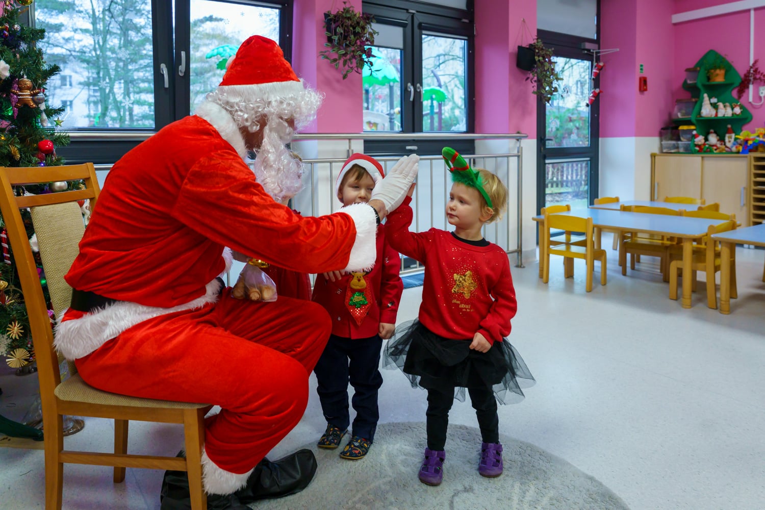 Mikołajki w przedszkolu to wielkie wydarzenie! Wszyscy ubrani na czerwono, czekają... I jest! Prawdziwy Święty Mikołaj! I okazało się, że wszyscy byli grzeczni i każdy dostał prezent!