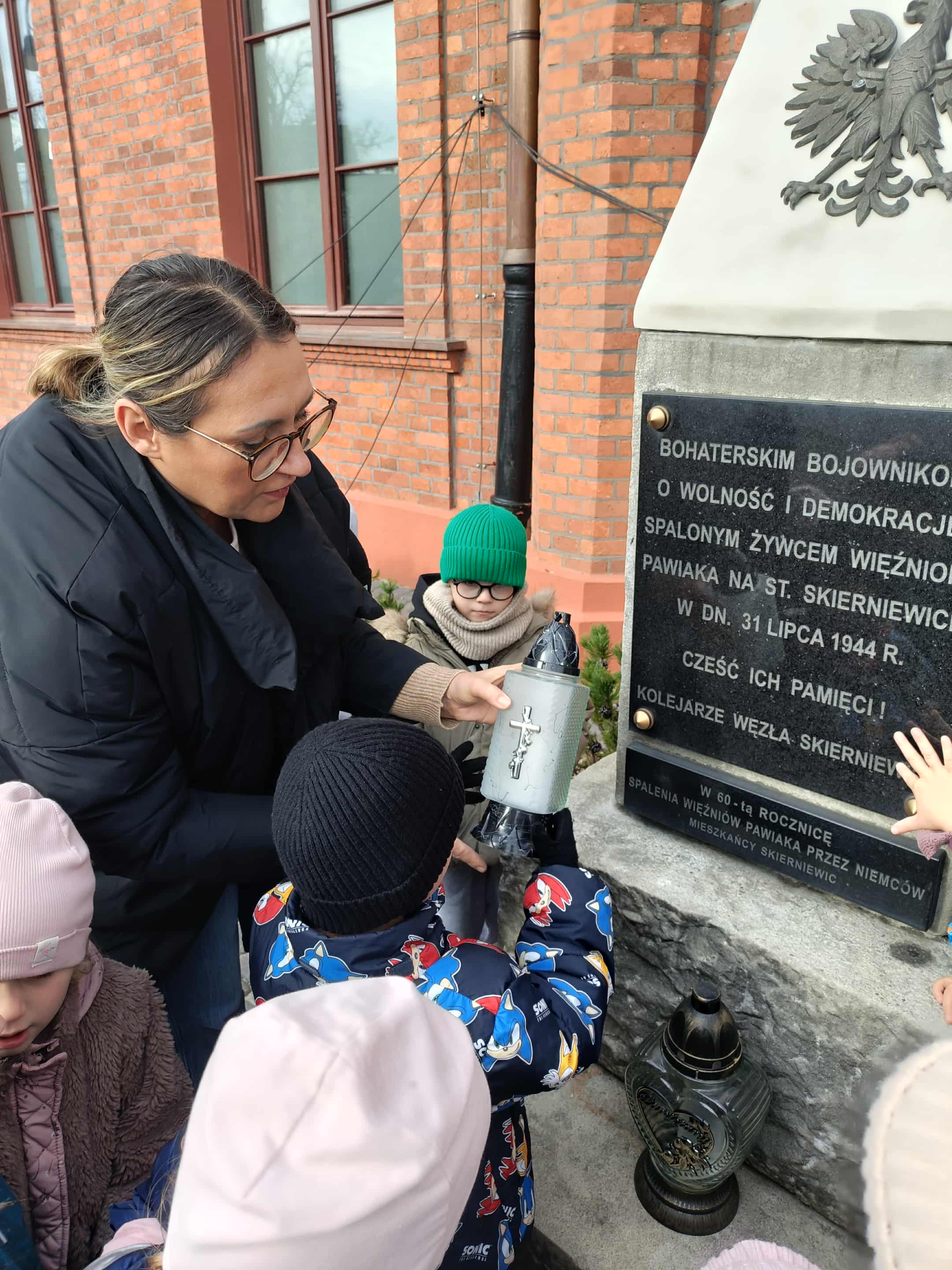 Grupa Miśki wybrała się pod pomnik znajdujący się na Dworcu PKP w Skierniewicach, poświęcony zmarłym więźniom politycznym. Dzieci zapaliły znicz na cześć poległym w obronie naszej ojczyzny. Celem wyjścia było zwrócenie uwagi młodych ludzi na potrzebę pielęgnowania pamięci o bohaterach naszej wolności, szczególnie tych, którzy związani byli z historią naszego miasta.