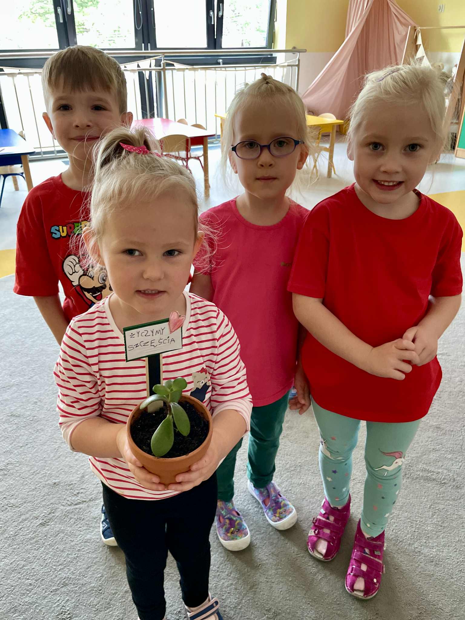 W grupie Słońca mali ogrodnicy z uśmiechem sadzą swoje drzewka szczęścia. Każda garść ziemi to odrobina serdeczności, którą dzielą się z naturą i sobą nawzajem. Rośnie nie tylko drzewko - rosną też dobre serca naszych przedszkolaków.
