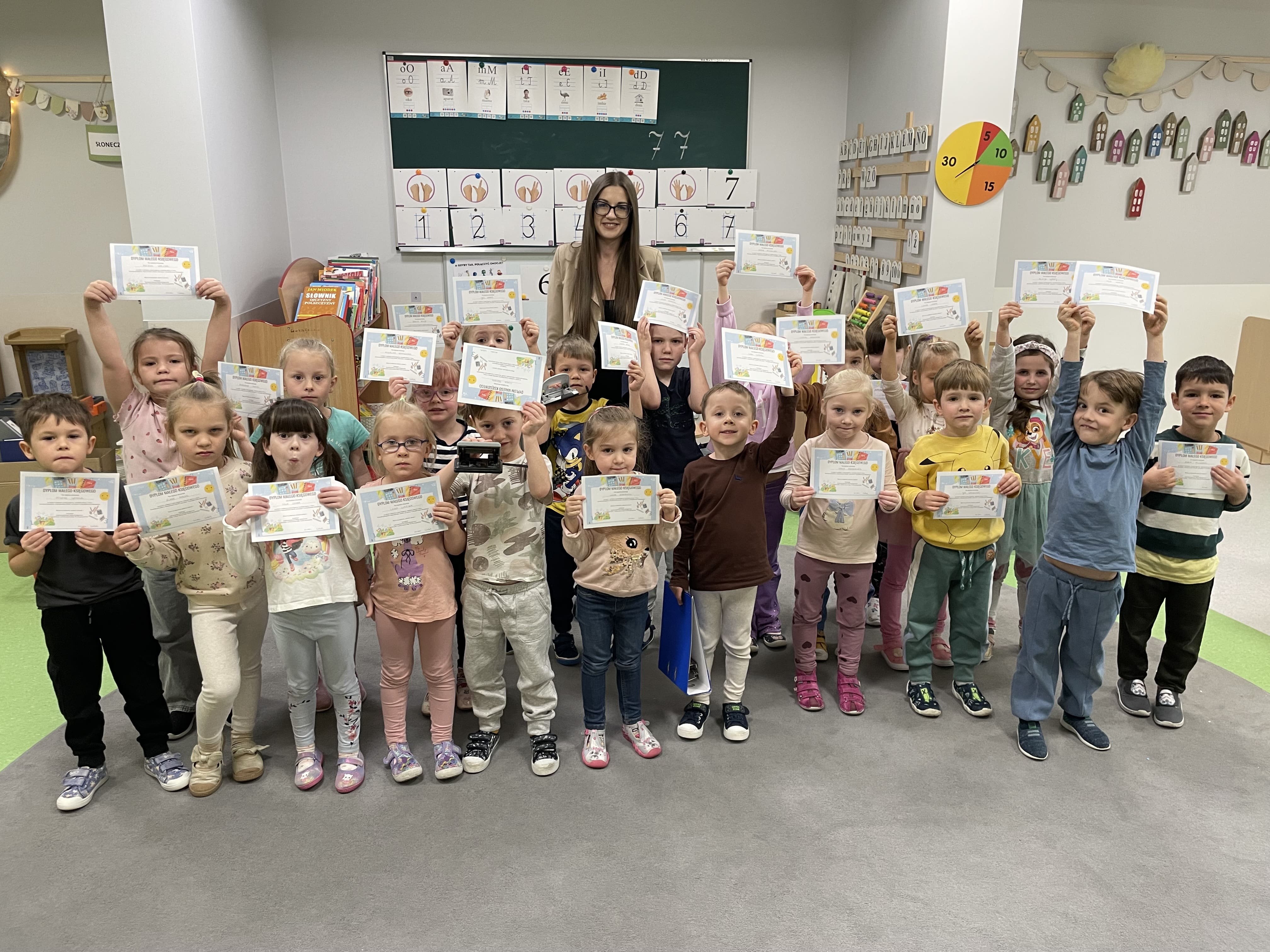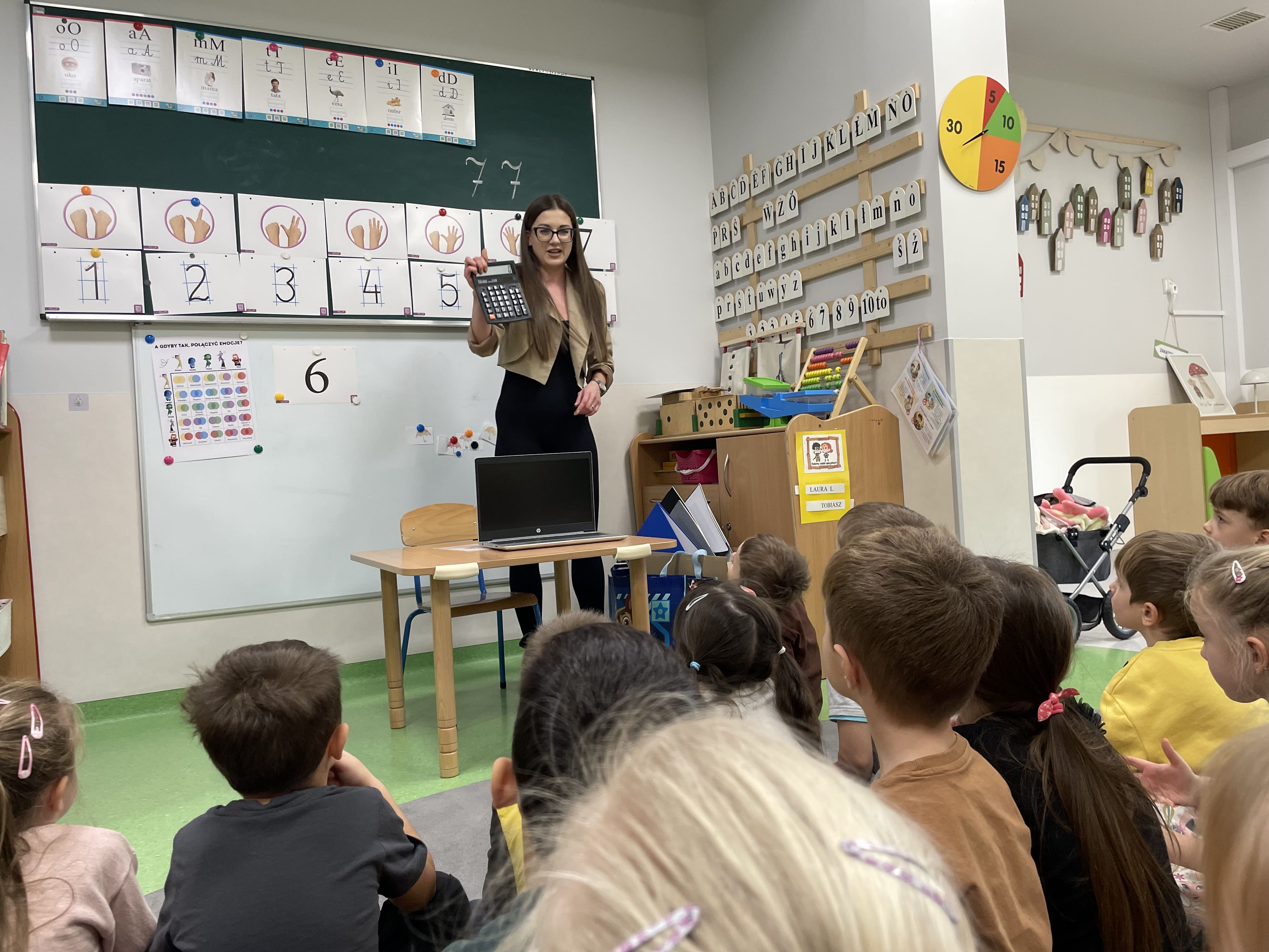 Do grupy Słońca przyszła mama Igora - Pani Sara - Księgowa, która opowiedziała dzieciom o swojej pracy. Pokazała im, jak segreguje dokumenty i układa wszystkie papierki tam, gdzie trzeba. Przedszkolaki z zainteresowaniem oglądały paragony, jakby były skarbami. Pani Sara wyjaśniła też zasady oszczędzania pieniędzy i znaczenie porządku w biurze. Dzieci uznały, że księgowa to ktoś, kto potrafi zamienić bałagan w perfekcyjny porządek!