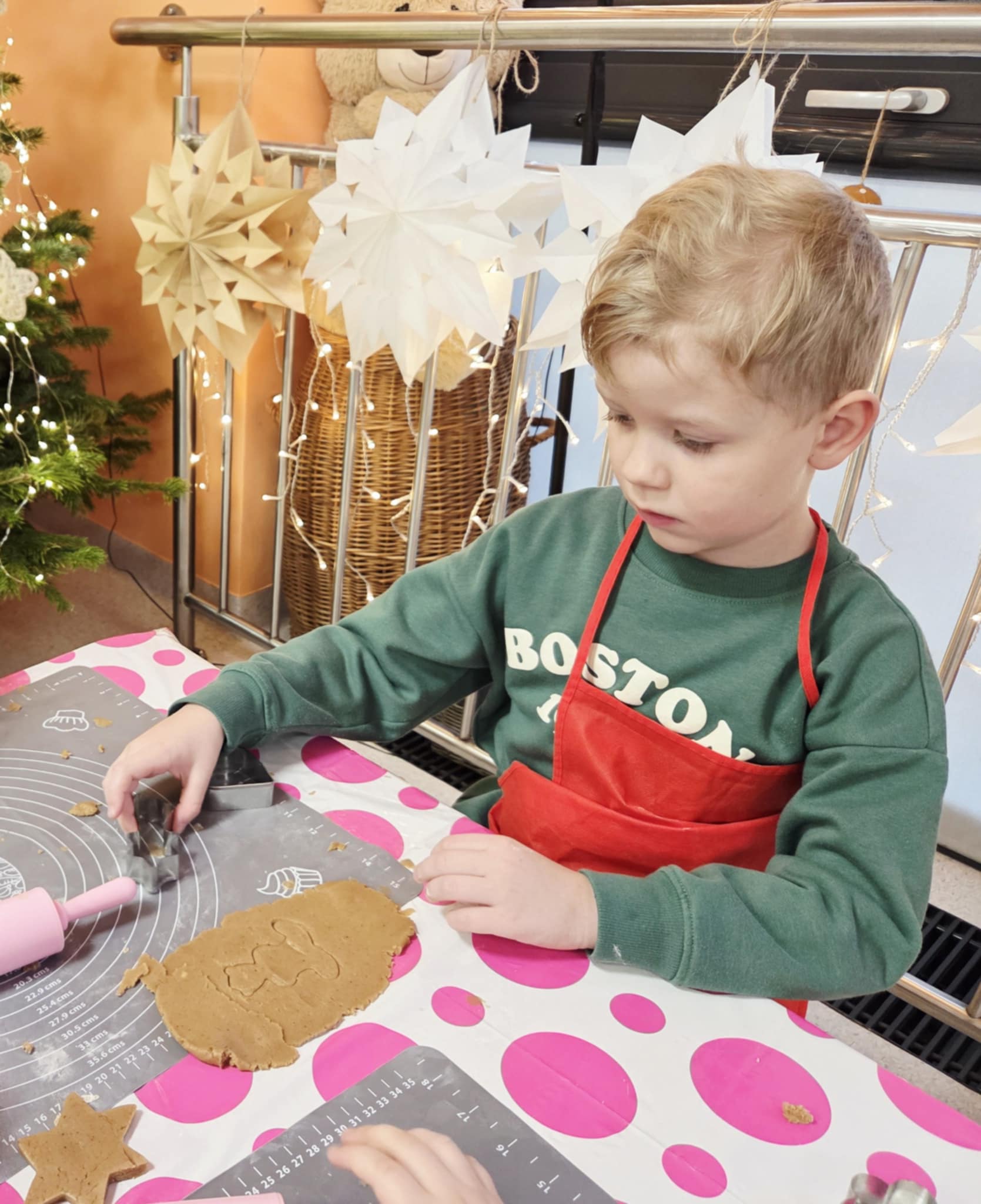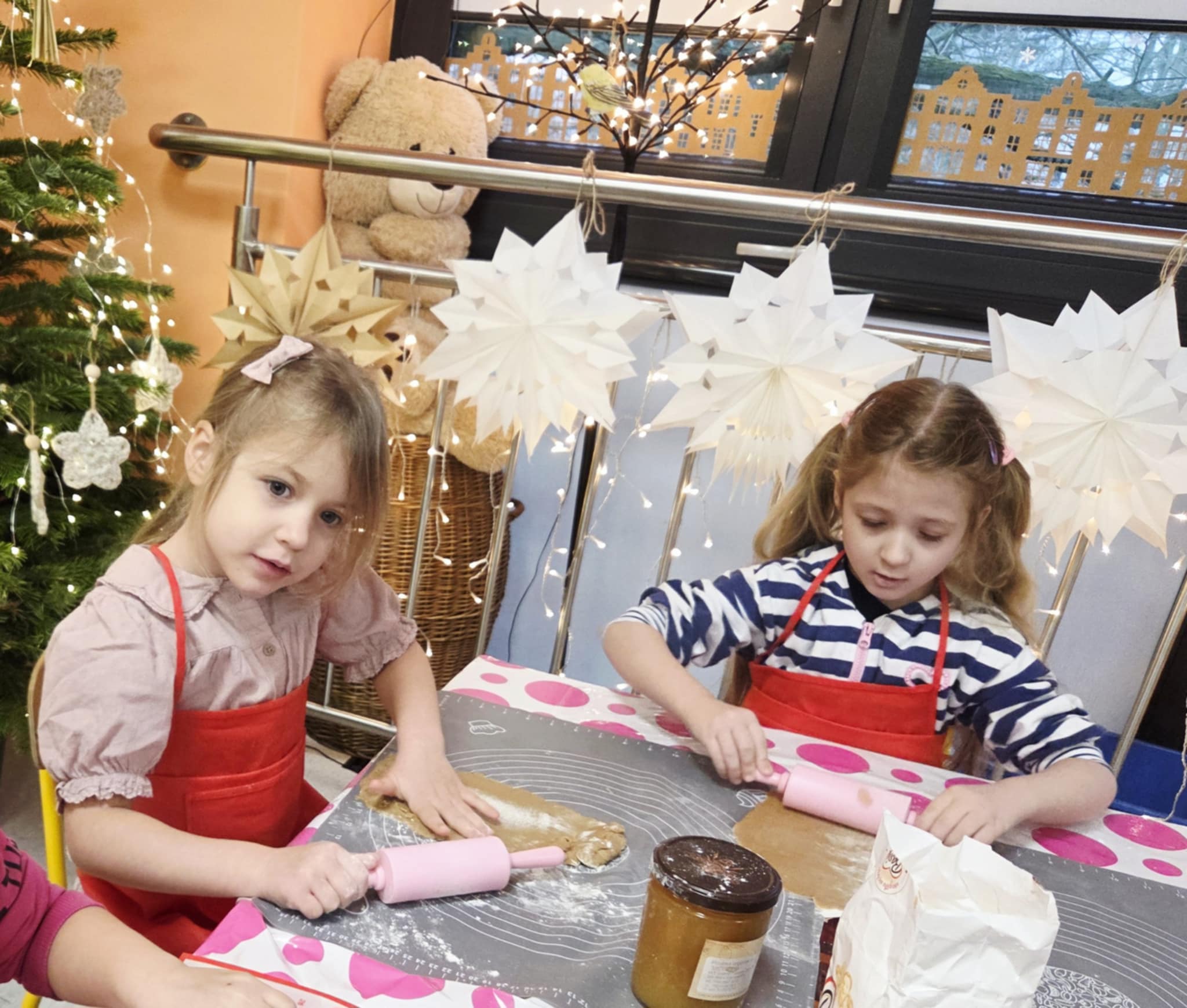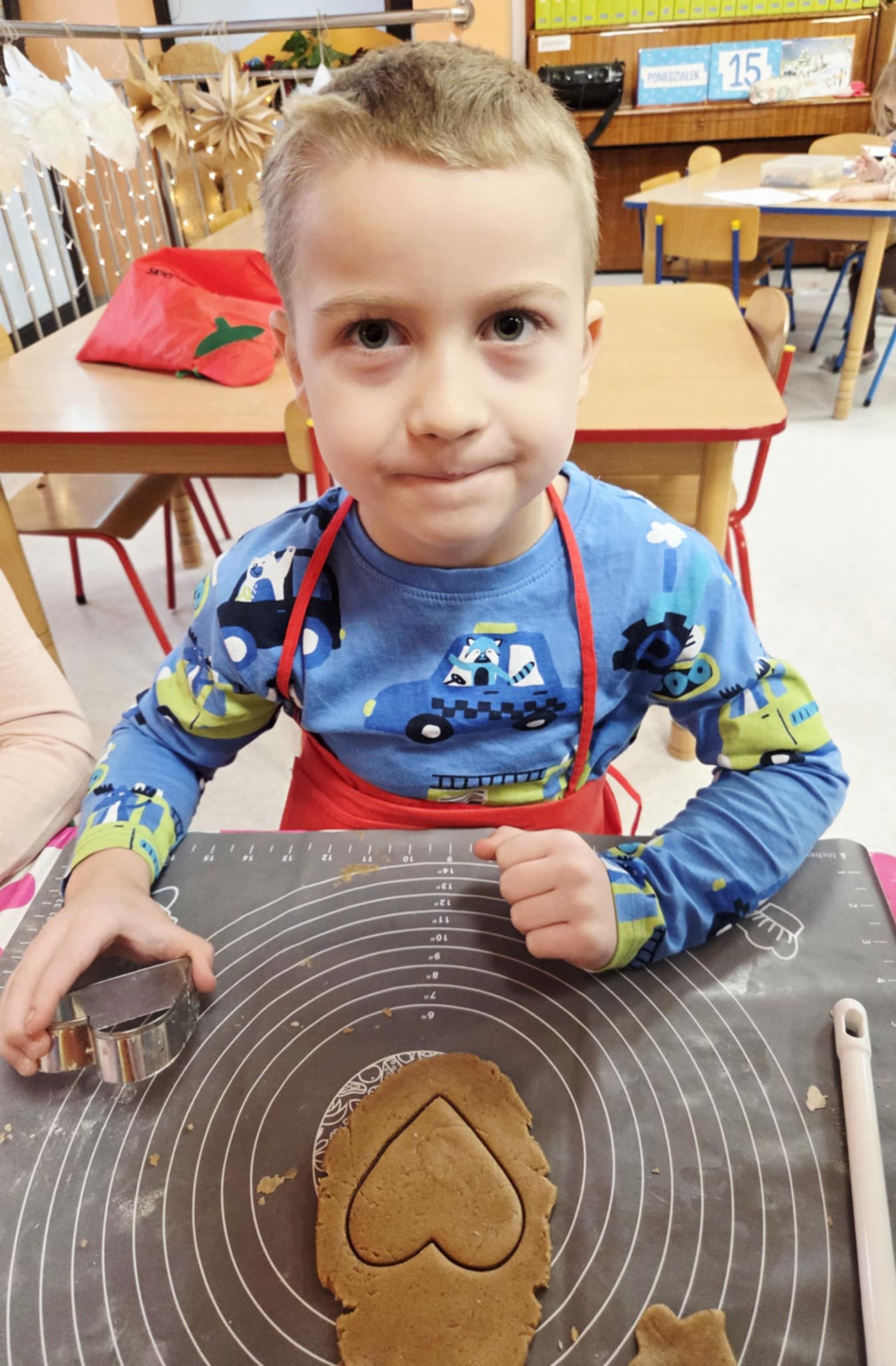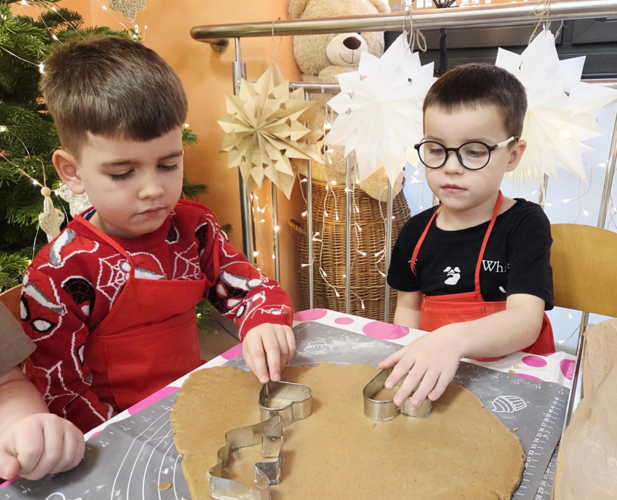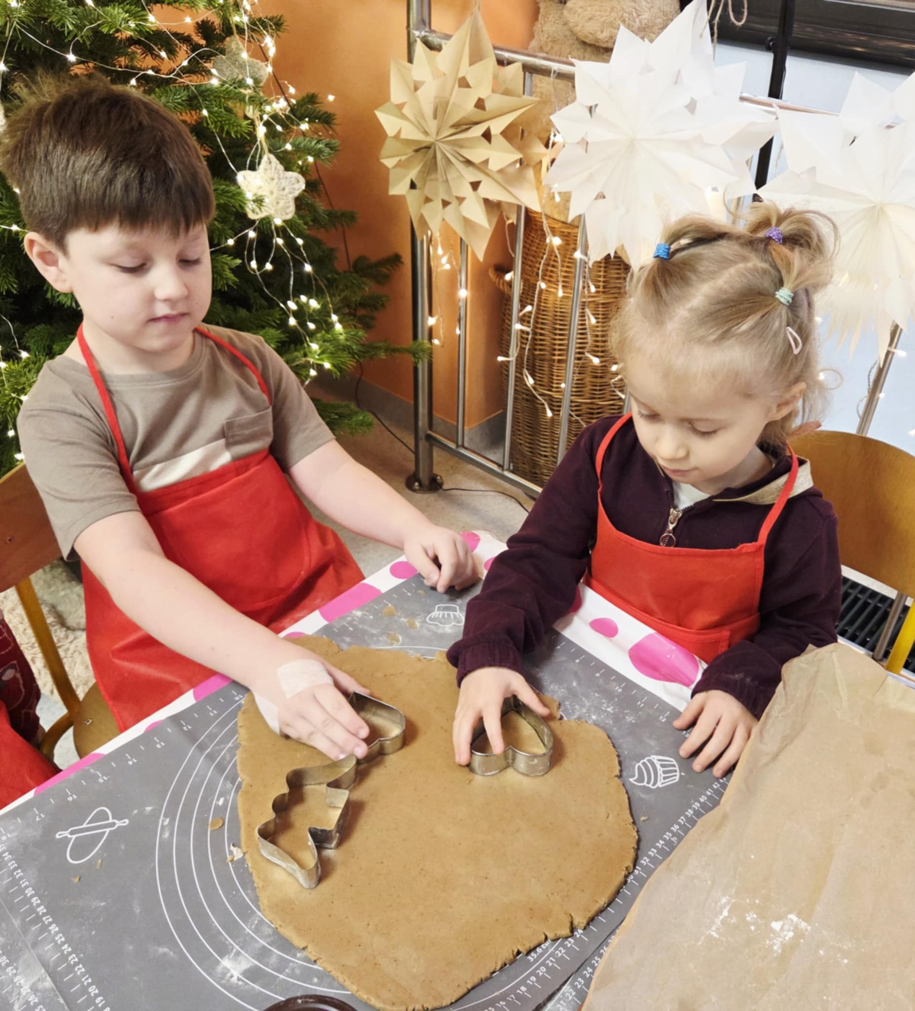W przedświątecznym czasie dzieci z grupy Miśki wzięły udział we wspólnym pieczeniu pierników. Przedszkolaki z wielkim zaangażowaniem wałkowały ciasto, a z niego wykrawały pierniki. Zajęciom towarzyszyła radosna atmosfera oraz zapach korzennych przypraw. Wspólne pieczenie było doskonałą okazją do rozwijania samodzielności, współpracy i wprowadzenia dzieci w świąteczny nastrój.
