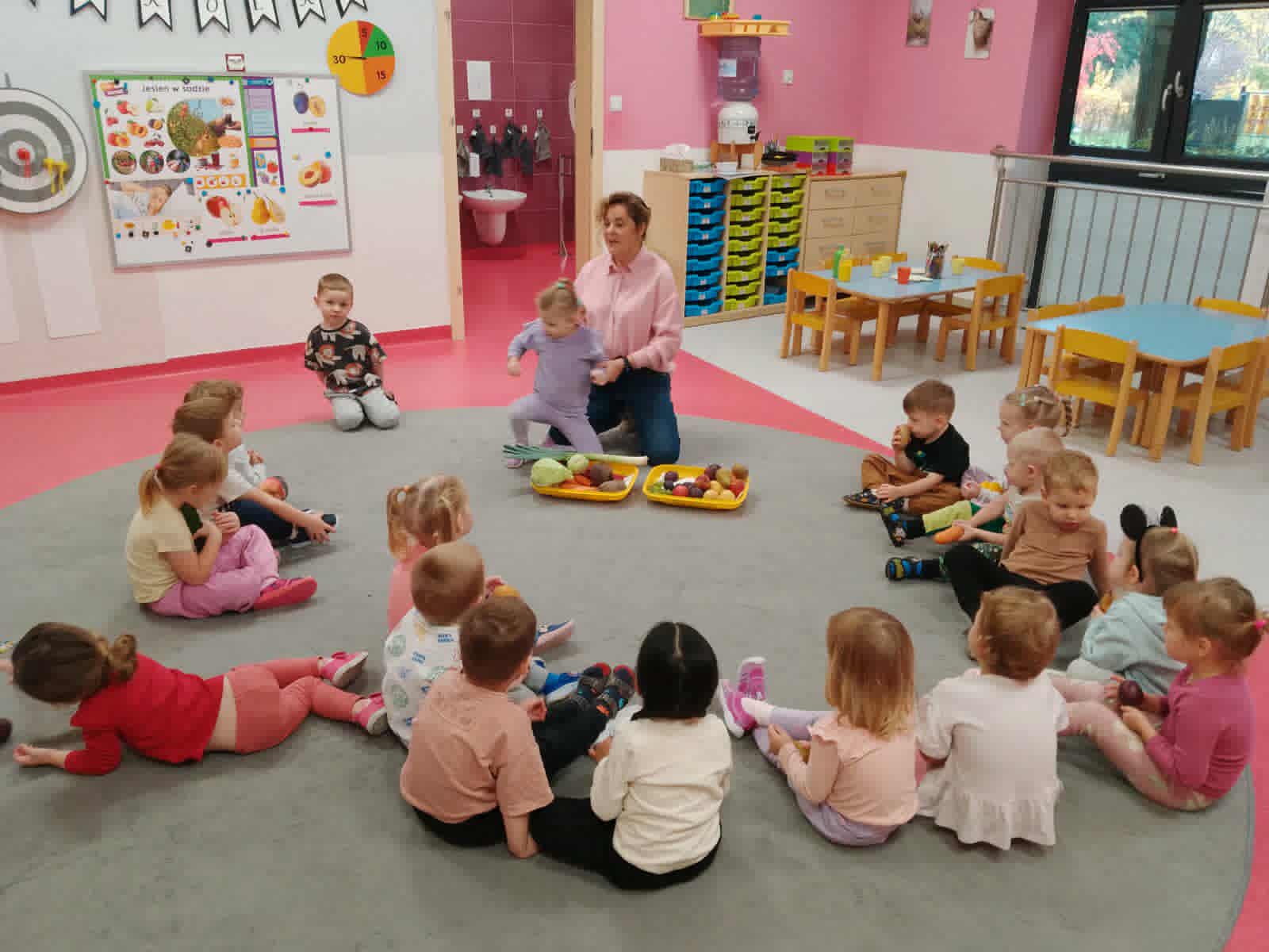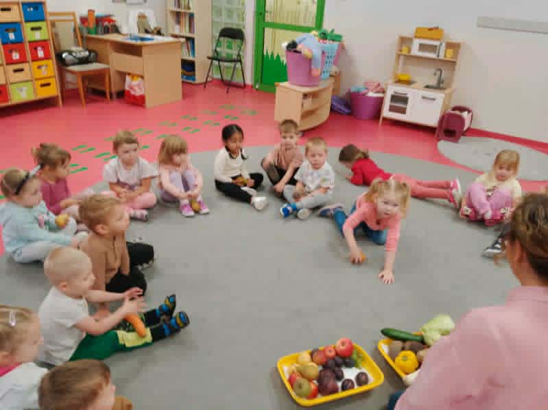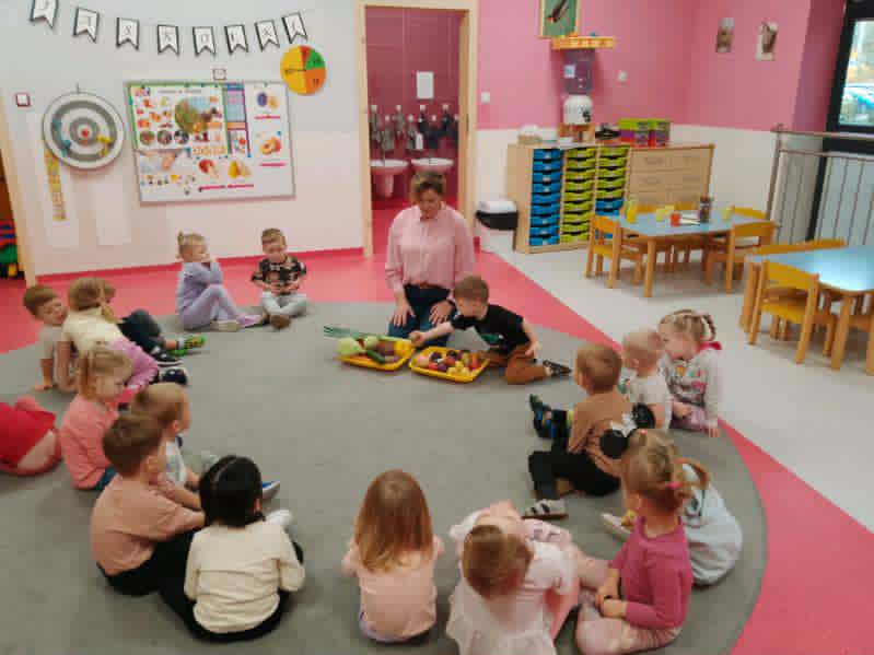 Jaskółki dziś rozmawiały o owocach i warzywach. Oglądały, wąchały i smakowały zastanawiając się, który owoc jest najsłodszy, a które warzywo najtwardsze? Oraz oczywiście najsmaczniejsze! Na pytanie skąd się biorą owoce i warzywa odpowiedź znalazły... w sklepie! Podczas wyjścia wszyscy byli bardzo grzeczni!