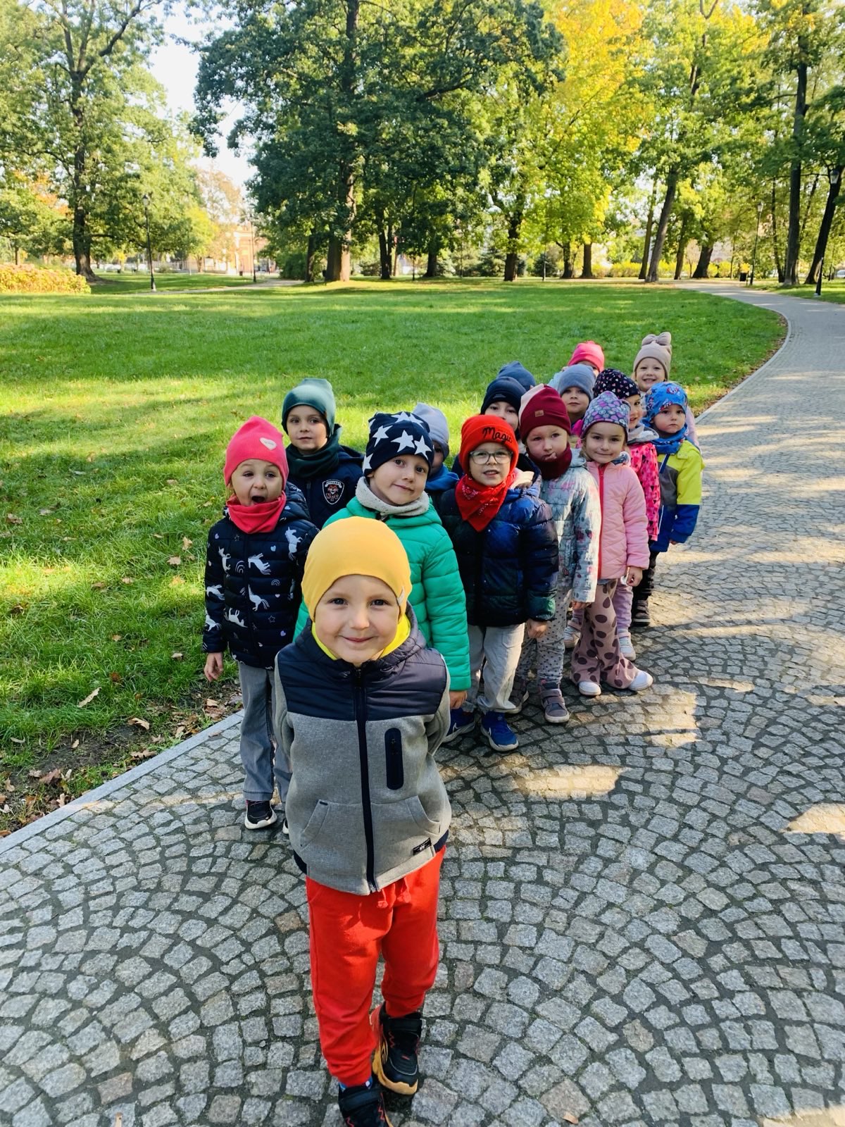 Grupa „Wilczki” postanowiła dzisiaj wykorzystać piękną, słoneczną pogodę i wybrała się na spacer do Parku Miejskiego. Dzieci z radością korzystały z ciepłych promieni jesiennego słońca, oddychając świeżym powietrzem i podziwiając uroki przyrody. Spacer był doskonałą okazją do obserwowania zmieniającej się przyrody, rozmów o kolorach liści oraz wspólnej zabawy na świeżym powietrzu. Taka aktywność to nie tylko miła odmiana od zajęć w sali, ale też świetna forma ruchu i integracji grupy.