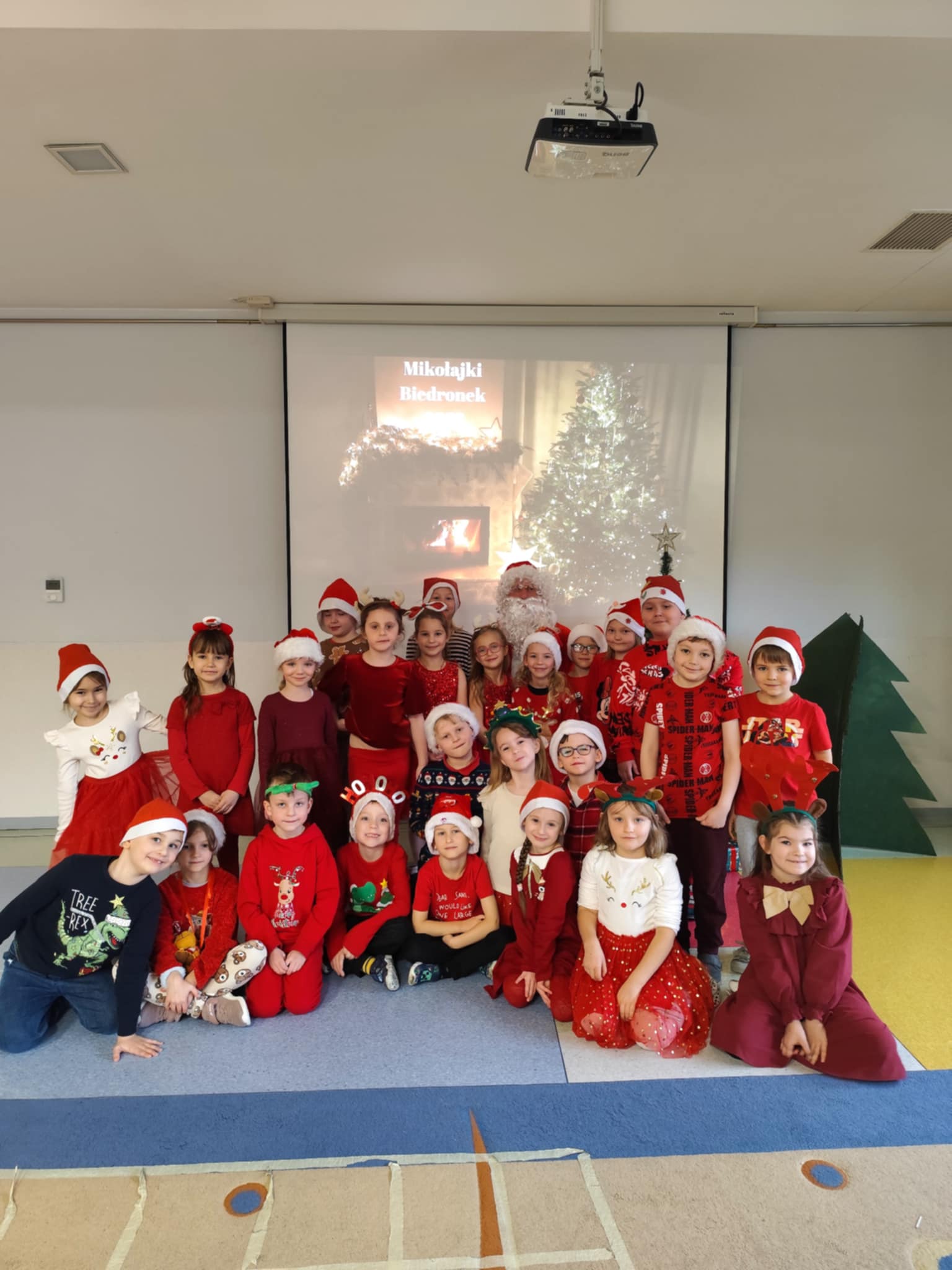 Nie zabrakło również wspólnych pamiątkowych zdjęć z Mikołajem oraz wesołych zabaw mikołajkowych i świątecznych, które umiliły ten wyjątkowy dzień. Wszystkie dzieci przyszły ubrane na czerwono, co dodatkowo podkreśliło magiczny, bożonarodzeniowy klimat spotkania.