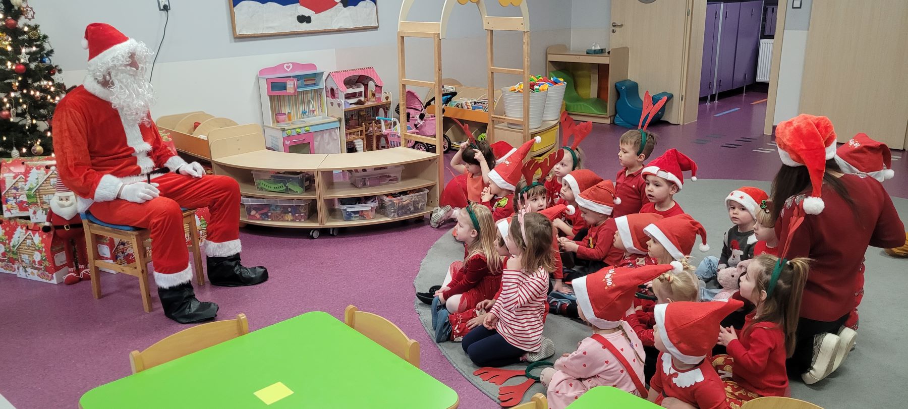 Pierwsze spotkanie z Mikołajem w przedszkolu Myszki mają już za sobą - dzieci były zaciekawione i trochę onieśmielone... Zapraszamy święty Mikołaju za rok!