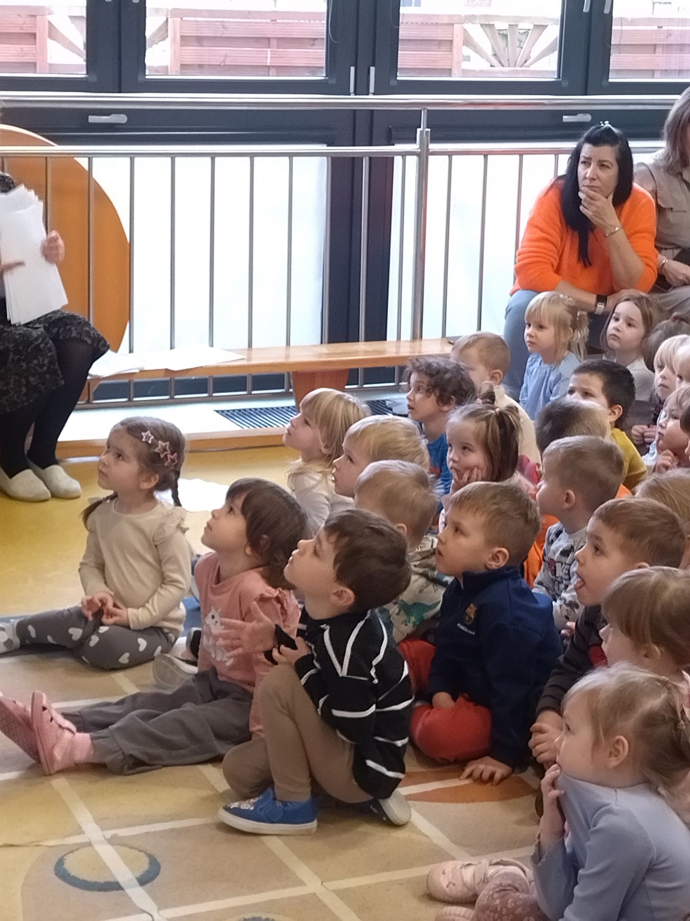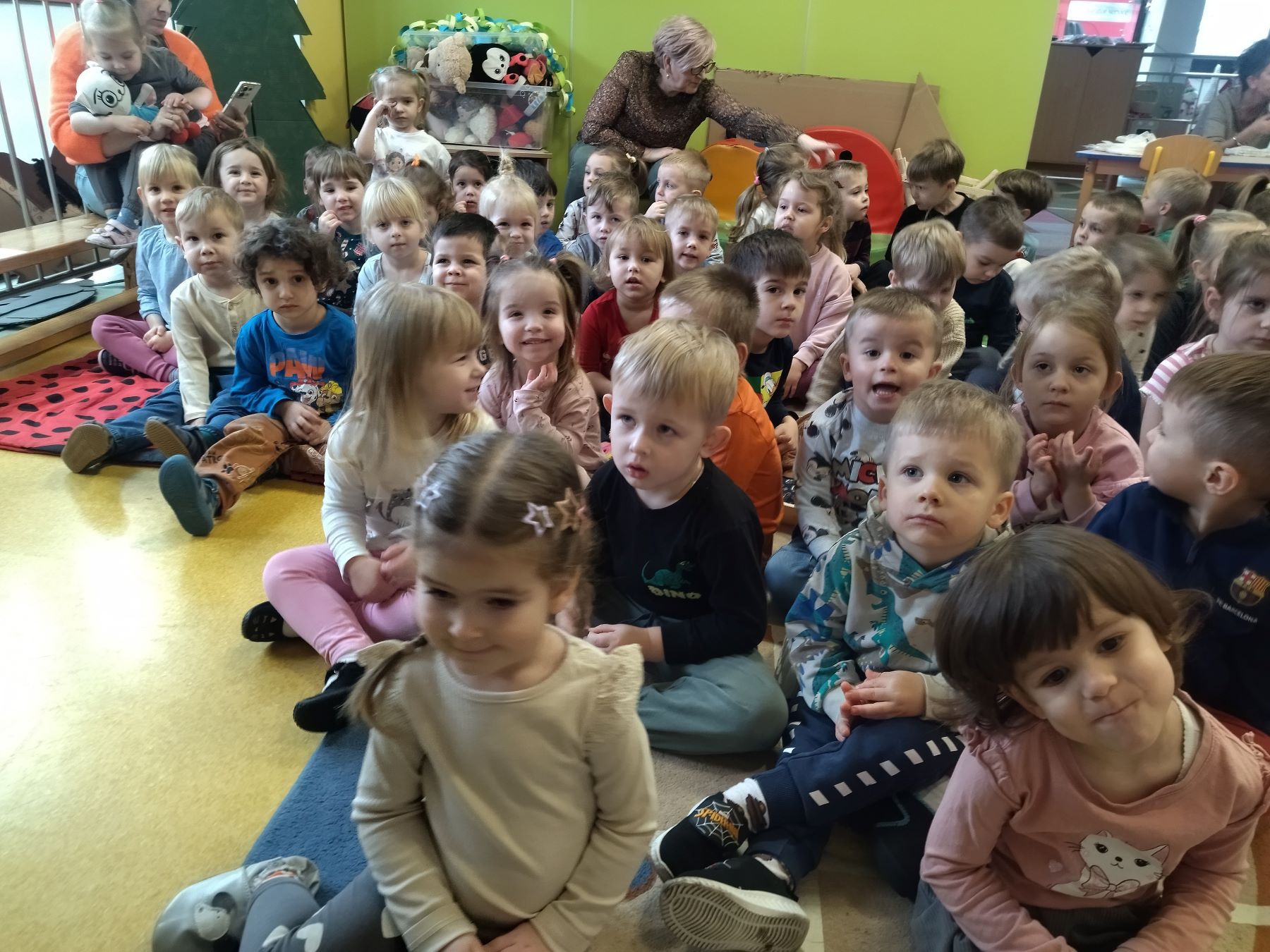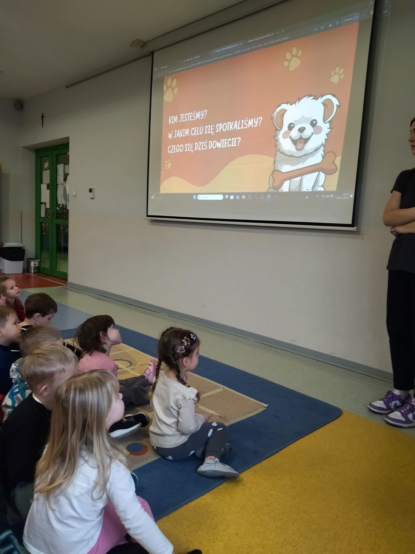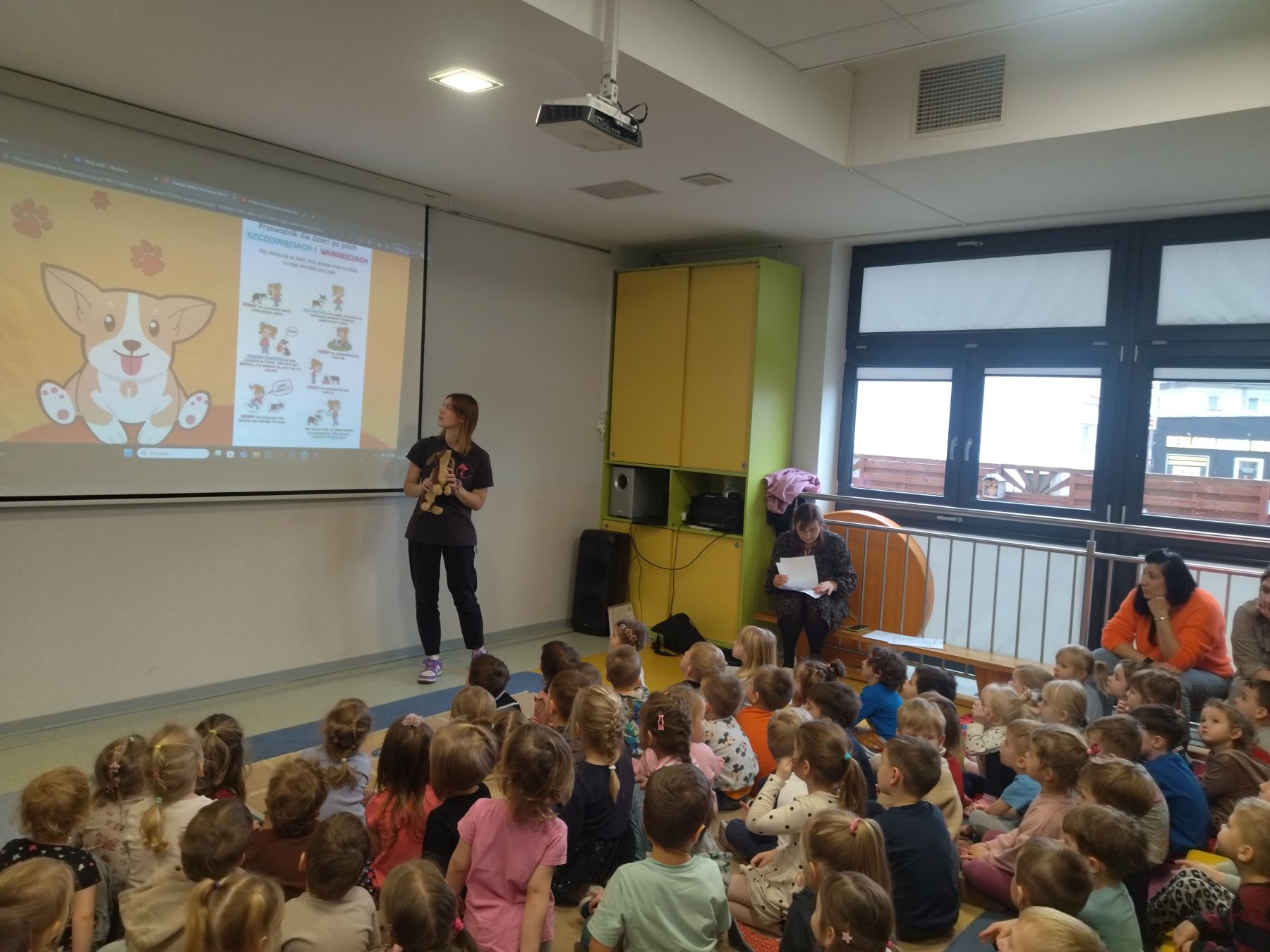Myszki, wraz z resztą dzieci z naszego przedszkola, wzięły udział w spotkaniu z przedstawicielką stowarzyszenia Zwierzęcy Głos. Dzieci z uwagą oglądały film i słuchały informacji o prawidłowych i bezpiecznych zasadach zabawy i opieki nad psiakami.