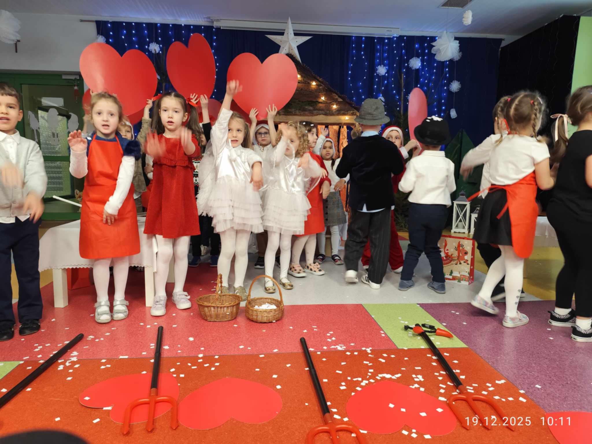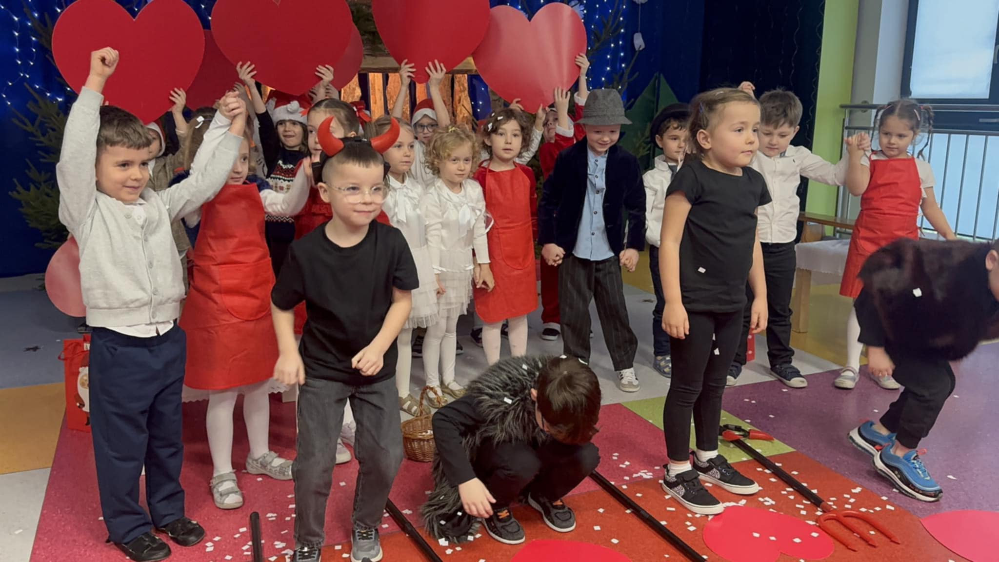 W dniu 19 grudnia z okazji Świąt Bożonarodzeniowych w naszej grupie odbyło wyjątkowe spotkanie, które wprowadziło wszystkich w świąteczną, pełną refleksji atmosferę. Dzieci zaprezentowały wzruszające przedstawienie, w którym poprzez słowa piosenek, wierszy i gestów skierowały do rodziców ważny przekaz - aby zatrzymać się na chwilę, zwolnić tempo codziennego życia i odnaleźć radość we wspólnie spędzonym czasie. Była to piękna lekcja uważności, bliskości i rodzinnego ciepła, która poruszyła serca zgromadzonych gości. Po części artystycznej odbyły się warsztaty bożonarodzeniowe, podczas których dzieci wraz z rodzicami wspólnie tworzyły świąteczne wieńce. Był to czas pełen rozmów, śmiechu i kreatywnej współpracy, a także doskonała okazja do budowania relacji i wzmacniania więzi rodzinnych. To wyjątkowe wydarzenie przypomniało nam wszystkim, że najpiękniejszym prezentem świątecznym jest wspólnie spędzony czas.
