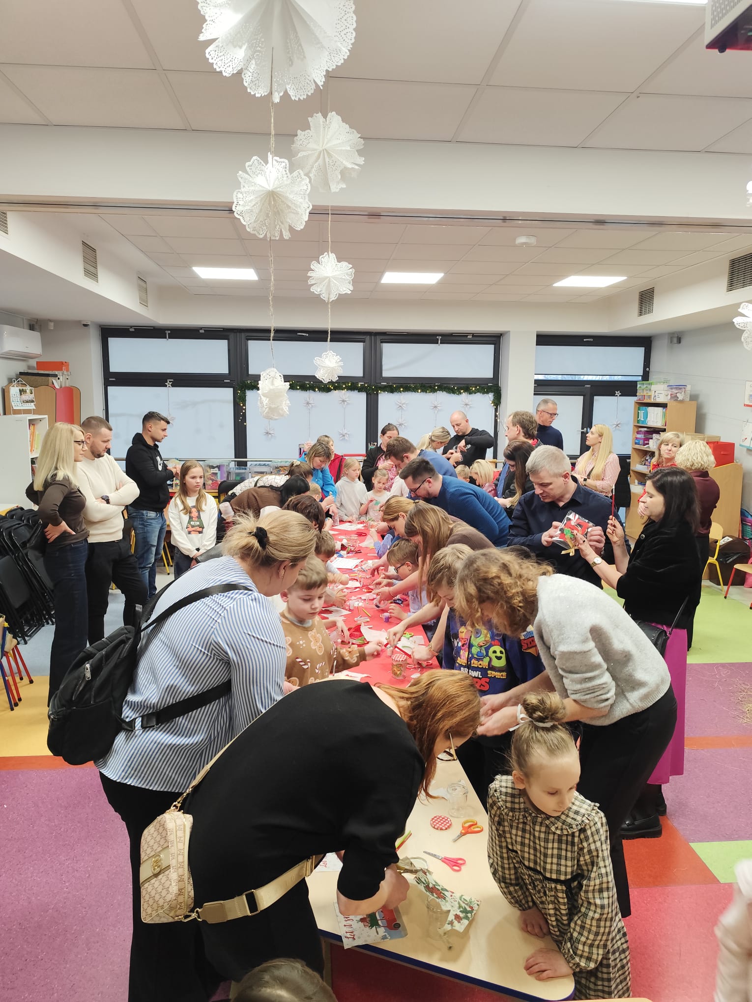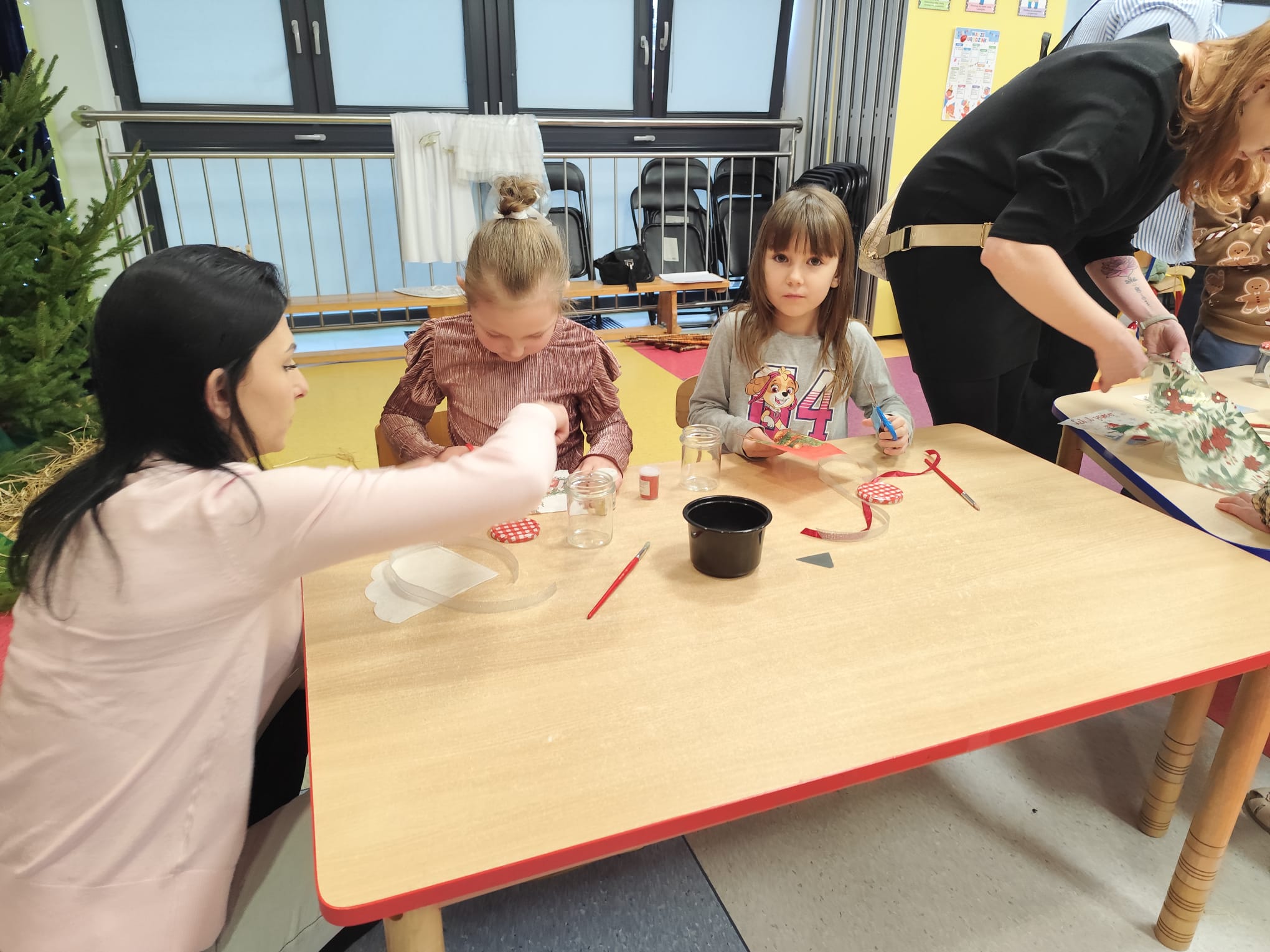 Po zakończonym przedstawieniu na wszystkich czekały świąteczne warsztaty plastyczne. Dzieci wspólnie z rodzicami tworzyły wyjątkowe słoiczki w stylu decoupage, które stały się piękną pamiątką tego wyjątkowego spotkania. Całość dopełnił słodki poczęstunek, sprzyjający rozmowom i wspólnemu spędzaniu czasu w ciepłej, rodzinnej atmosferze.