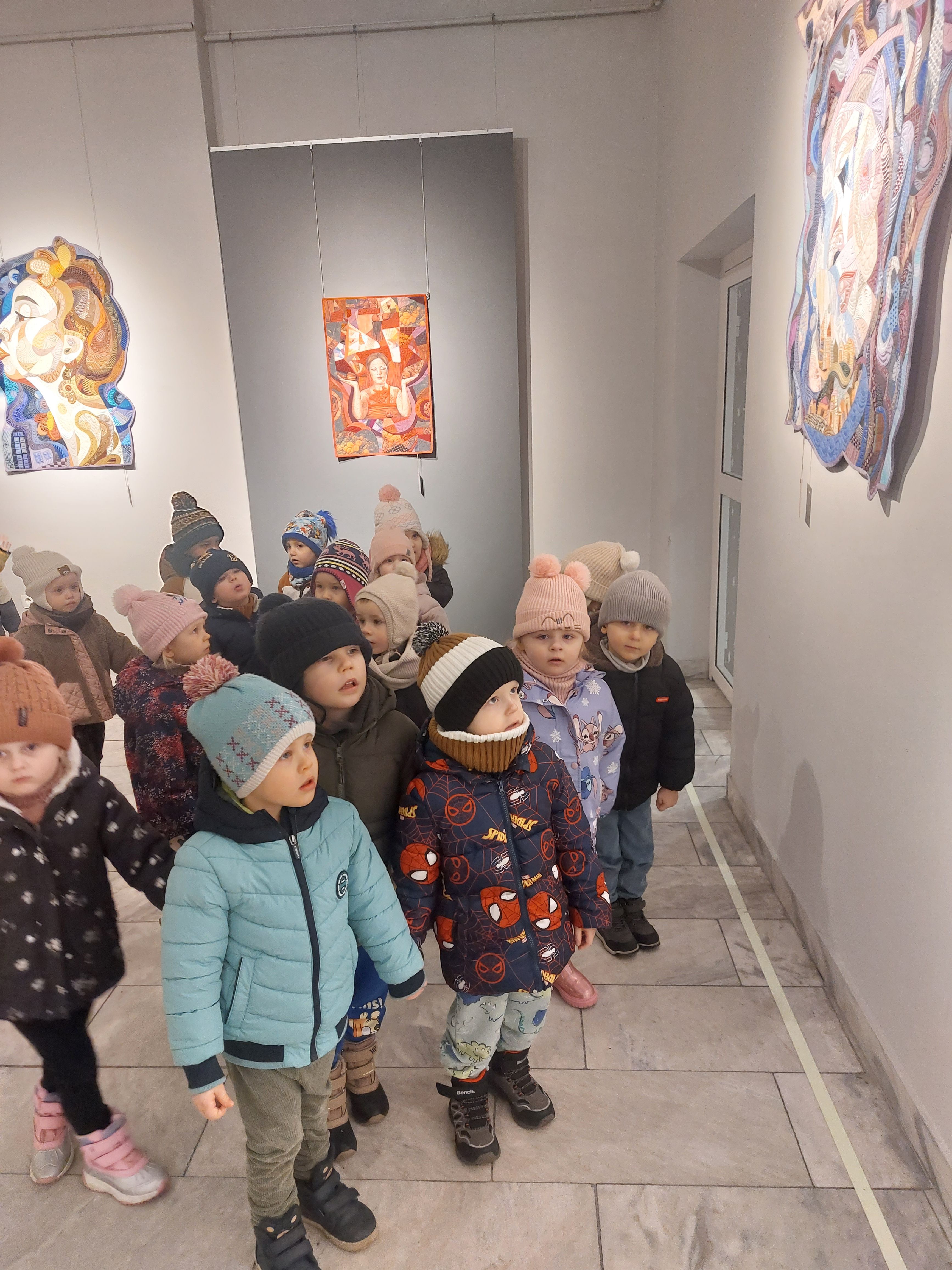 Dziś Niedźwiadki miały możliwość podziwiania niezwykłych obrazów wykonanych w stylu patchwork. Kolorowe prace tworzące imponujące dzieła sztuki wzbudziły ogromny zachwyt wśród wszystkich dzieci.