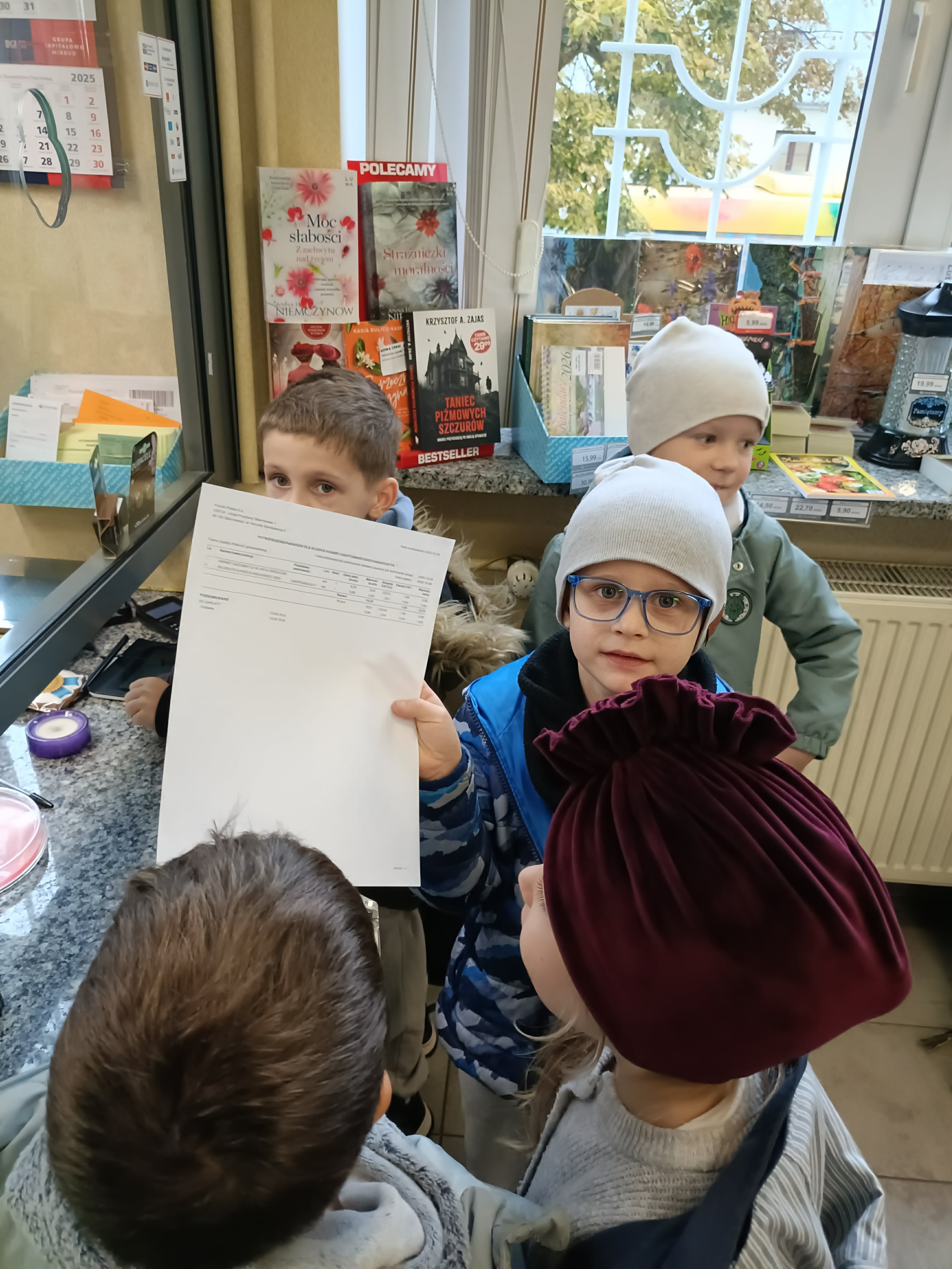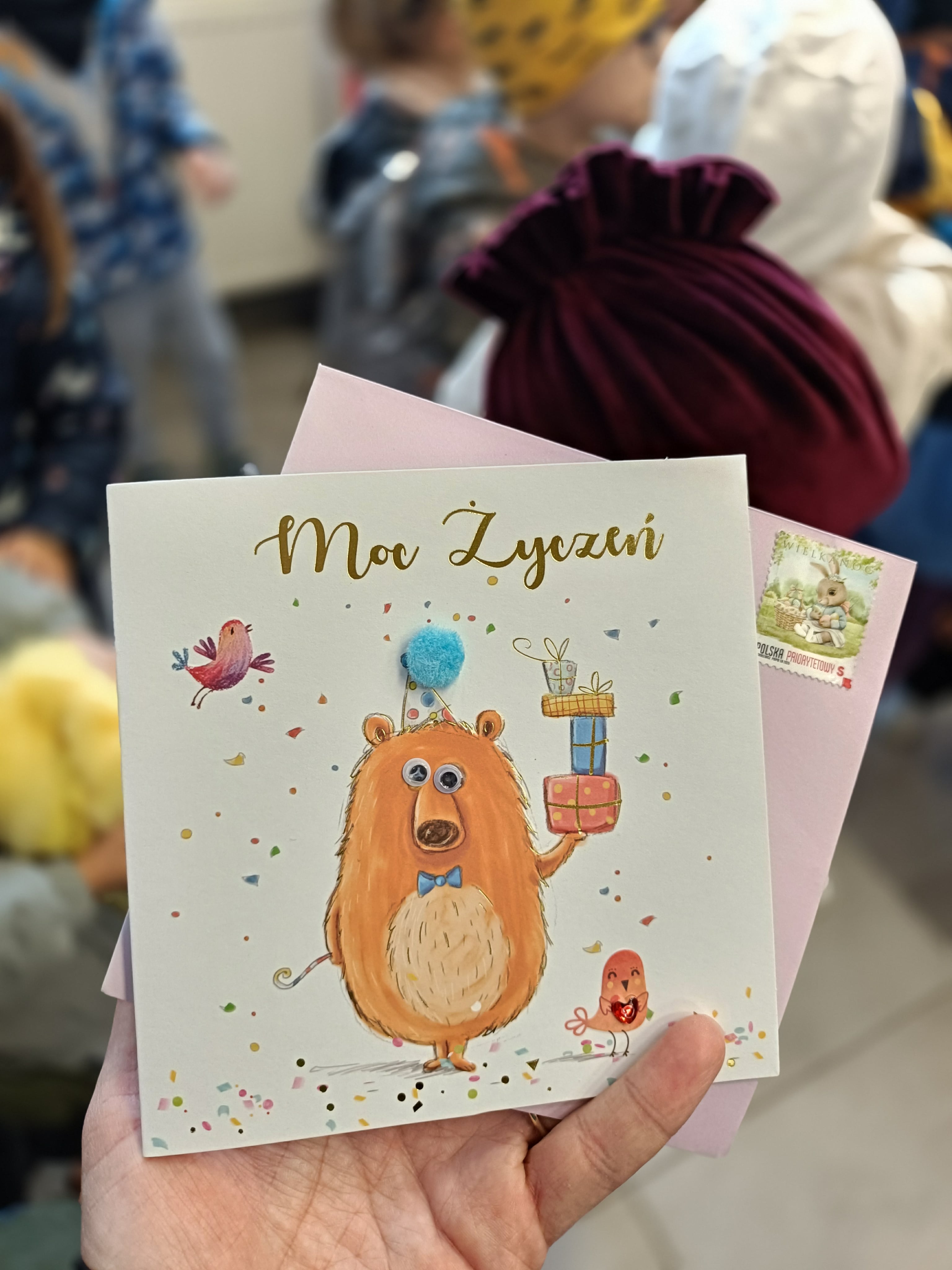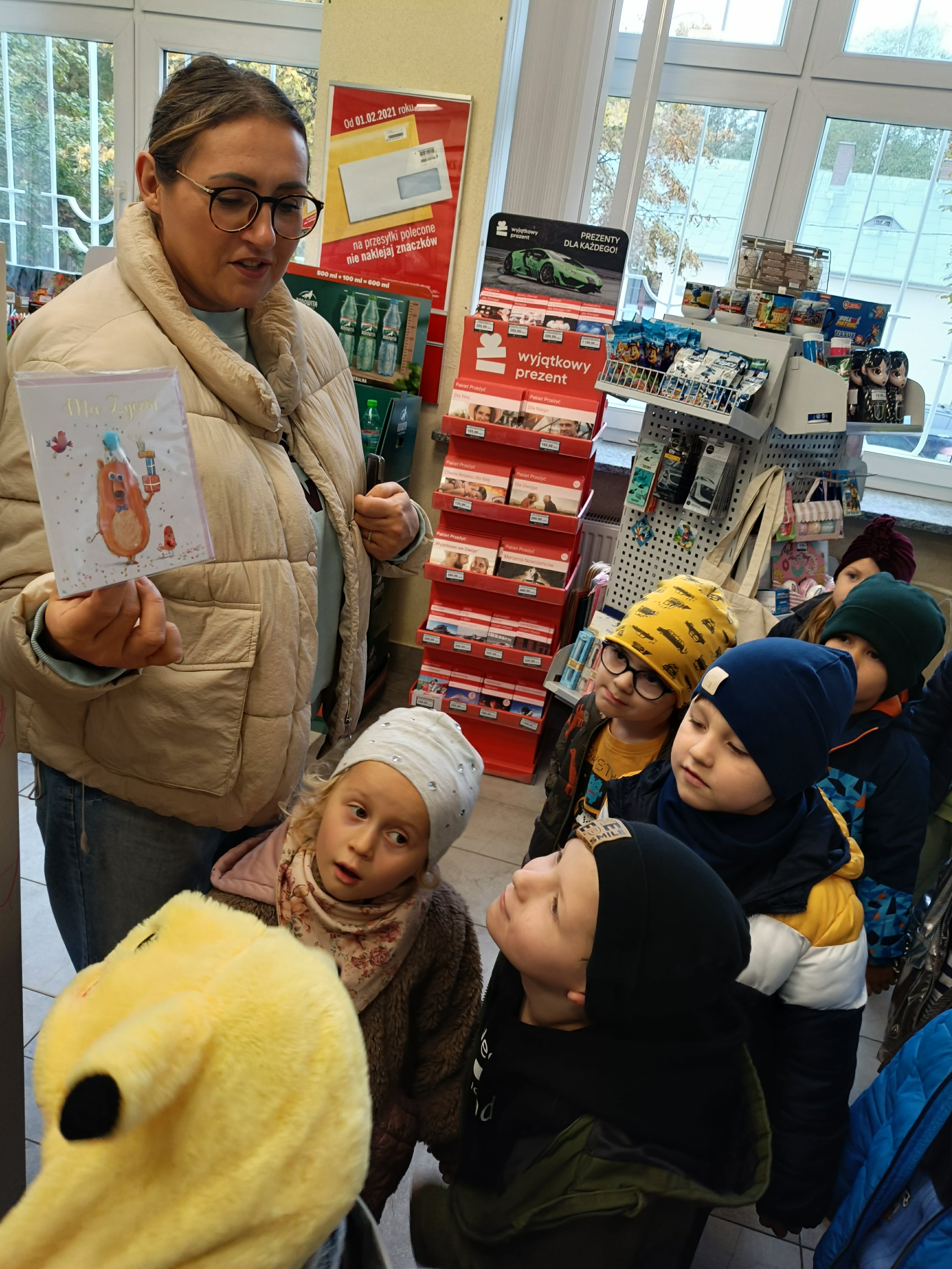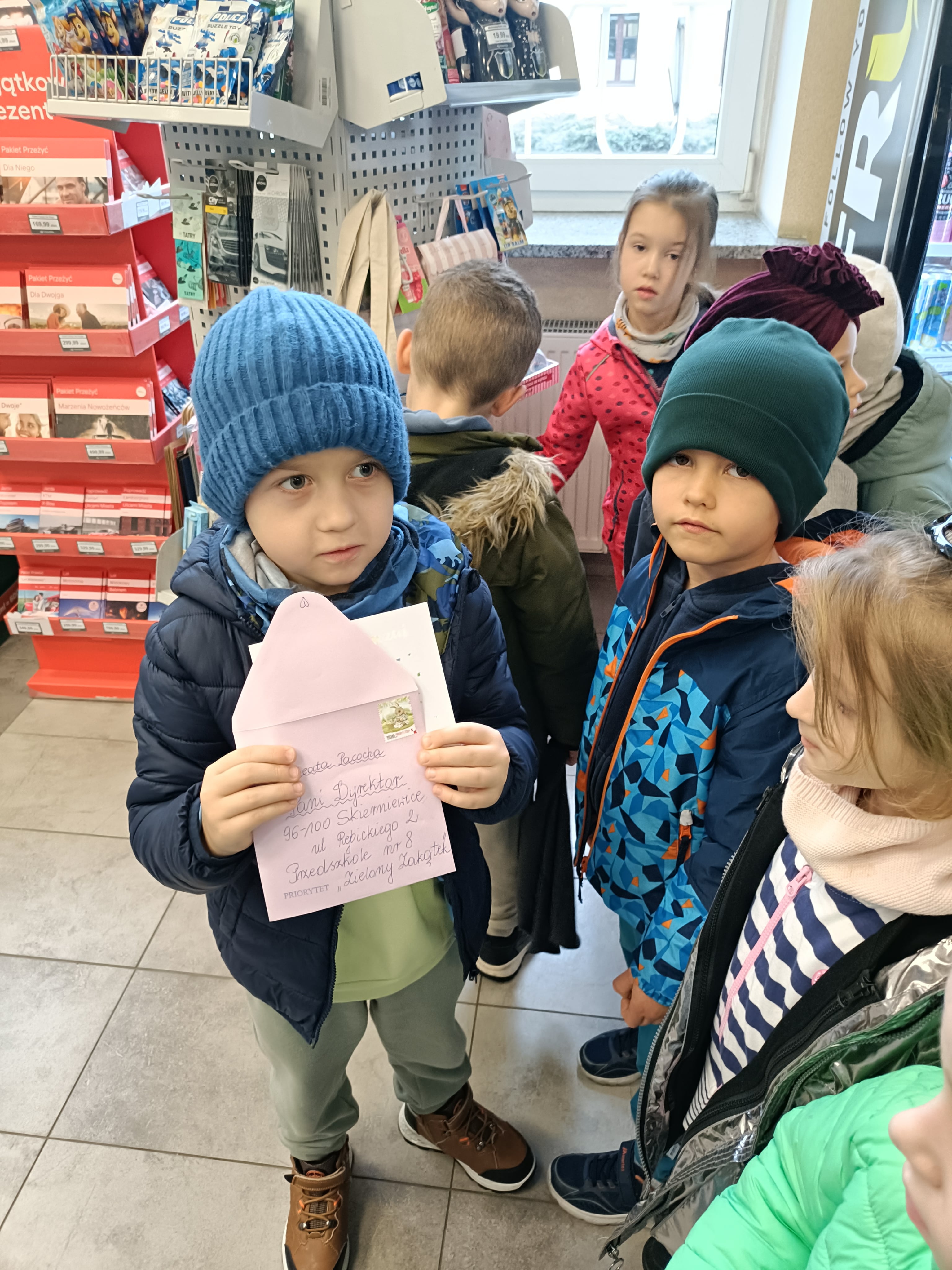Miśki wybrały się na krótką wycieczkę do Urzędu Pocztowego w Skierniewicach, aby poznać tajniki pracy listonoszy i pracowników poczty. Dowiedziały się, jak wygląda droga listu od nadawcy do adresata oraz jak ważną rolę pełni poczta w naszym codziennym życiu. Podczas wizyty dzieci samodzielnie zakupiły kartkę pocztową oraz znaczek, dokonały płatności i z dumą odebrały rachunek za swoje zakupy. Następnie z ogromną radością wysłały list. Wizyta na poczcie sprawiła Miśkom wiele radości i satysfakcji, a zdobyta wiedza z pewnością przyda się w przyszłości.