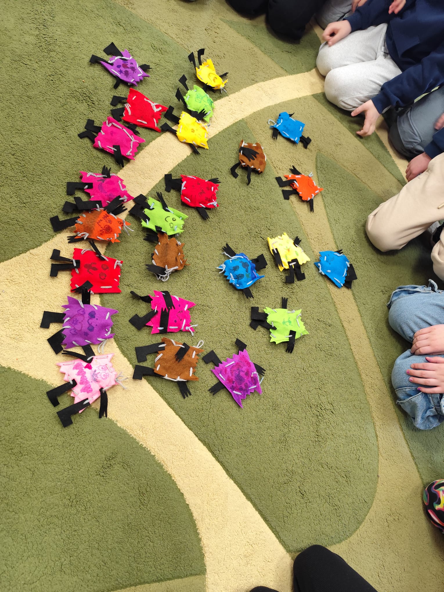 Na zakończenie zajęć przedszkolaki wykonały własne stworki – wyjątkowych strażników emocji. Każde dziecko samodzielnie zszywało swojego stworka przy użyciu plastikowych igieł, włóczki oraz filcowych elementów. Powstały niepowtarzalne, kolorowe postacie, które od teraz będą pomagać dzieciom w rozpoznawaniu i regulowaniu emocji.