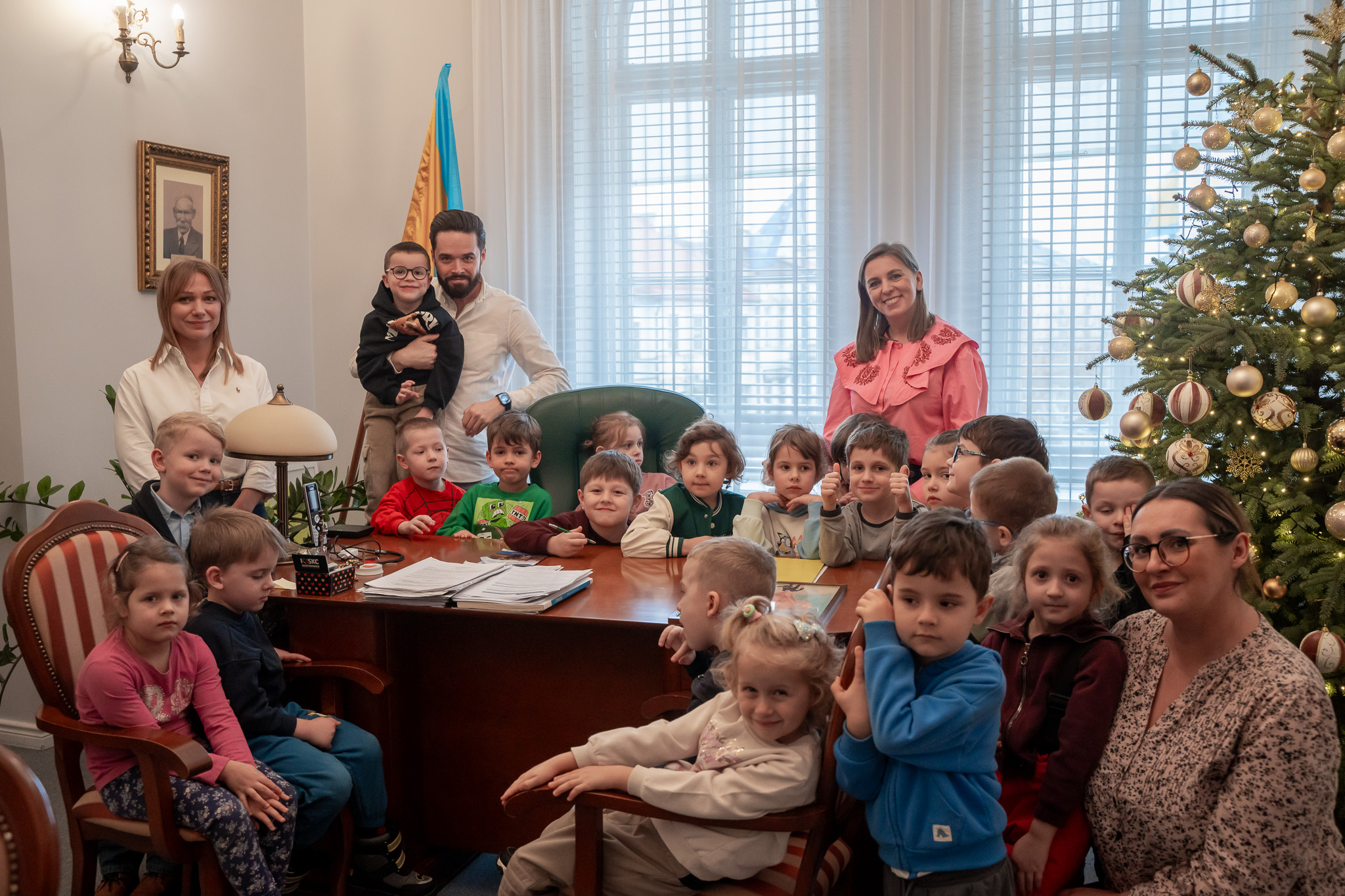 Nasze przedszkolaki odwiedziły Urząd Miasta Skierniewice, gdzie miały okazję zwiedzić budynek oraz zobaczyć gabinet Prezydenta Krzysztofa Jażdżyka. Dzieci z wielką radością zasiadły w fotelu Prezydenta i wysłuchały ciekawych opowieści o pracy w urzędzie. Na zakończenie przedszkolaki wręczyły Panu Prezydentowi własnoręcznie przygotowany stroik świąteczny oraz złożyły życzenia z okazji nadchodzących Świąt Bożego Narodzenia. To był wyjątkowy i pełen wrażeń dzień! Serdecznie dziękujemy Panu Prezydentowi Krzysztofowi Jażdżykowi za ciepłe przyjęcie, a wszystkim pracownikom Urzędu Miasta za życzliwość i oprowadzenie naszych przedszkolaków po zakamarkach urzędu. Dzięki Państwu ta wizyta była niezapomnianym przeżyciem.