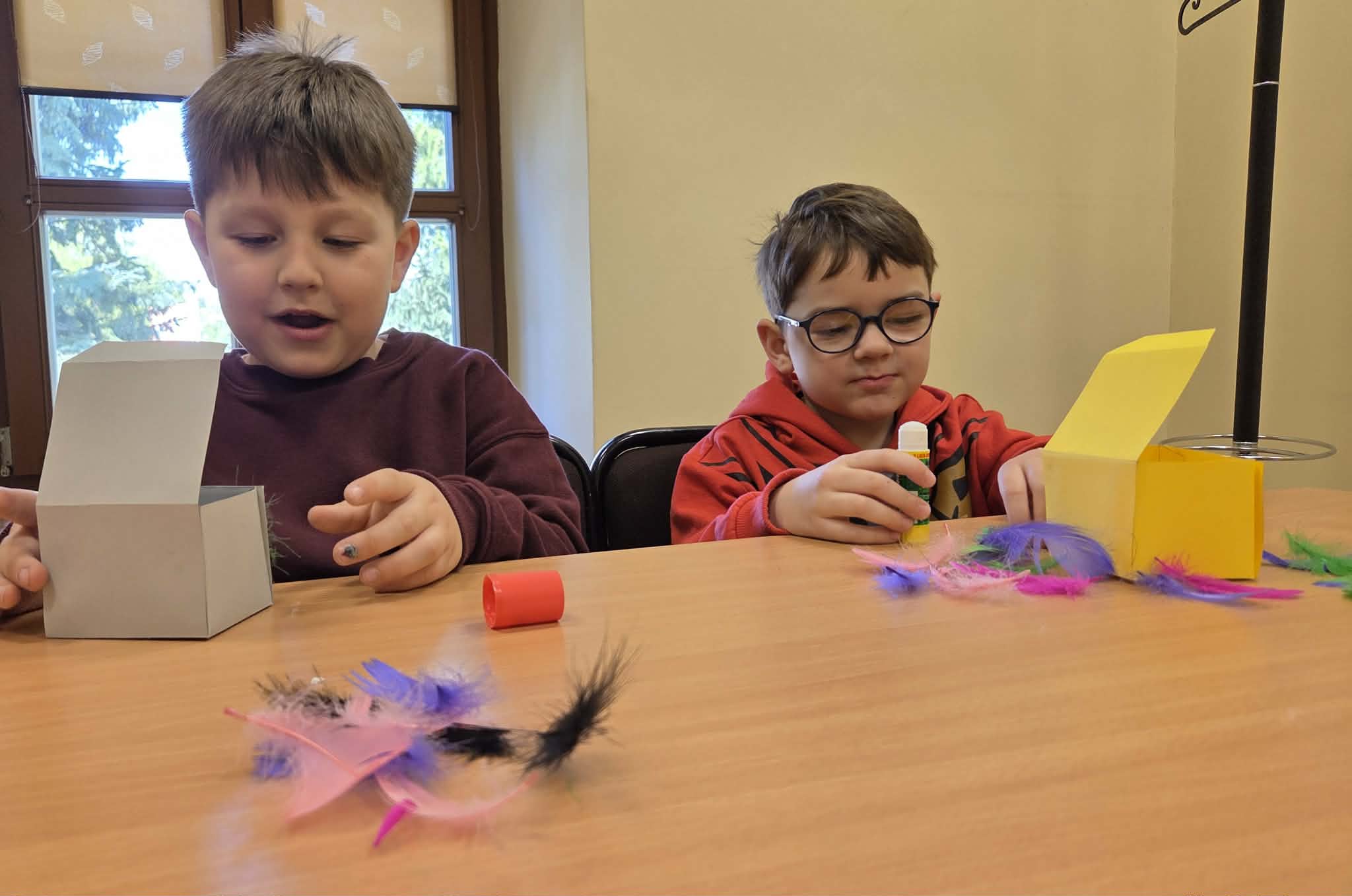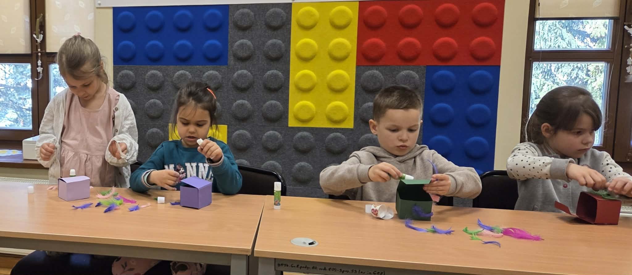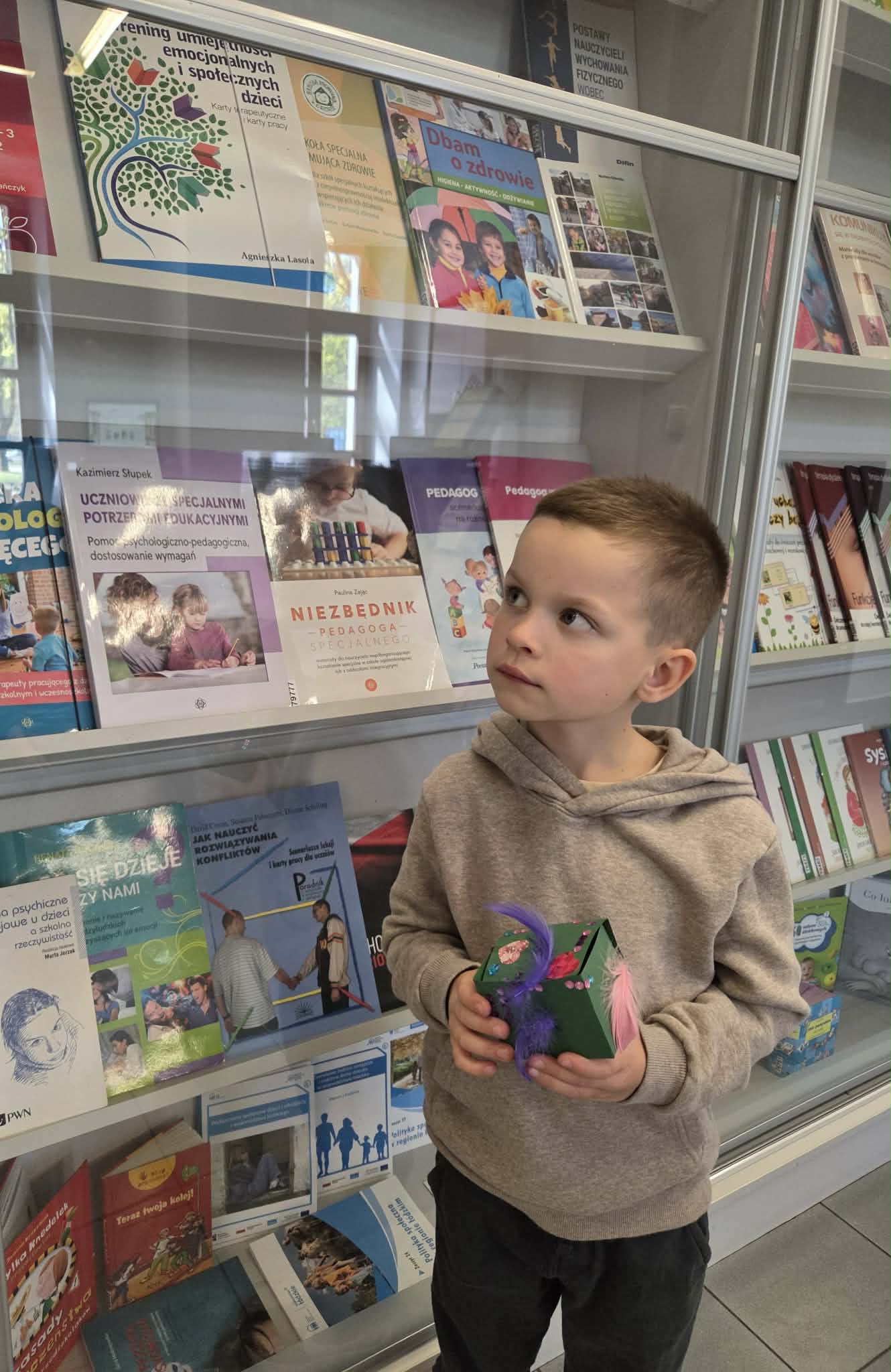 Z okazji Międzynarodowego Dnia Książki, grupa Miśki odwiedziła Bibliotekę Pedagogiczną w Skierniewicach. Dzieci zwiedziły bibliotekę, poznały jej zakamarki oraz zasady jej funkcjonowania. Pani bibliotekarka zaprezentowała ciekawe książki, zachęcając do ich wypożyczania i wspólnego czytania z rodzicami. Przedszkolaki z uwagą wysłuchały opowiadania w formie teatrzyku kamishibai "Franek, który już nie narzeka". Brały udział w warsztatach robienia zakładek do książek oraz wykonały pudełka dobrych słów, inspirowane wysłuchaną historią. Wizyta była radosna i pełna inspirujących doświadczeń.