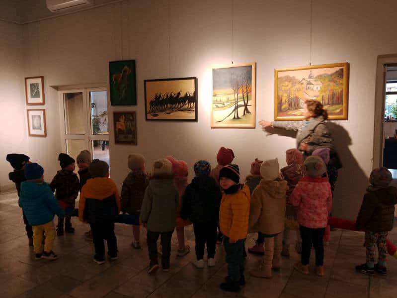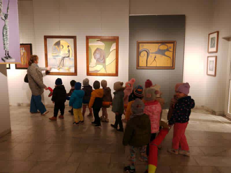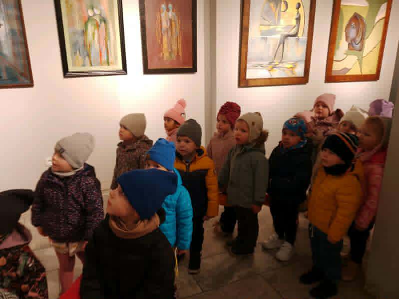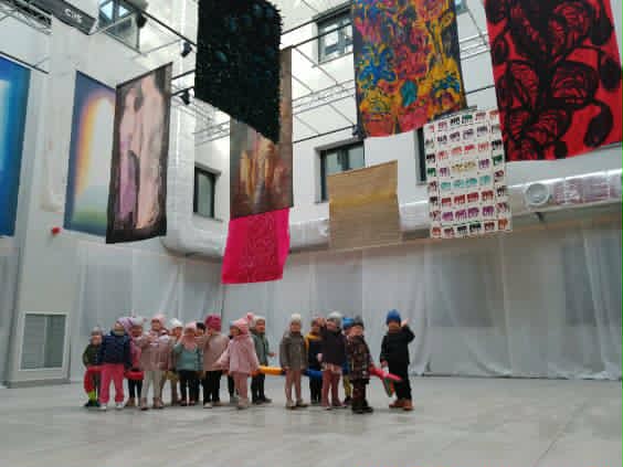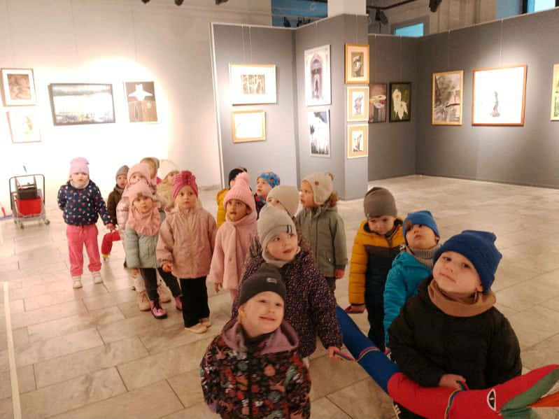 To dopiero październik a Jaskółki już wędrują po mieście. Dzisiaj po raz pierwszy odwiedziły wystawy w skierniewickim Centrum Kultury i Sztuki. Oglądały obrazy oraz niezwykłe kolorowe tkaniny, które zrobiły na dzieciach duże wrażenie. Wszyscy mocno trzymali się węża i grzecznie maszerowali unosząc głowy w górę. Galerię CKIS odwiedzimy zapewne jeszcze nie raz.