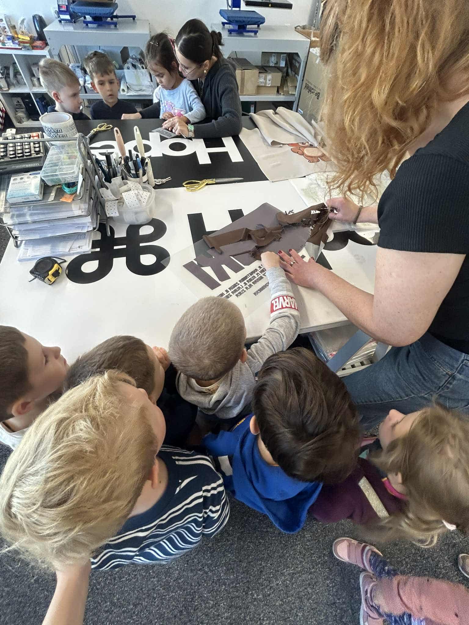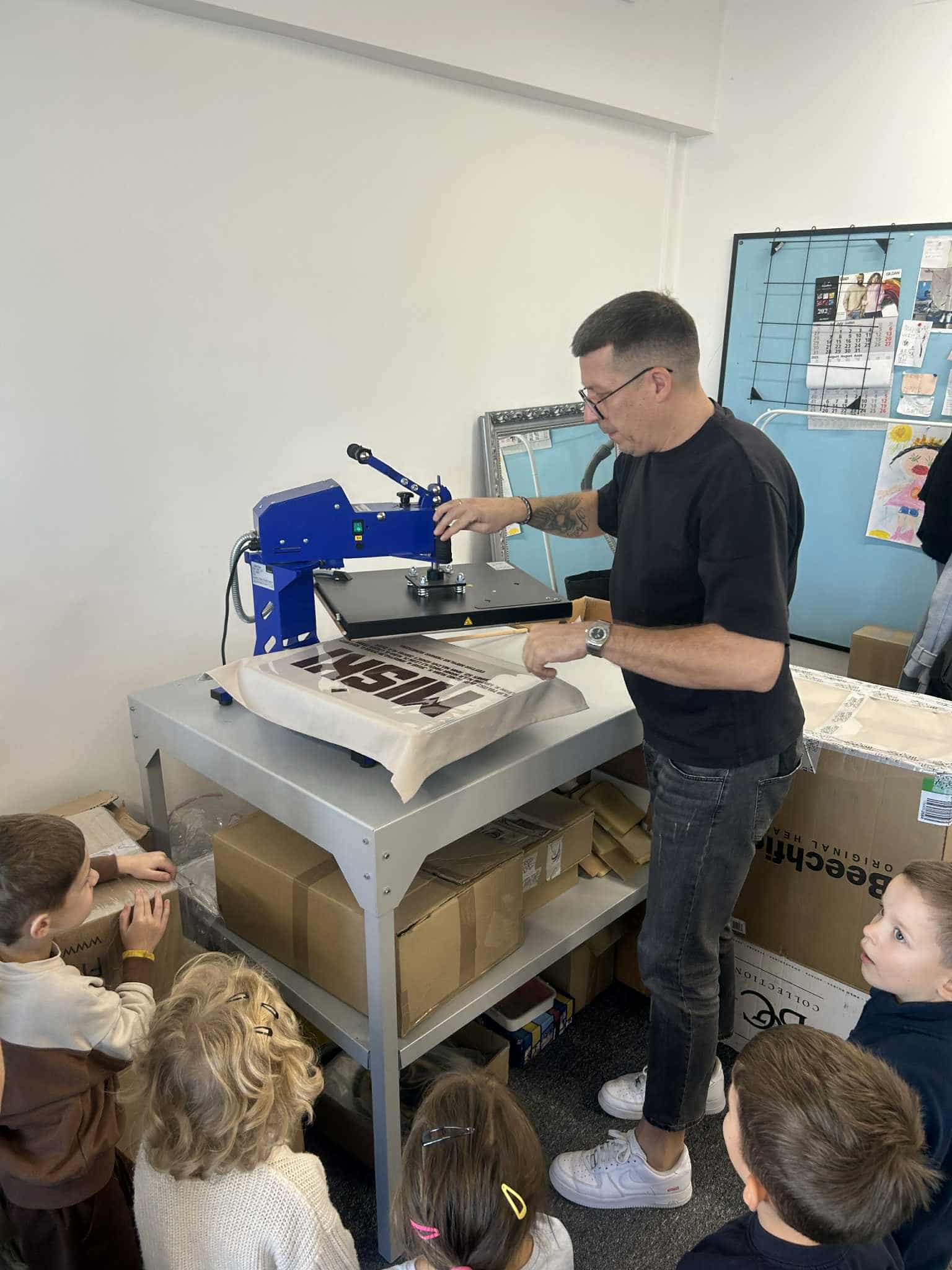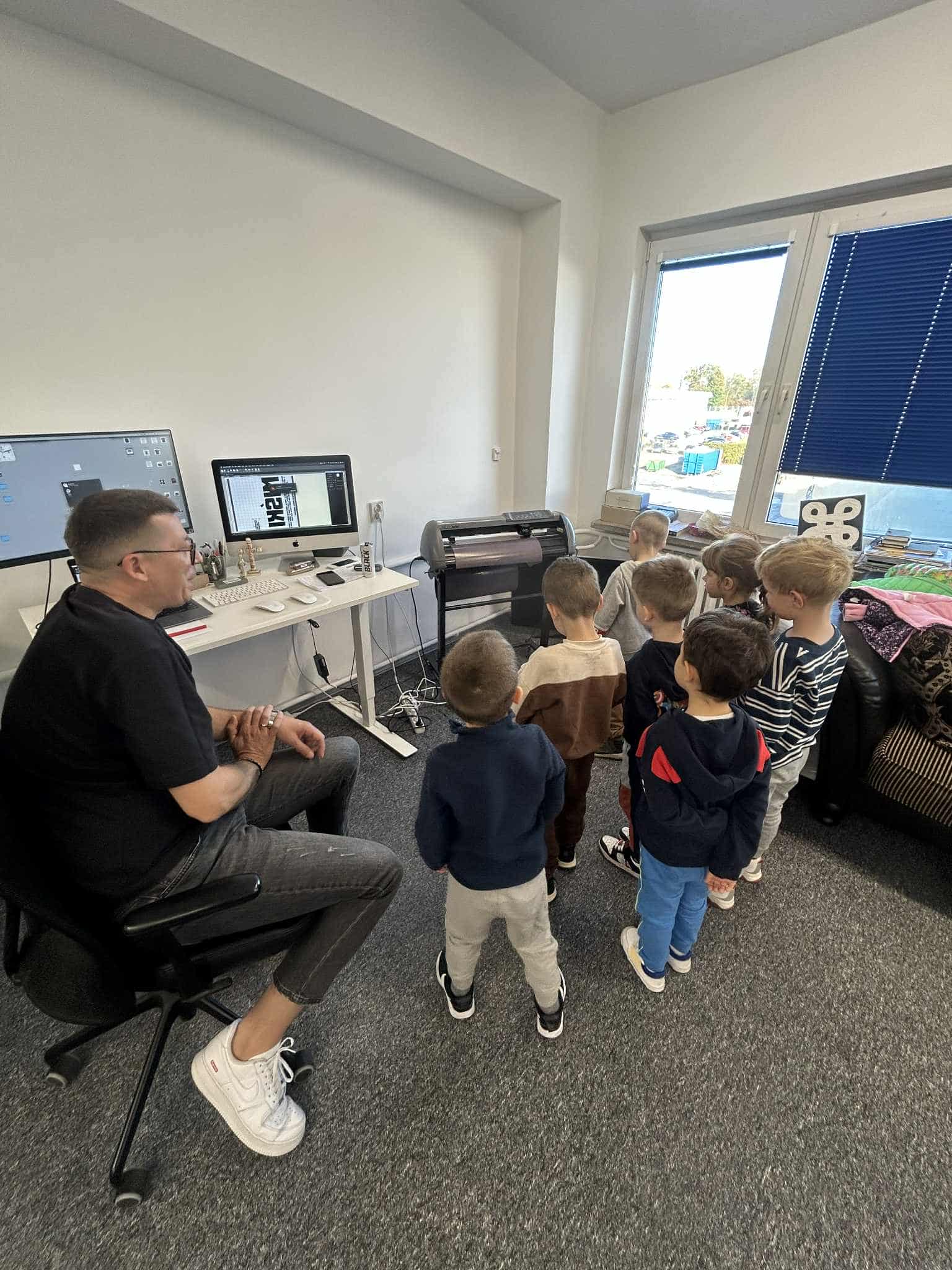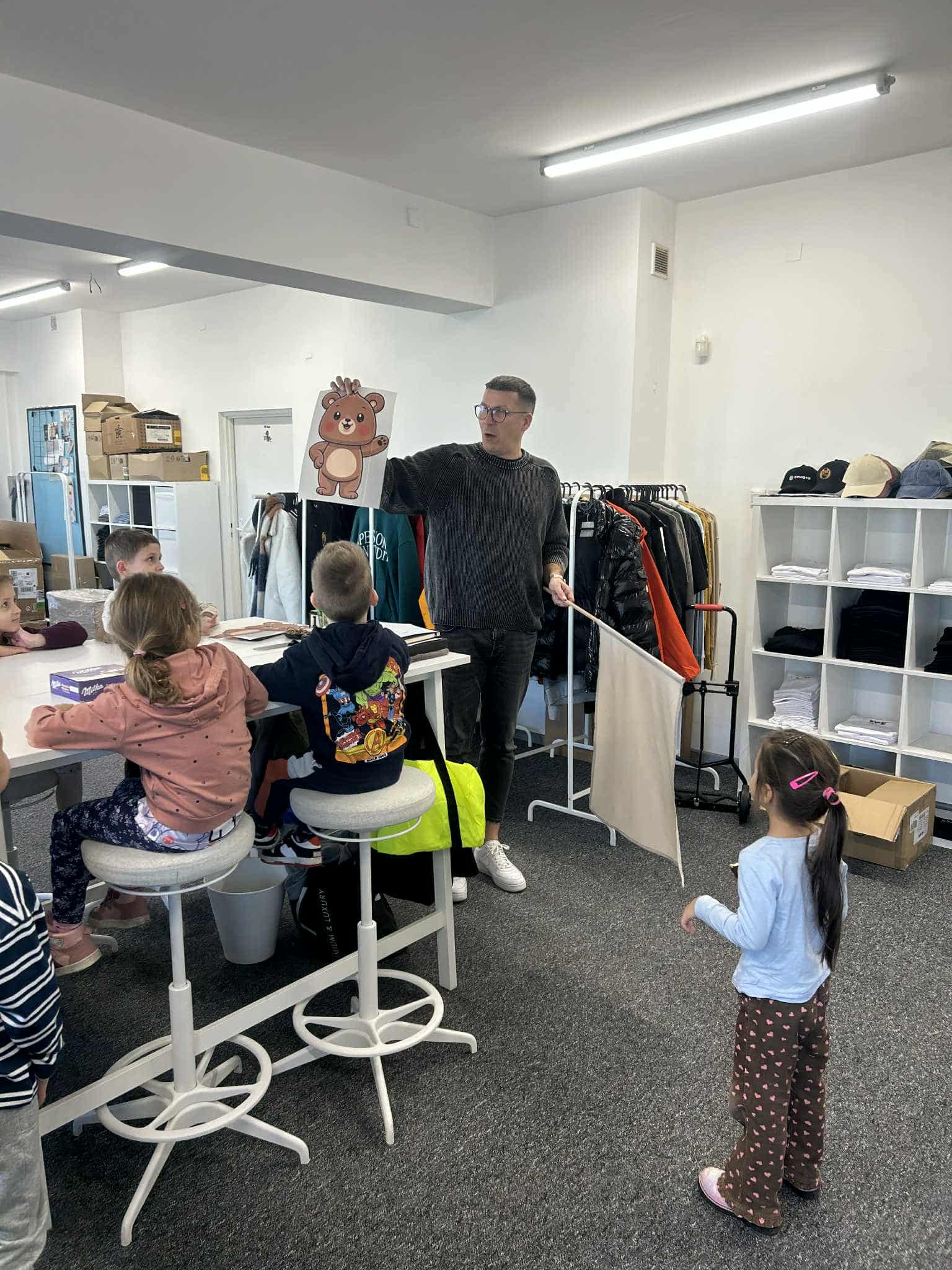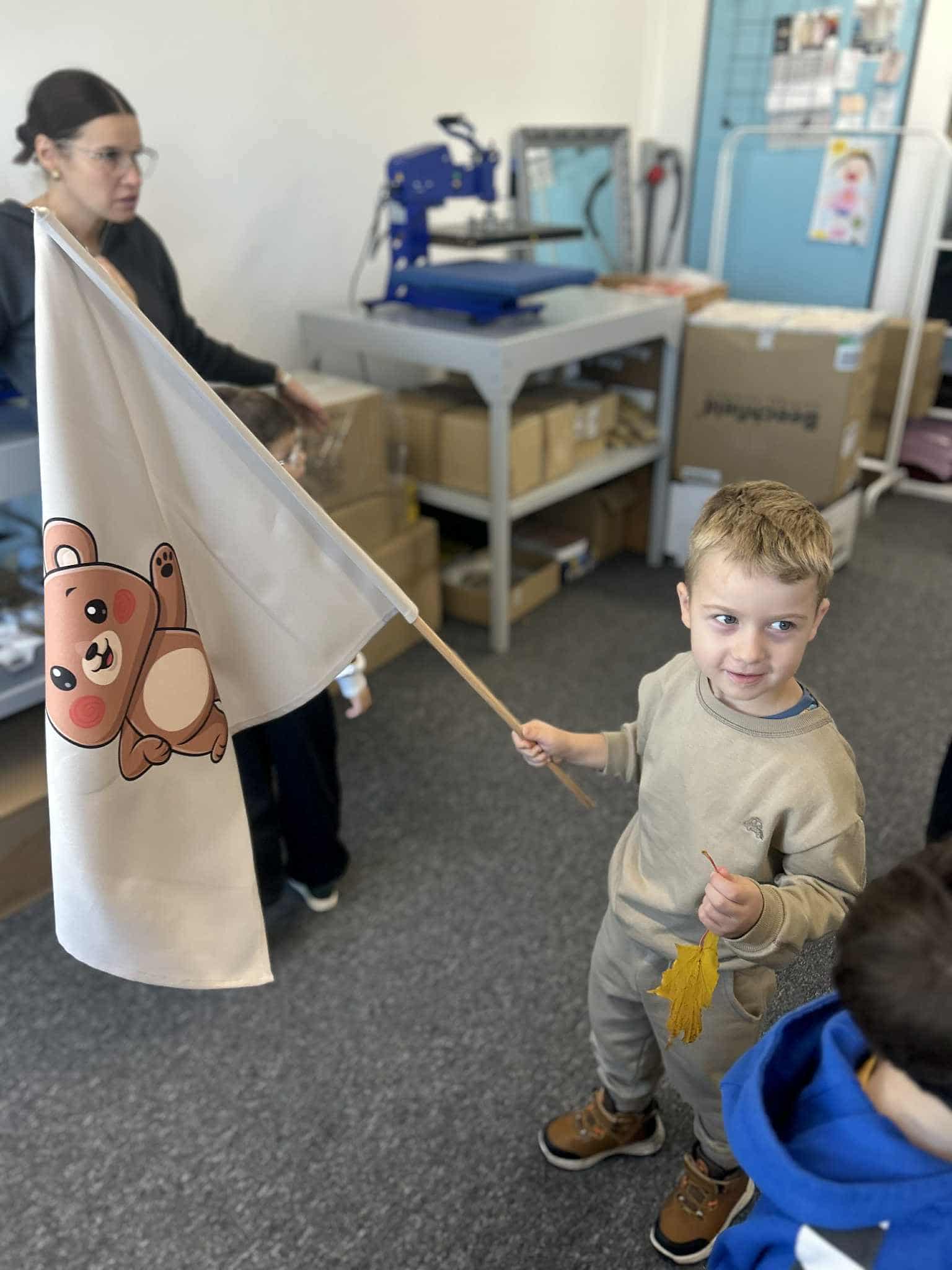 20 października dzieci z grupy Miśki wybrały się z wizytą do pracowni # Hope. Rodzinnej firmy Rodziców Benia, która zajmuje się projektowaniem grafiki na różnego rodzaju odzieży. Dzięki uprzejmości Państwa Podłoga przedszkolaki mogły z bliska podejrzeć, jak powstają wyjątkowe projekty oraz poznać tajniki pracy twórczej. Podczas wizyty Tata Beniamina we współpracy z dziećmi wykonał dwa transparenty z motywem Miśków. To była pełna kolorów, uśmiechu i kreatywnej zabawy przygoda. Dziękujemy Rodzicom Benia za gościnność