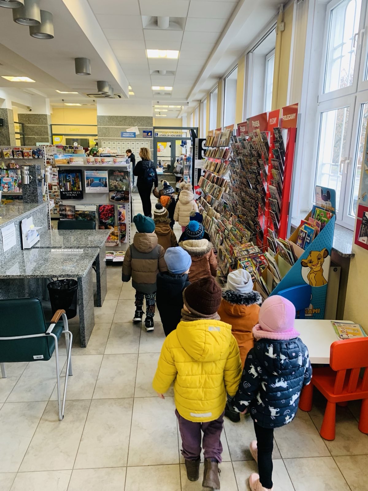 Grupa Wilczki w tym tygodniu rozmawiała o tym, jak działa poczta i na czym polega praca listonosza. Z tej okazji wybraliśmy się do pobliskiej placówki Poczty Polskiej, aby zobaczyć jak wygląda jej funkcjonowanie od środka. Dzieci miały okazję obejrzeć różne stanowiska, a także zobaczyć, jak nadawane są listy i paczki. Wizyta wzbudziła dużo ciekawości i była świetnym uzupełnieniem naszych zajęć.