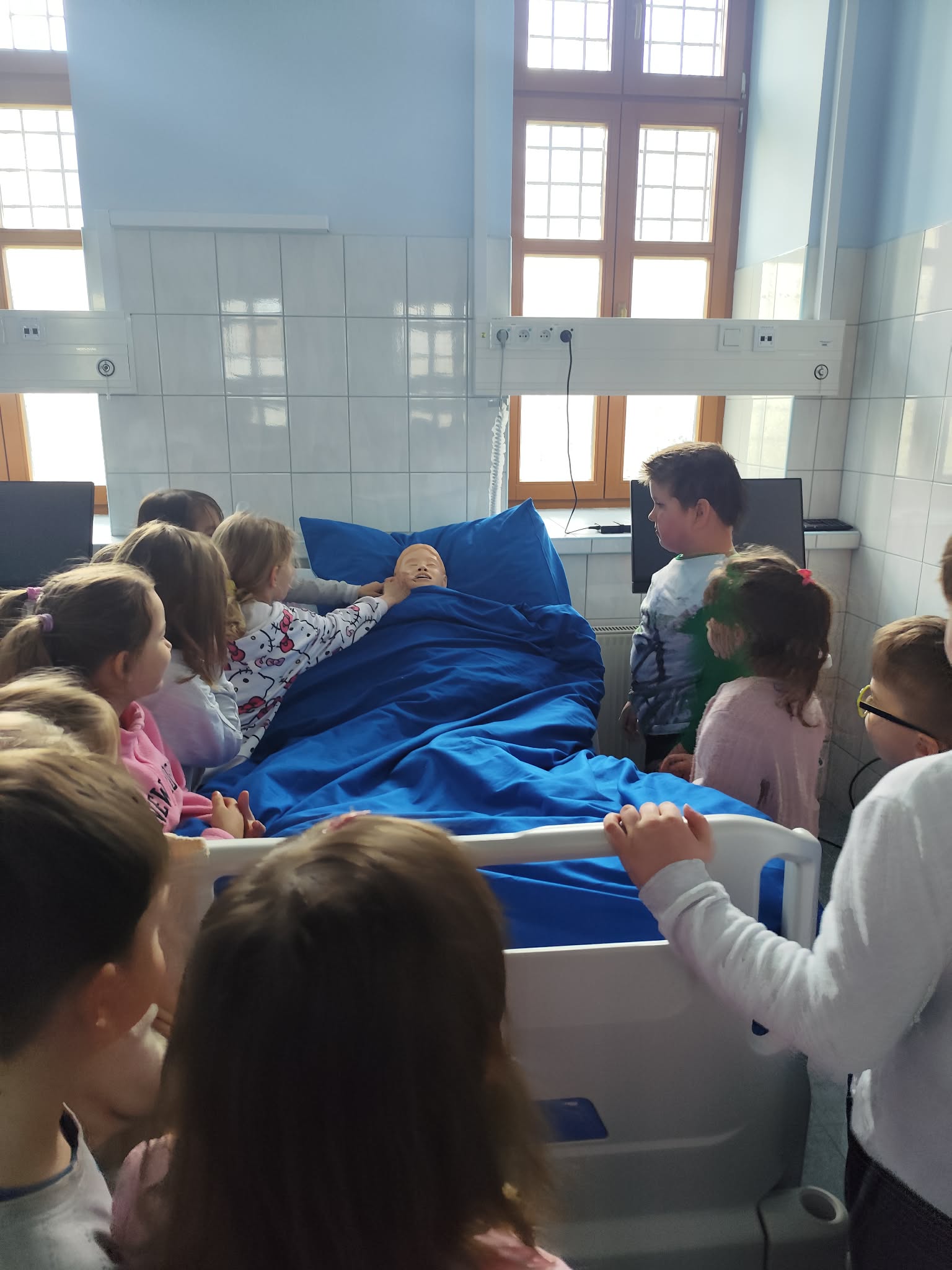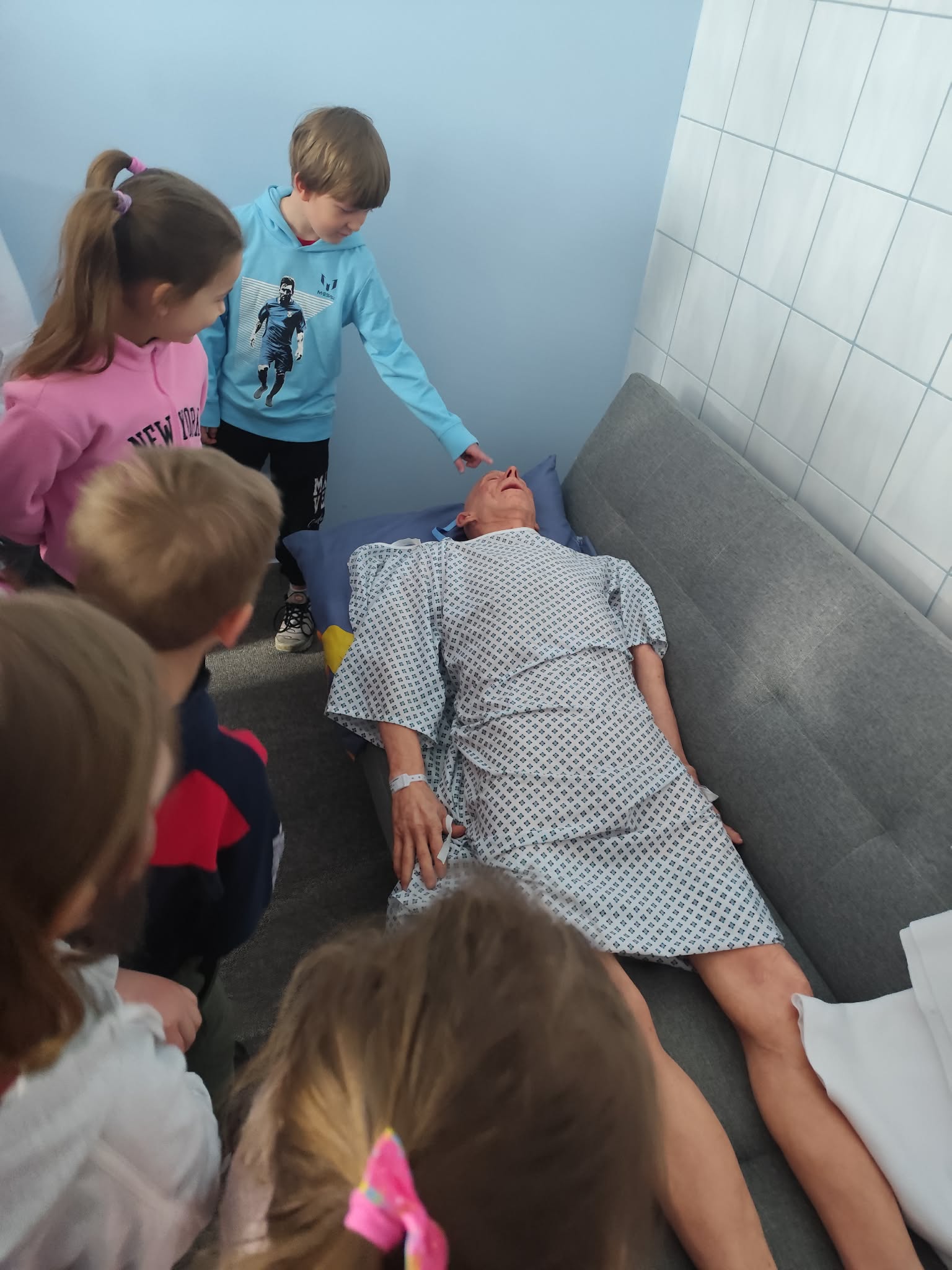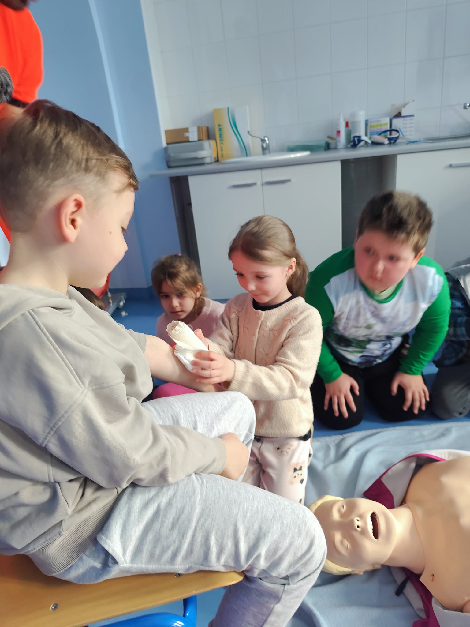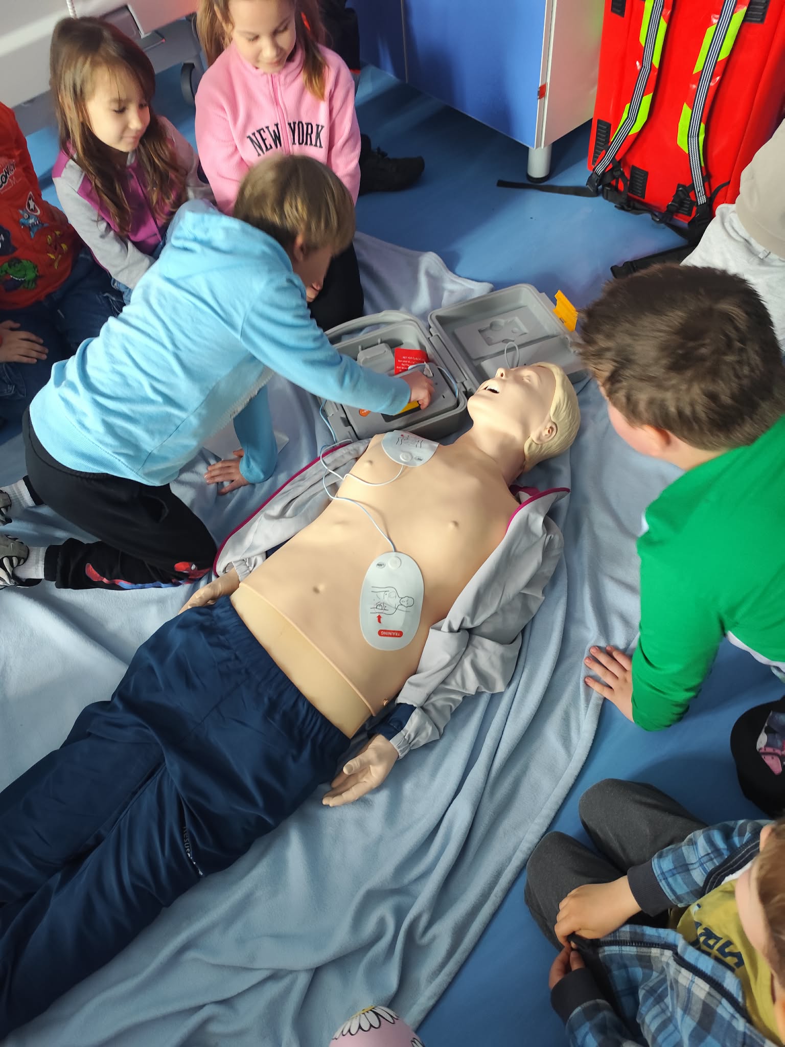 30 marca Biedronki wybrały się na wyjątkową wizytę na Wydziale Ratownictwa Medycznego Akademii Nauk Stosowanych. Podczas spotkania ratownik medyczny, Pan Marek, w ciekawy i przystępny sposób pokazał dzieciom, jak ważne jest pomaganie innym – i że wcale nie musi być trudne. Przedszkolaki dowiedziały się, jak prawidłowo wezwać pomoc, poznały podstawy udzielania pierwszej pomocy oraz miały okazję zobaczyć i spróbować obsługi sprzętu medycznego. Najwięcej radości sprawiła jednak możliwość wejścia do prawdziwego ambulansu, co było dla wszystkich ogromnym przeżyciem. Dzięki tej wizycie Biedronki już wiedzą, że ratownik medyczny to prawdziwy bohater, który zawsze jest gotowy nieść pomoc innym. Serdecznie dziękujemy za niezwykle wartościowe i inspirujące spotkanie – być może ta wiedza kiedyś pomoże uratować komuś życie.
