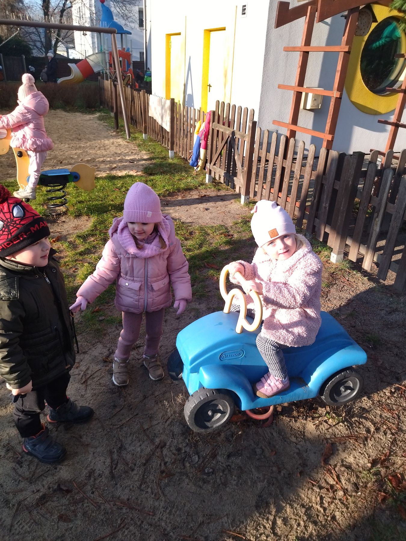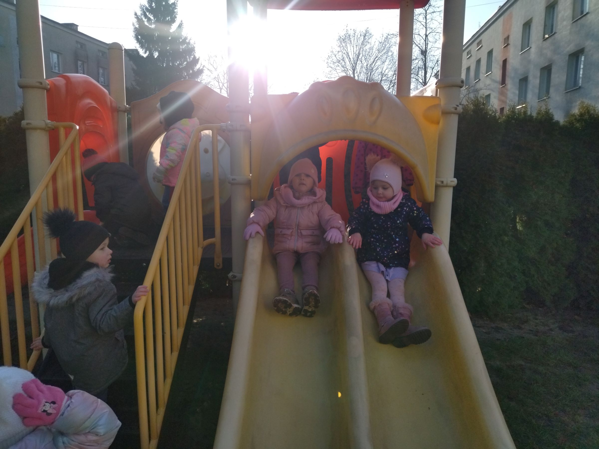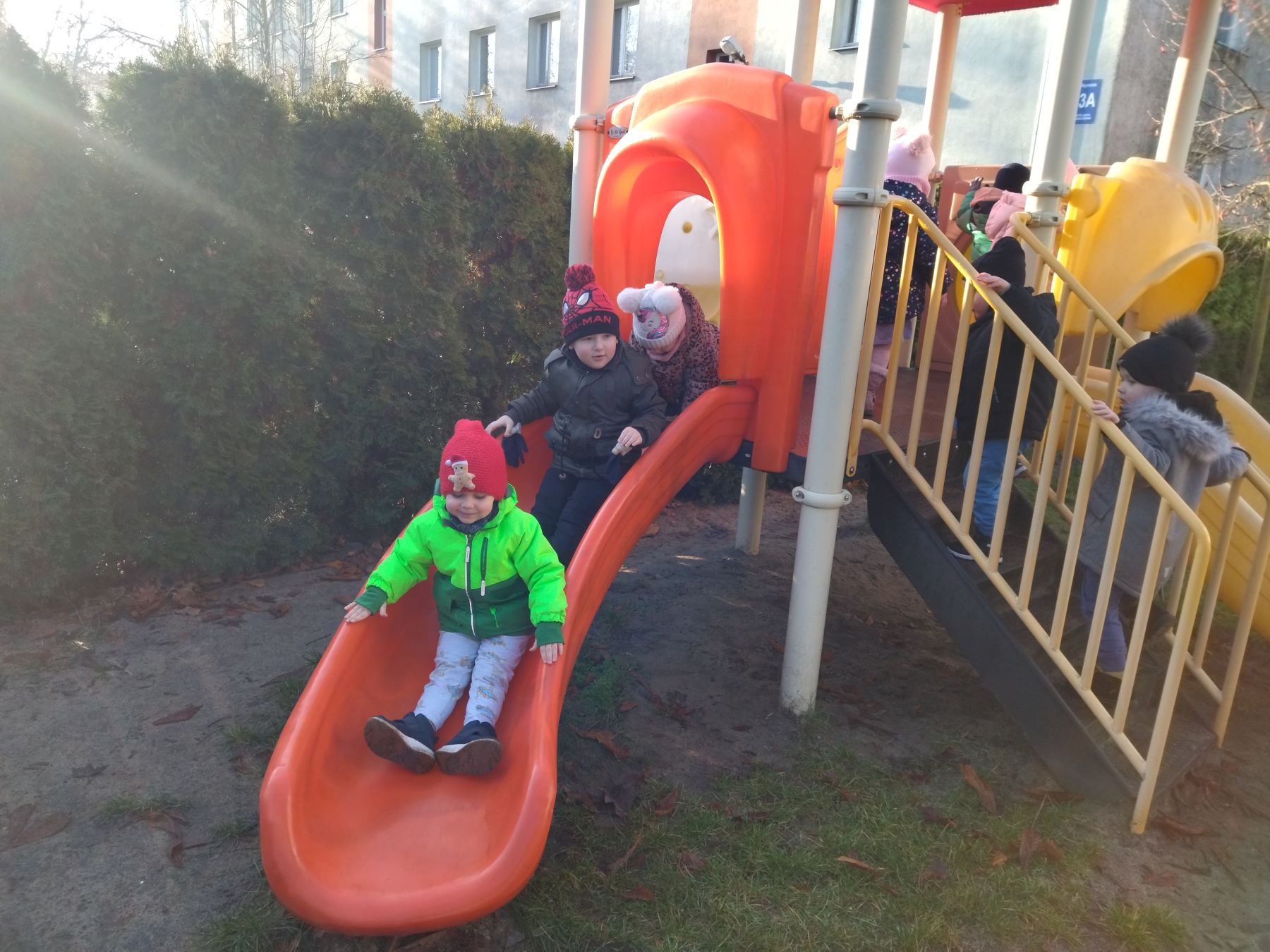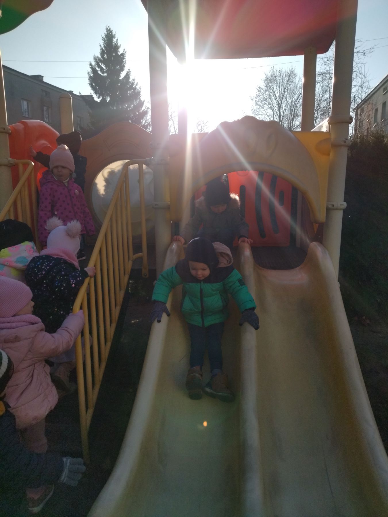 Myszki, korzystając ze słonecznej pogody, wybrały się na plac zabaw, a także na spacer do parku, gdzie z radością obejrzały kolorowy świąteczny pociąg Mikołaja.