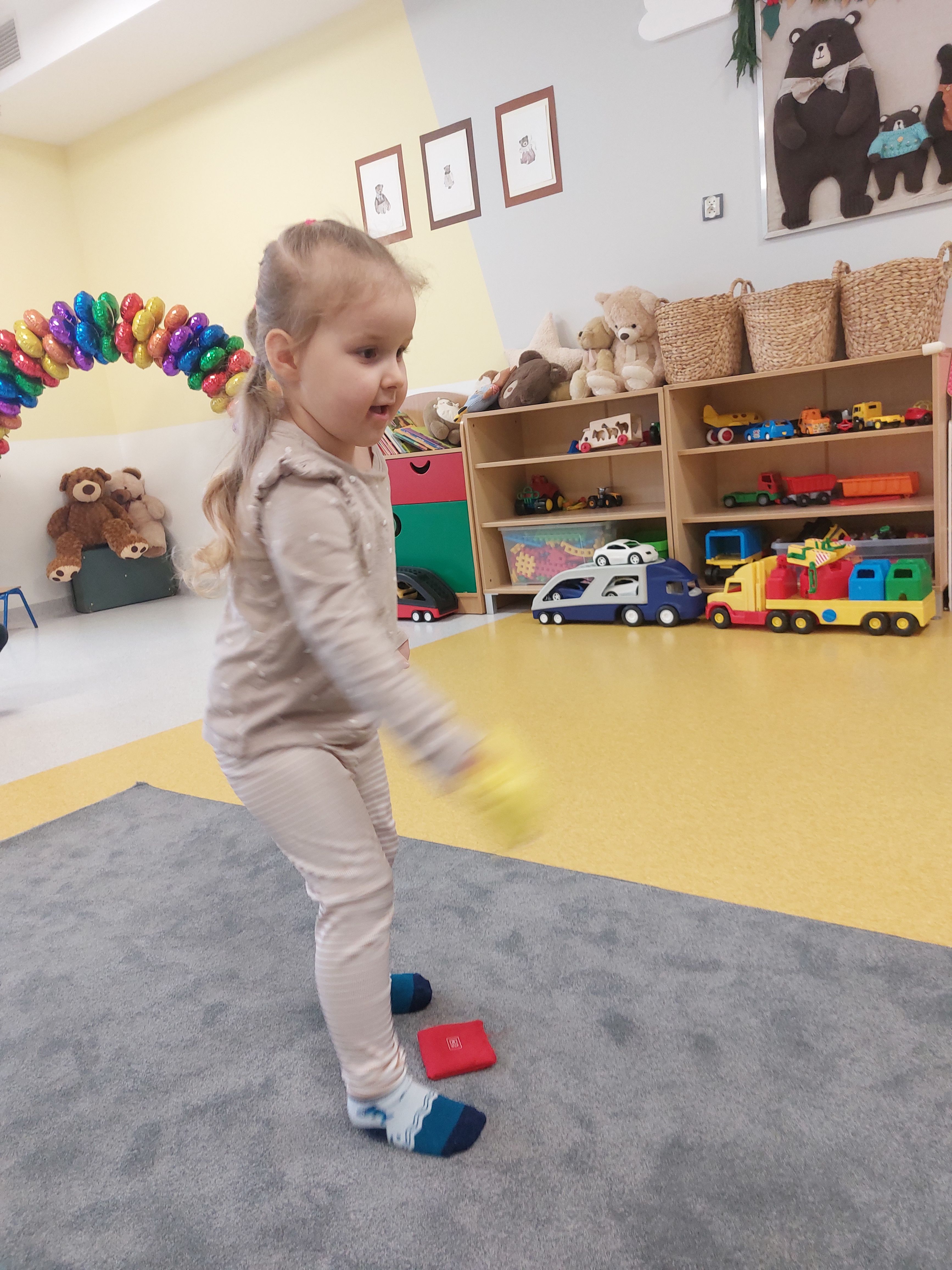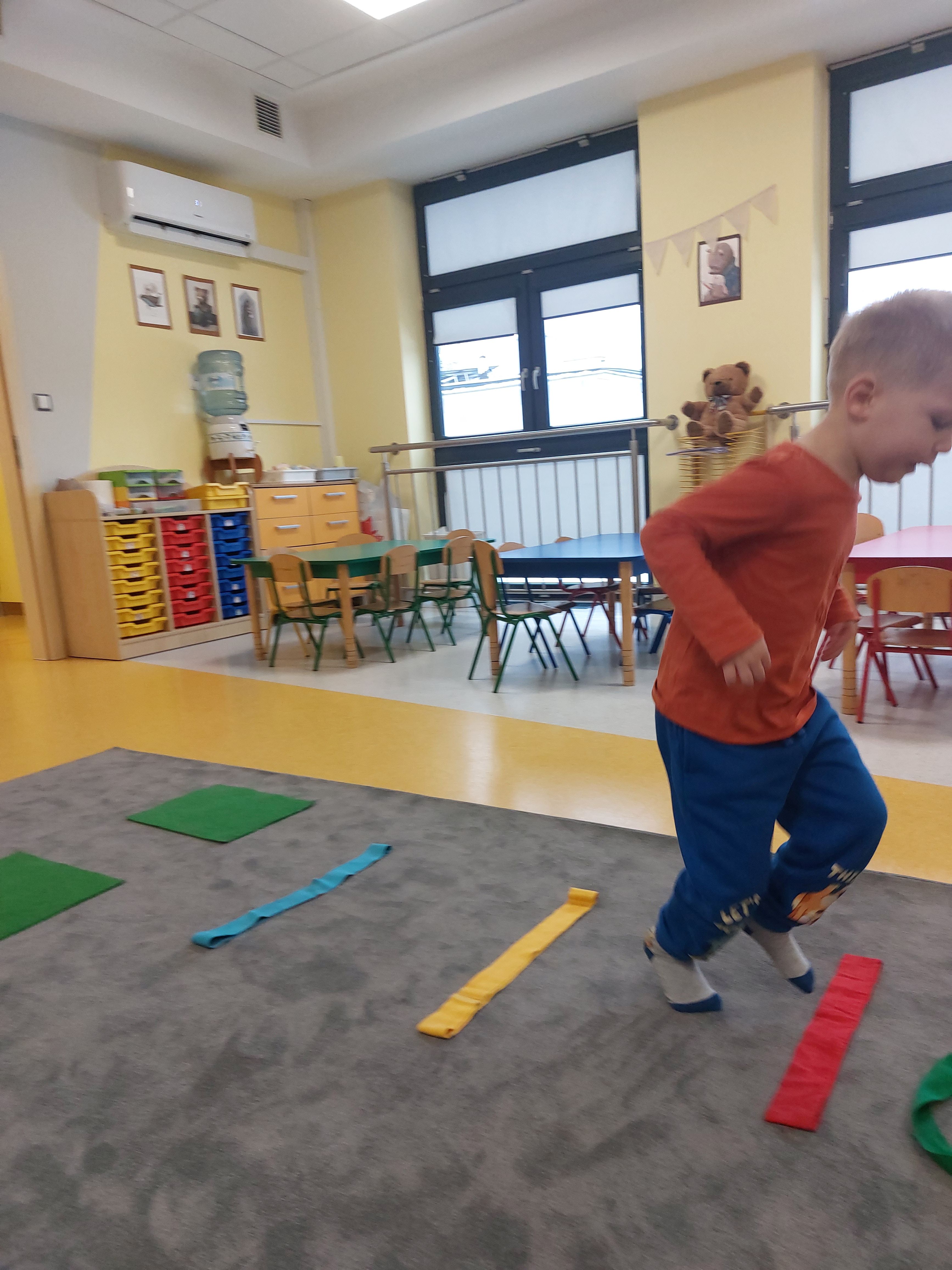 Na dworze mróz i śnieg, a nasze Niedźwiadki wiedzą, że ruch to zdrowie. Postanowiliśmy więc stworzyć wspólny tor przeszkód i poprzez zabawy ruchowe dostarczyć sobie mnóstwo energii i pozytywnych emocji. Wszyscy ćwiczyli szybkość, zwinność oraz uczyli się zasad fair play.